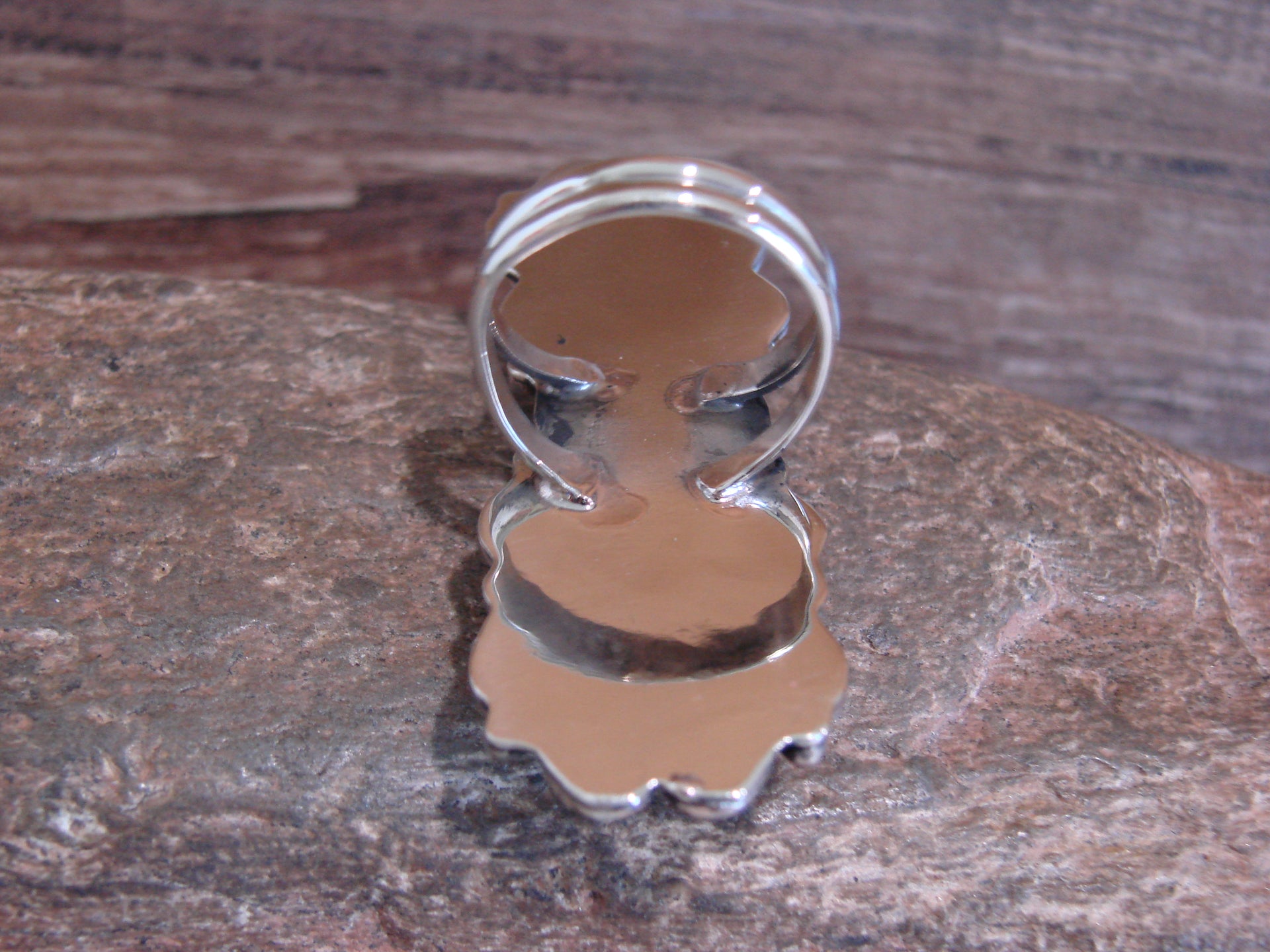 Native American Nickel Silver & Turquoise Ring by Cleveland - Size 10.5