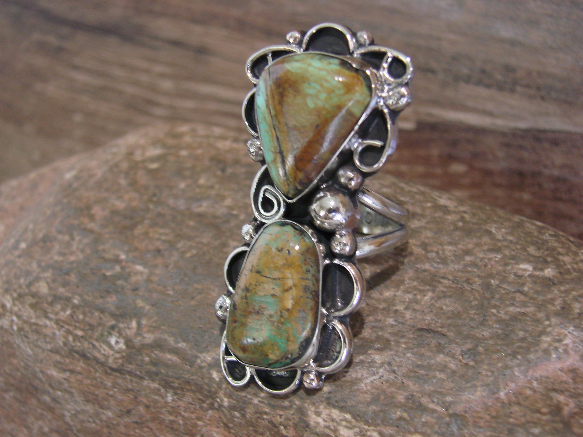 Native American Nickel Silver & Turquoise Ring by Cleveland - Size 9