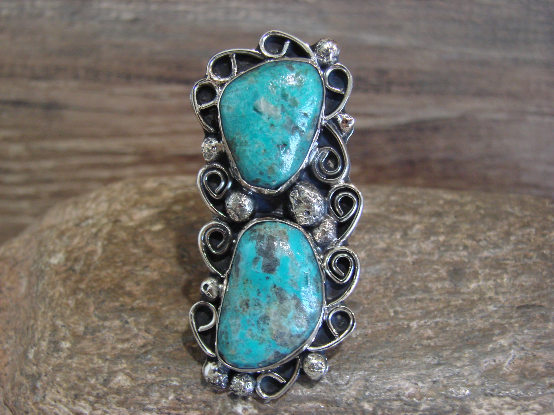 Native American Nickel Silver & Turquoise Ring by Cleveland - Size 9