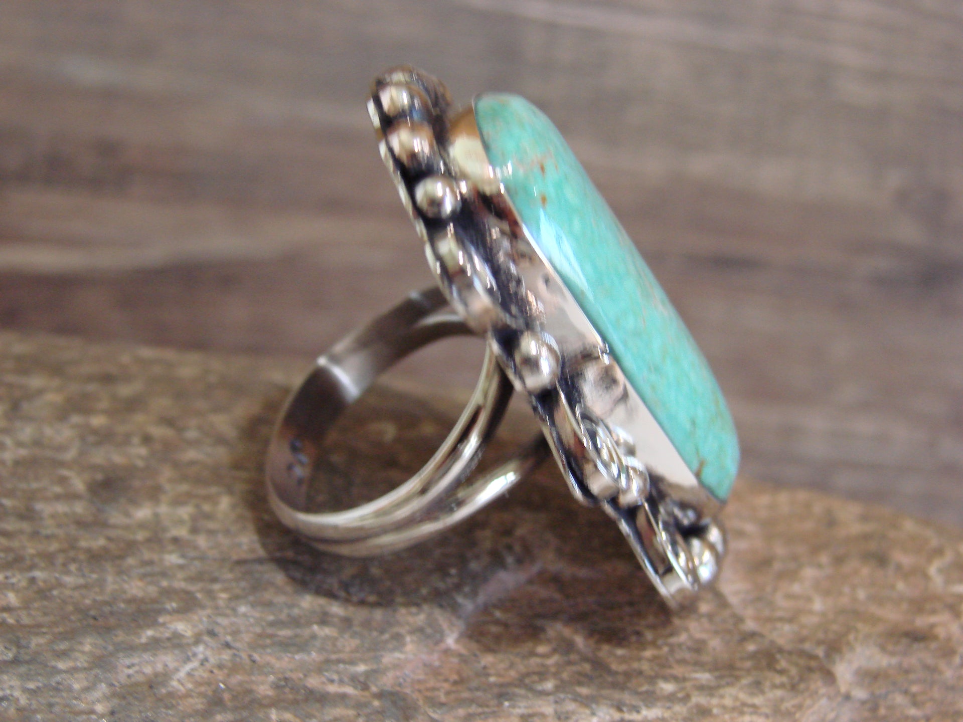Native American Nickel Silver & Turquoise Ring by Cleveland - Size 9.5