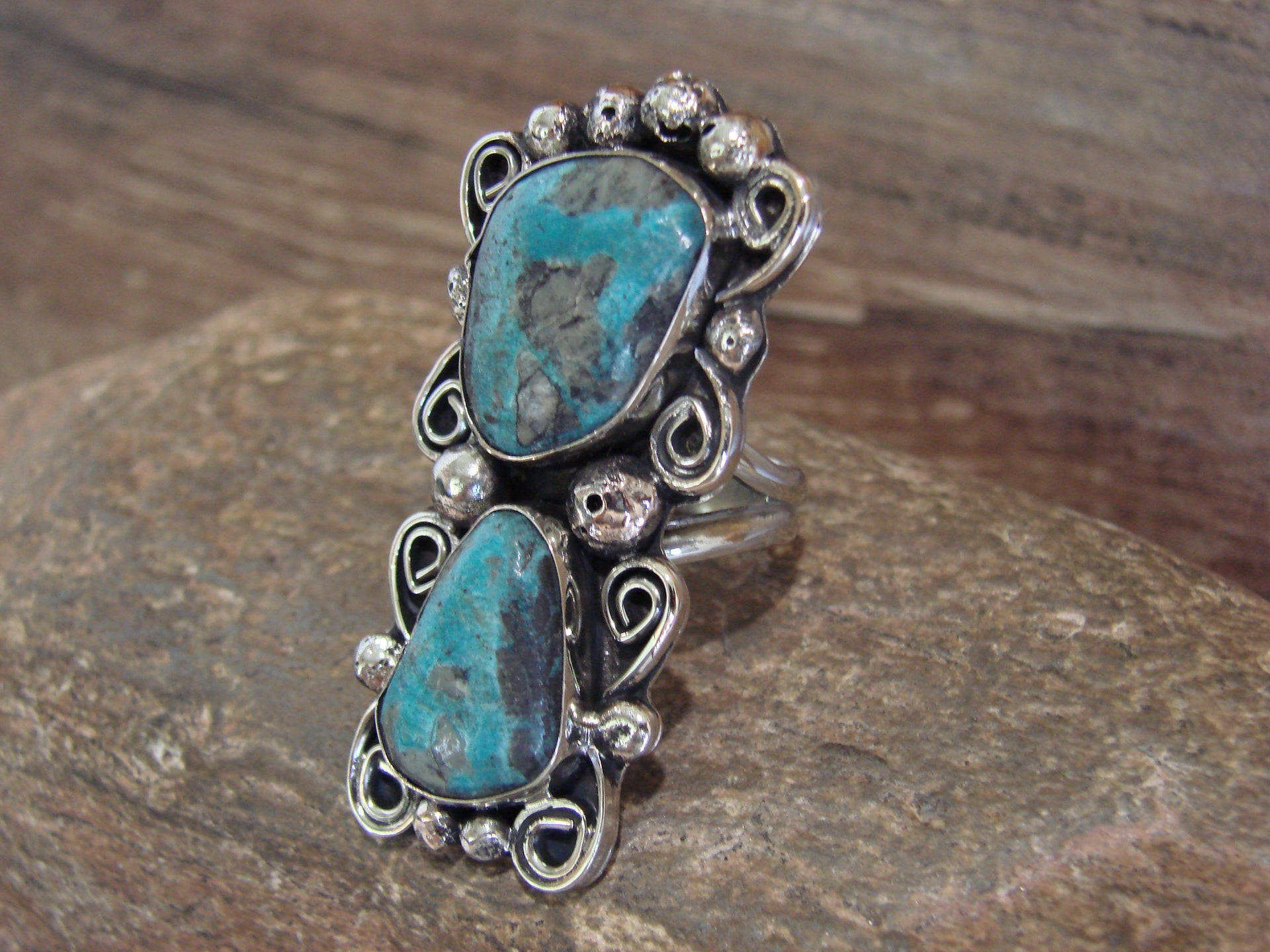 Native American Nickel Silver & Turquoise Ring by Cleveland - Size 9.5