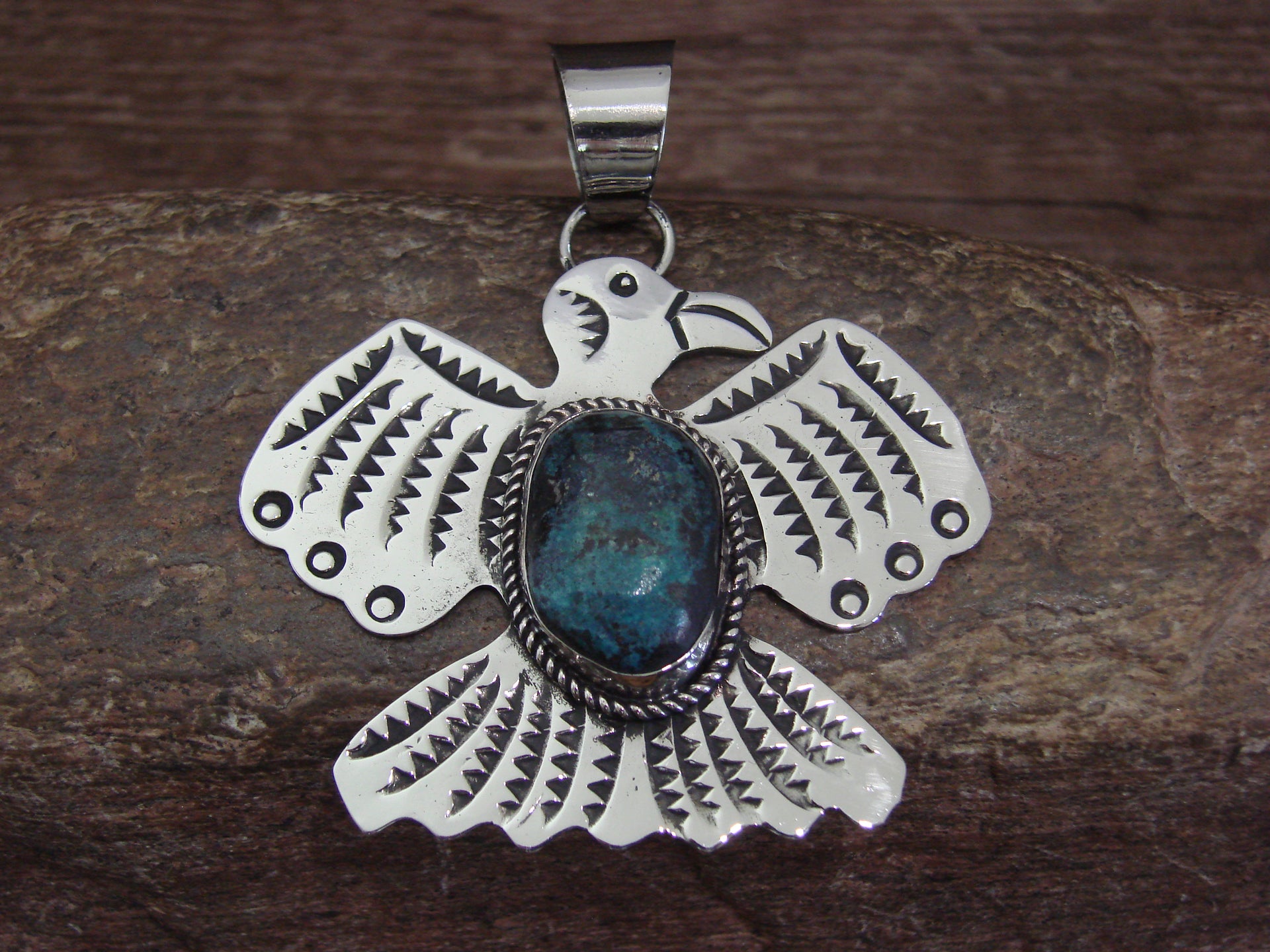 Native American Nickel Silver & Turquoise Thunderbird Pendant - Cleveland