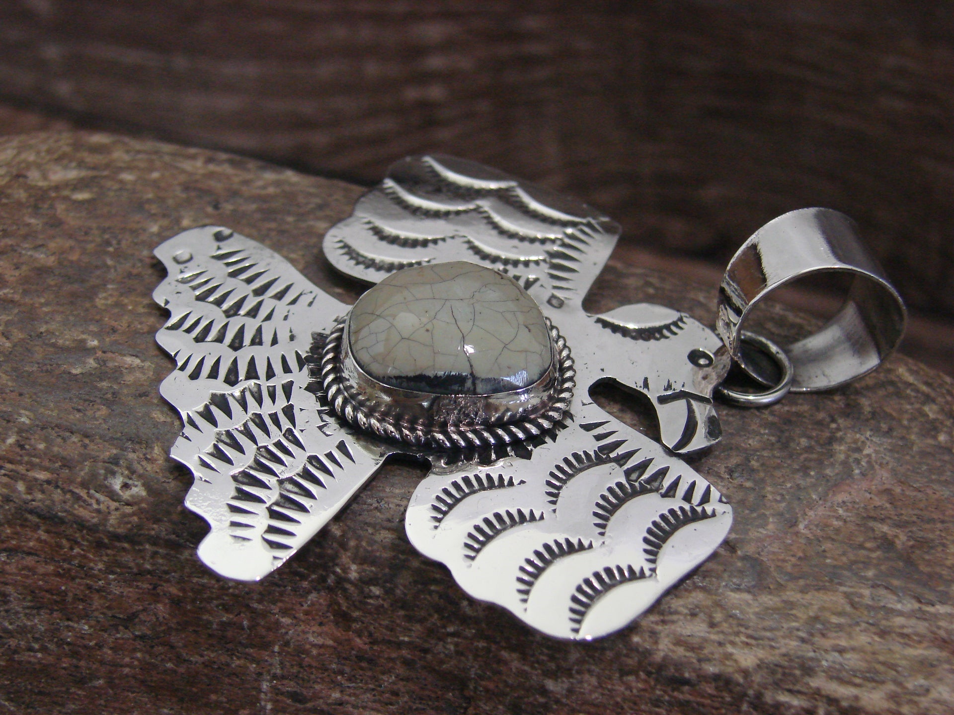Native American Nickel Silver & Turquoise Thunderbird Pendant - Cleveland