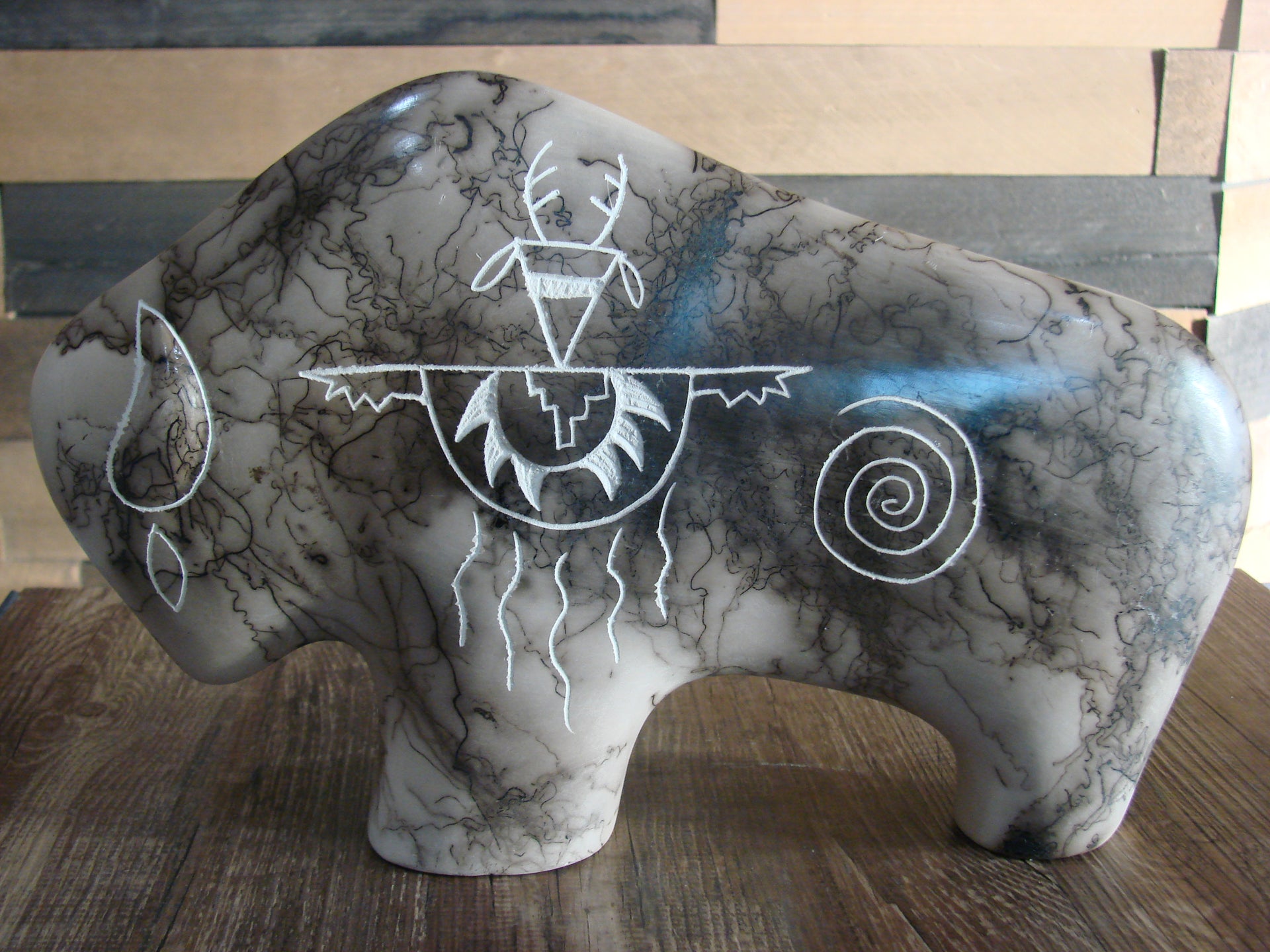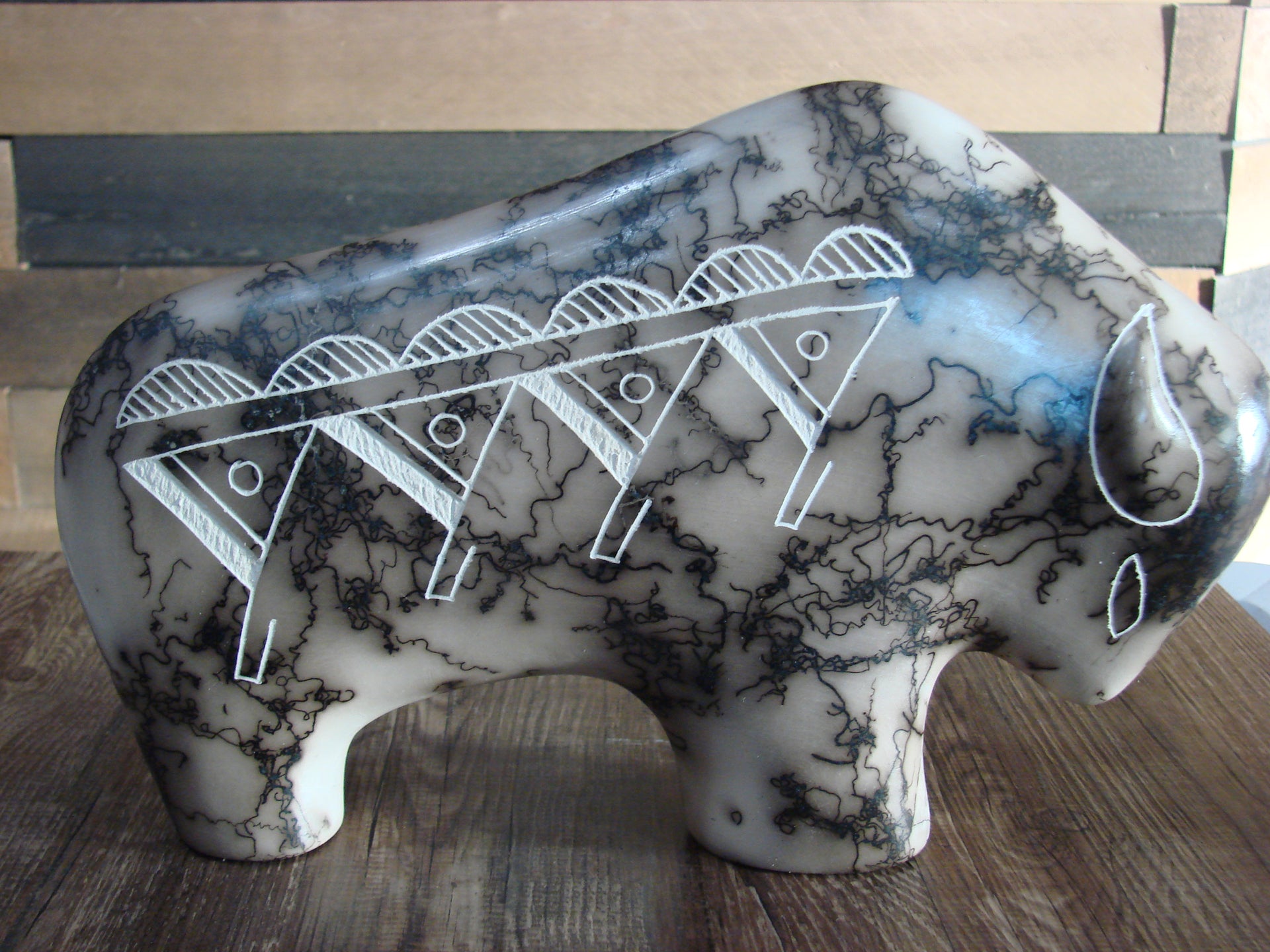 Native American Pottery Horse Hair Buffalo Sculpture by Yellow Corn