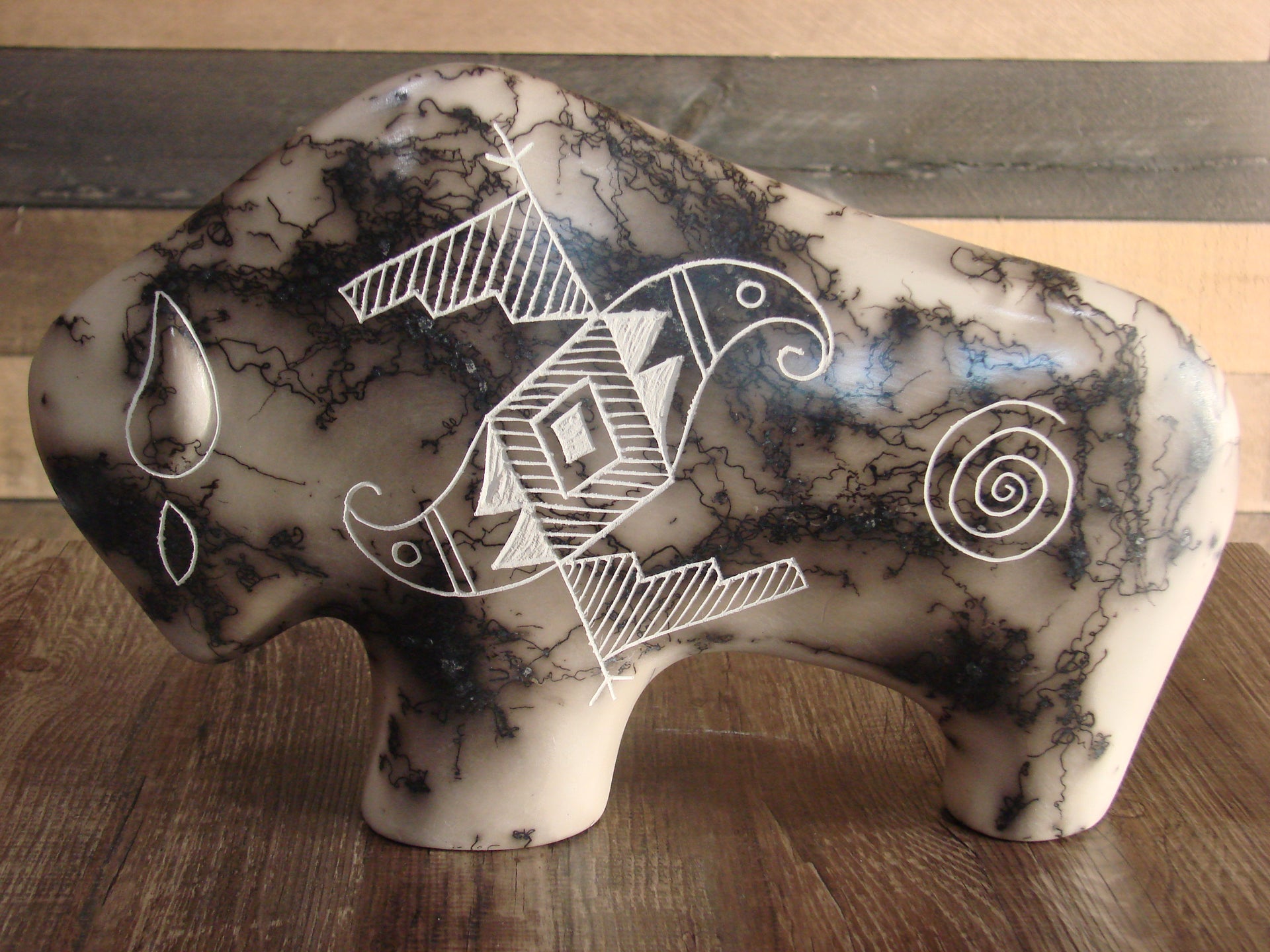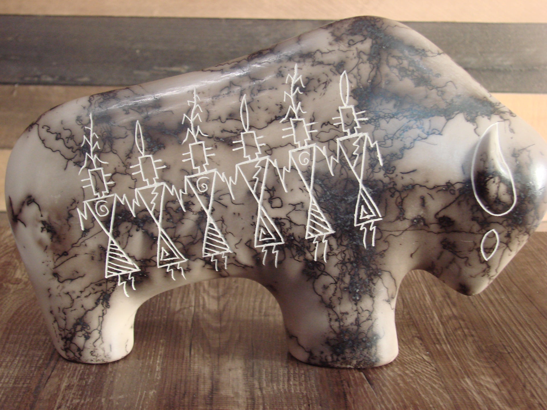 Native American Pottery Horse Hair Buffalo Sculpture by Yellow Corn