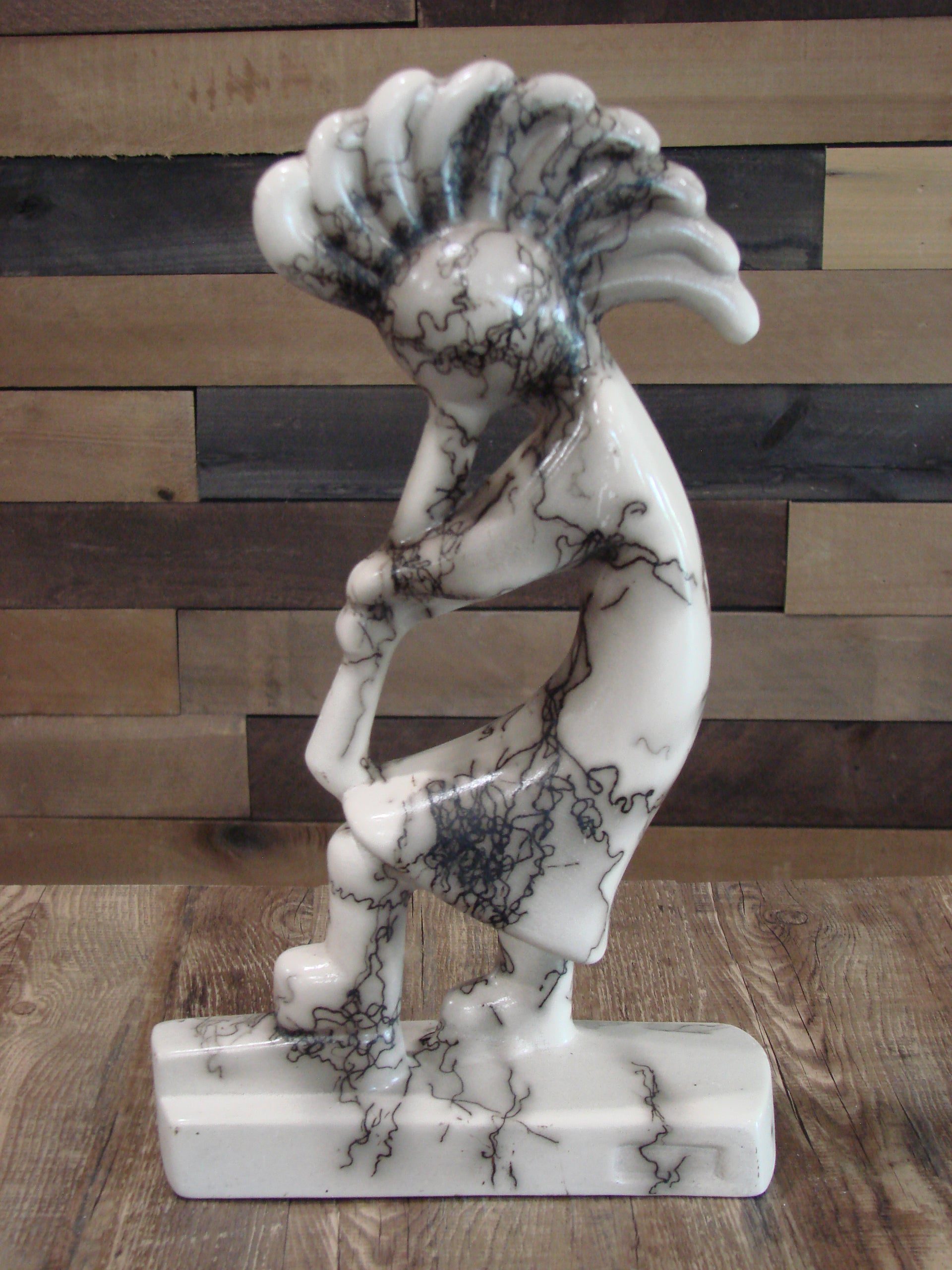 Native American Pottery Horse Hair Kokopelli Sculpture by Vail