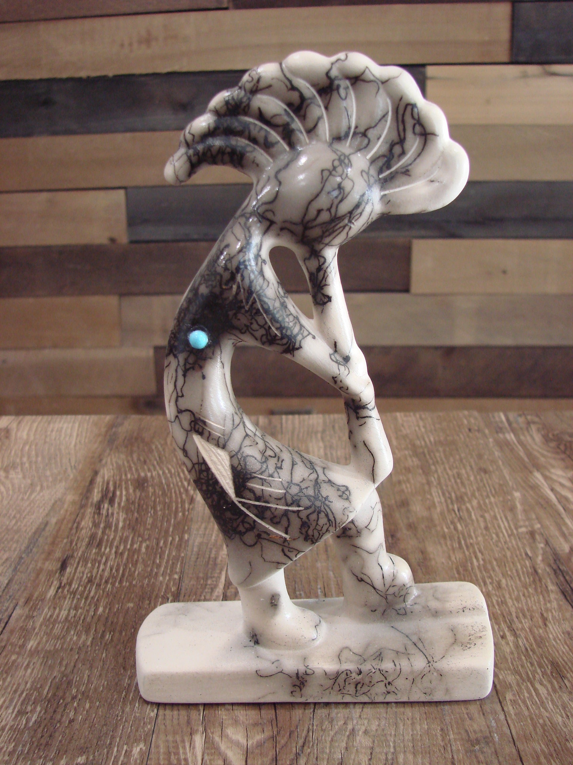 Genuine Native American Navajo Indian Horse Hair Kokopelli Sculpture from Western New Mexico. This Kokopelli sculpture features beautiful horse hair and hand etching throughout. The Horse hair is laid over this piece during firing, the result is a beautiful one of a kind look! Hand etched by Navajo artist Vail. Signed on the bottom. Free shipping included!