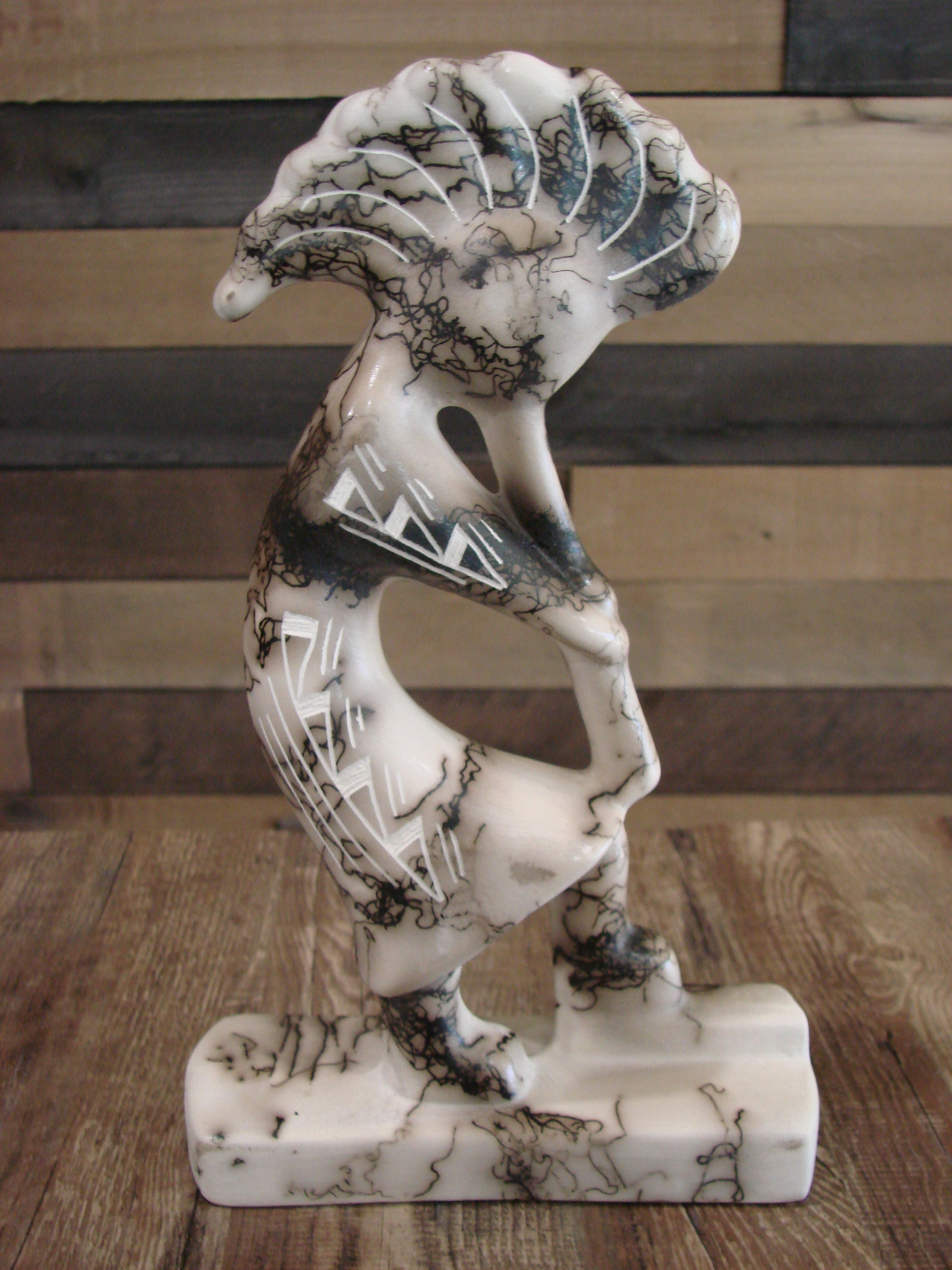 Native American Pottery Horse Hair Kokopelli Sculpture by Vail