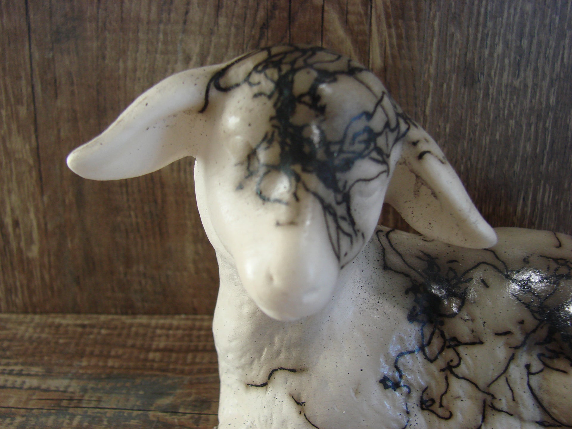 Native American Pottery Horse Hair Lamb Sculpture by Vail