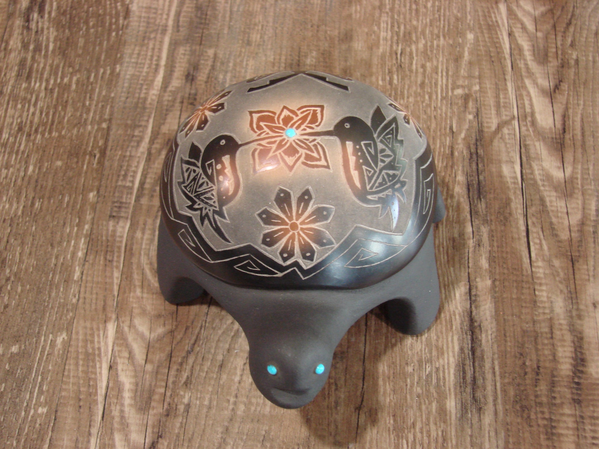 Native American Santa Clara Hand Made Clay Turtle Pottery by Melony