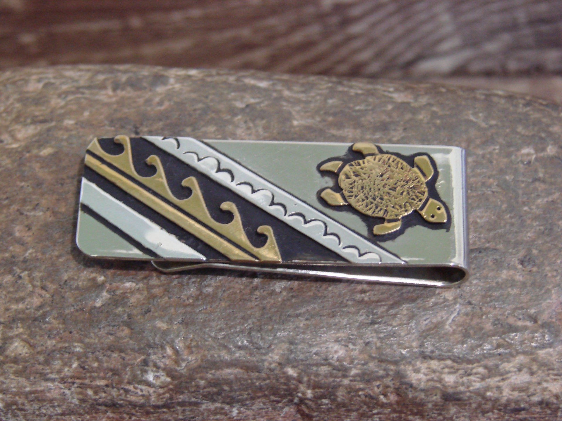 Native American Sterling Silver & 12 kt Turtle Gold Fill Money Clip by Singer