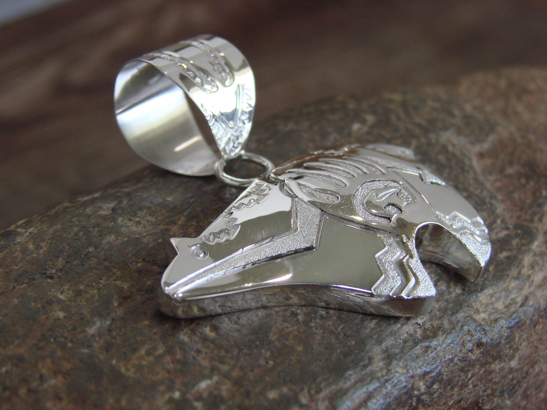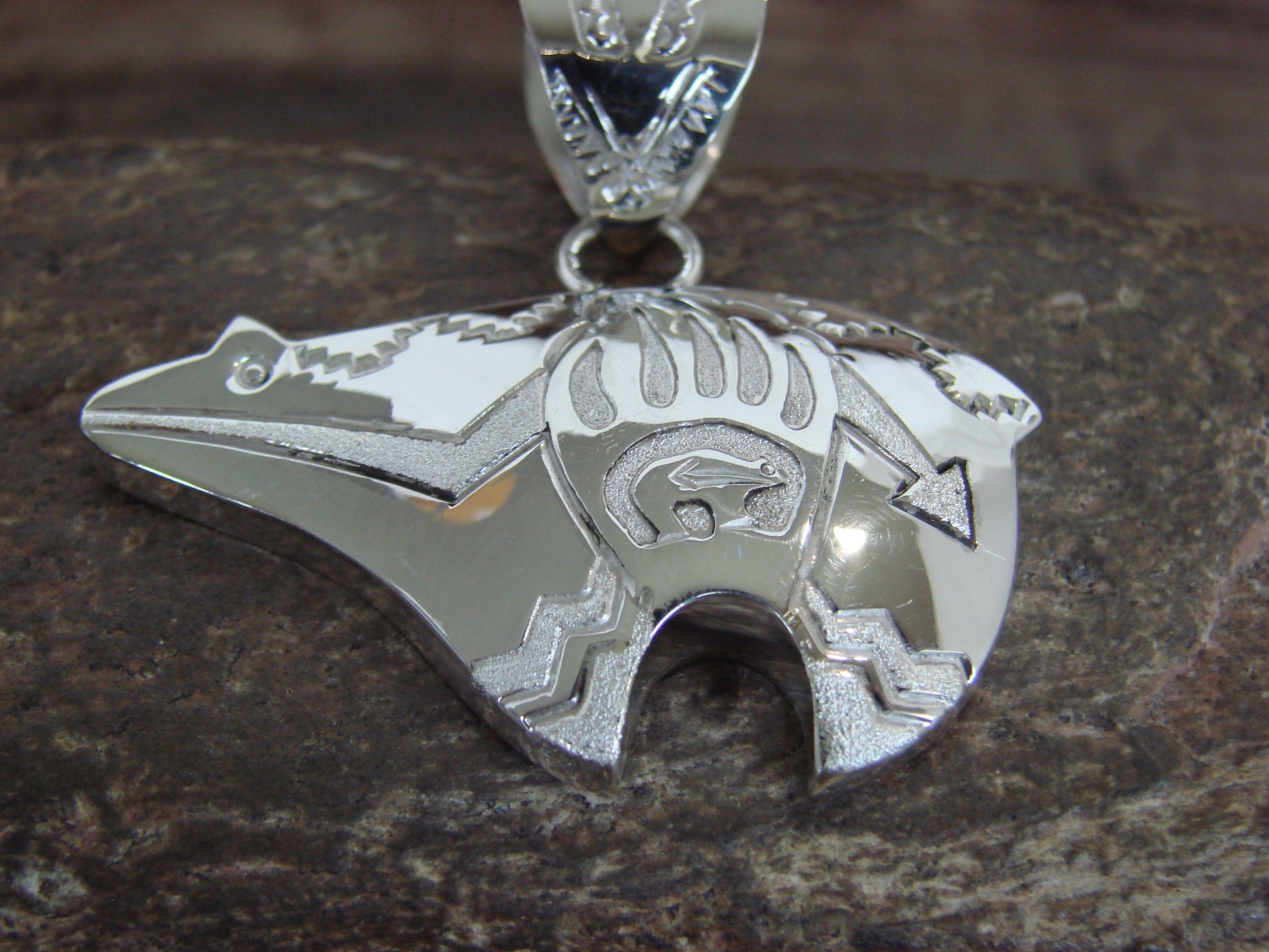 Native American Sterling Silver Heart Line Bear Pendant by Mariano