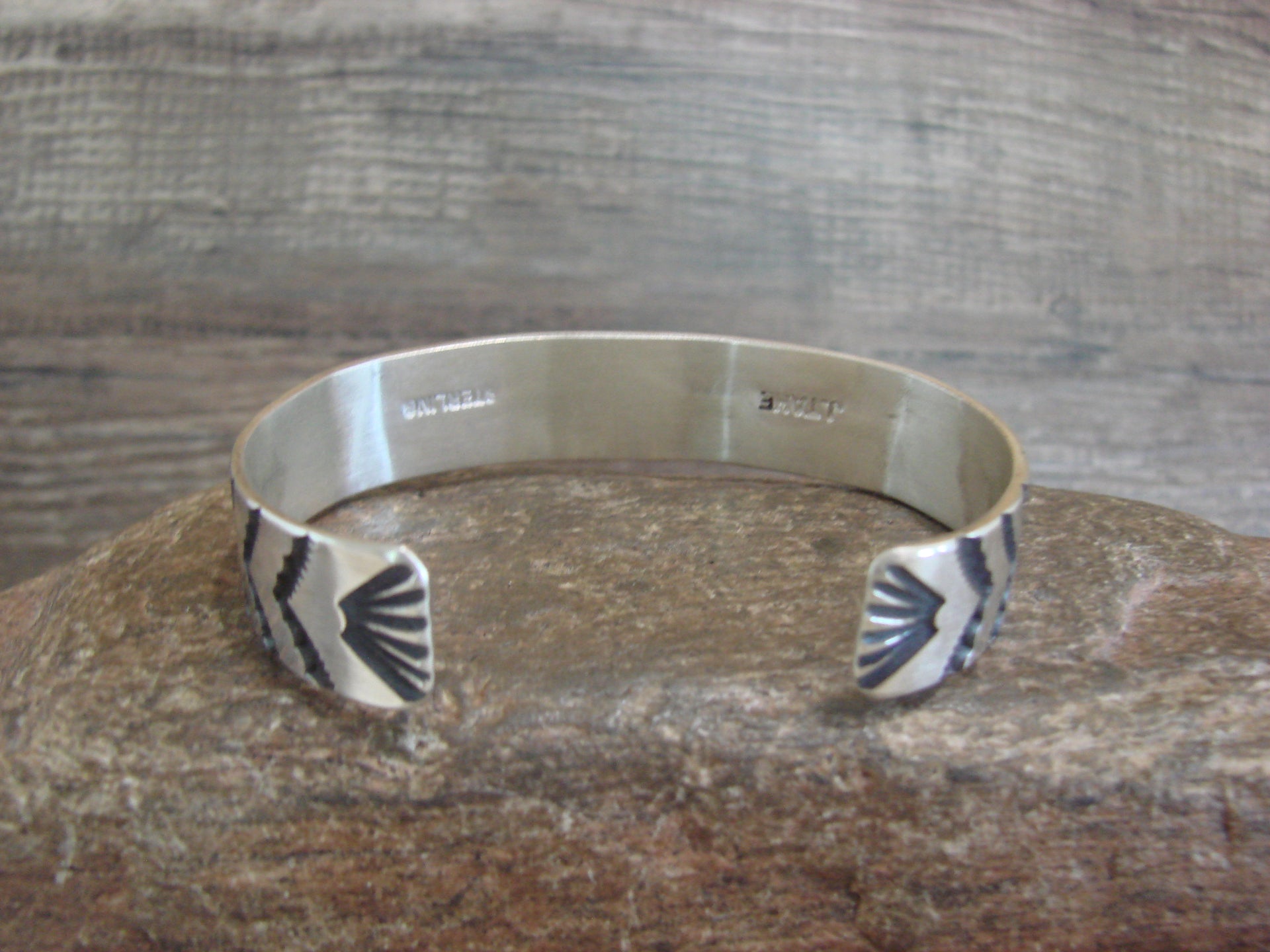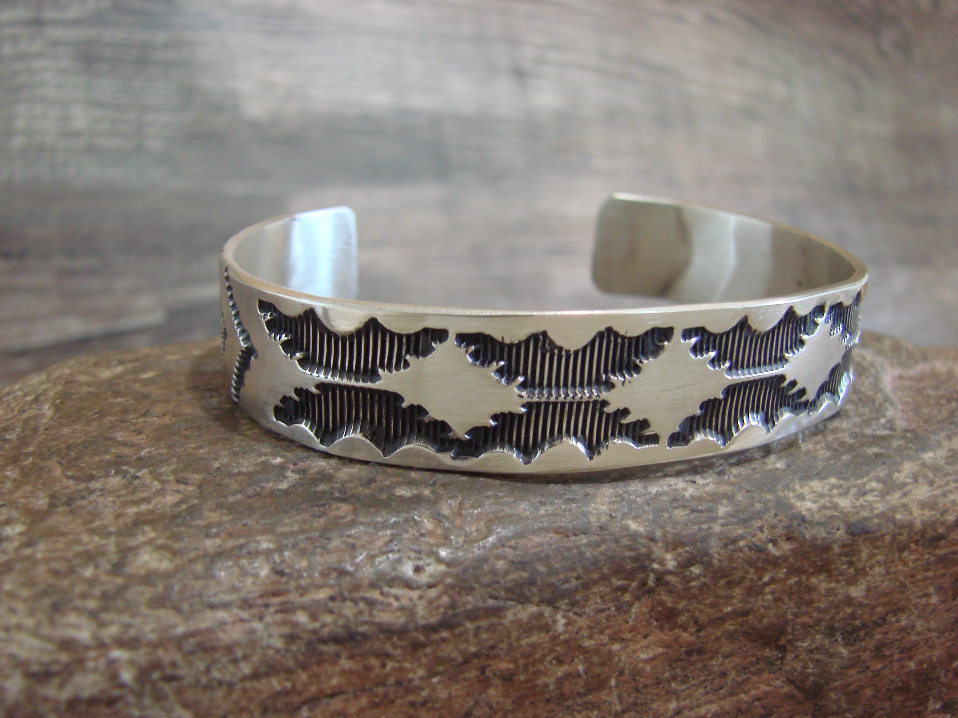 Genuine Native American Navajo Indian Sterling Silver Bracelet from Western New Mexico. This Sterling Silver bracelet features Stunning Hand Stamping throughout. With a nice polish, this bracelet has a great look! Navajo Indian handmade by Jerrold Tahe. Signed "J. Tahe" and Stamped "Sterling" on the inner cuff. Free gift box and shipping included!