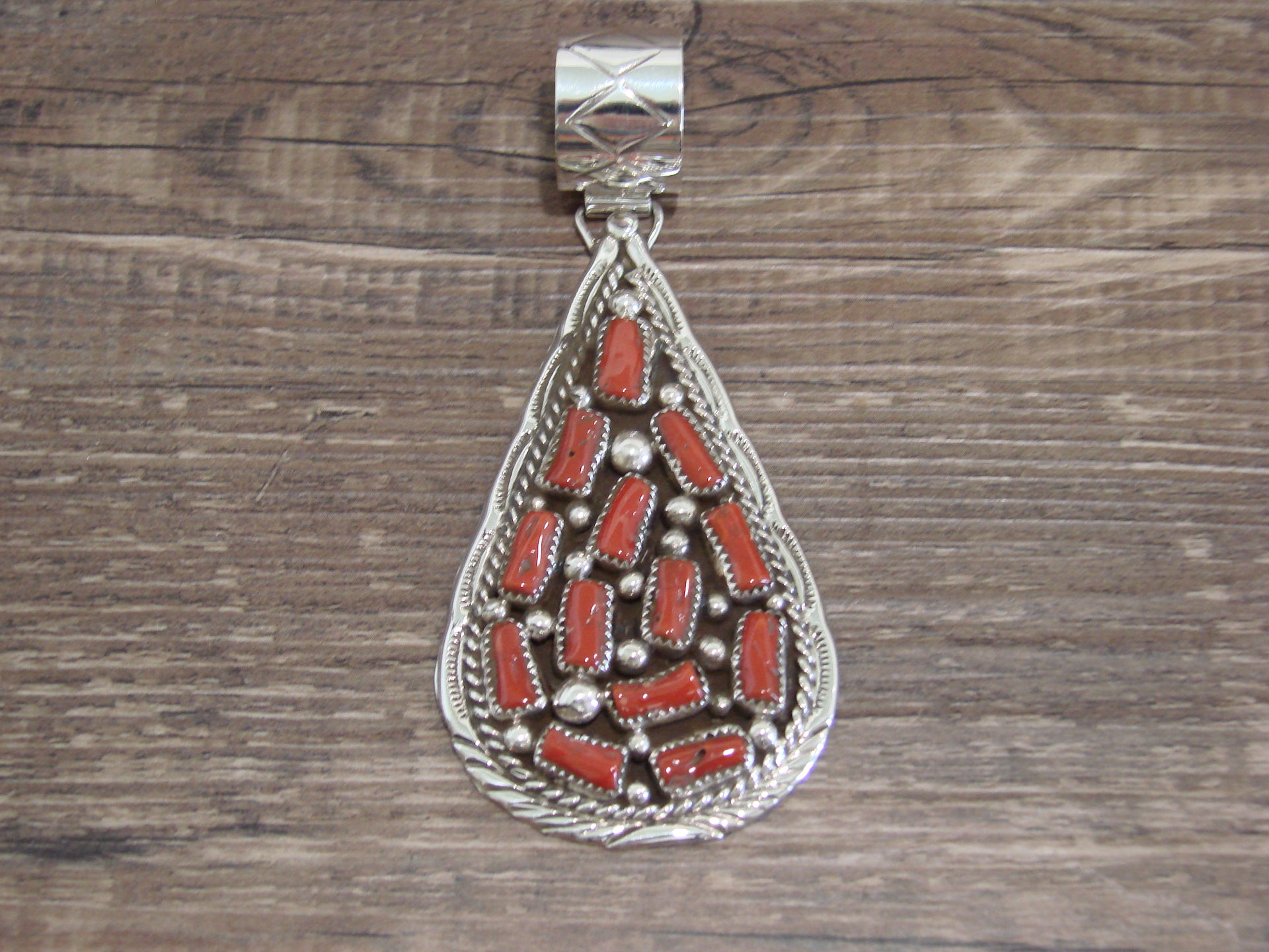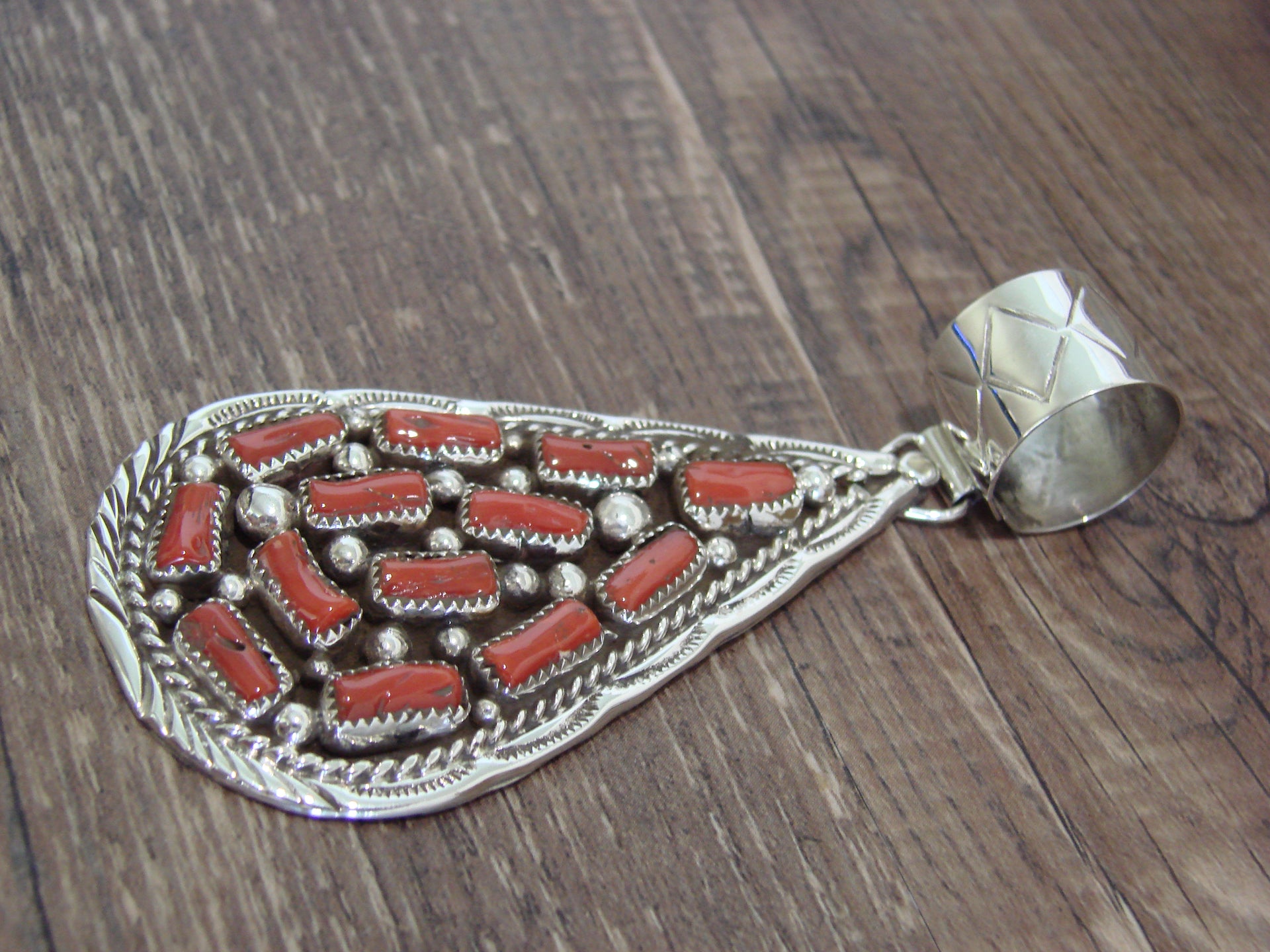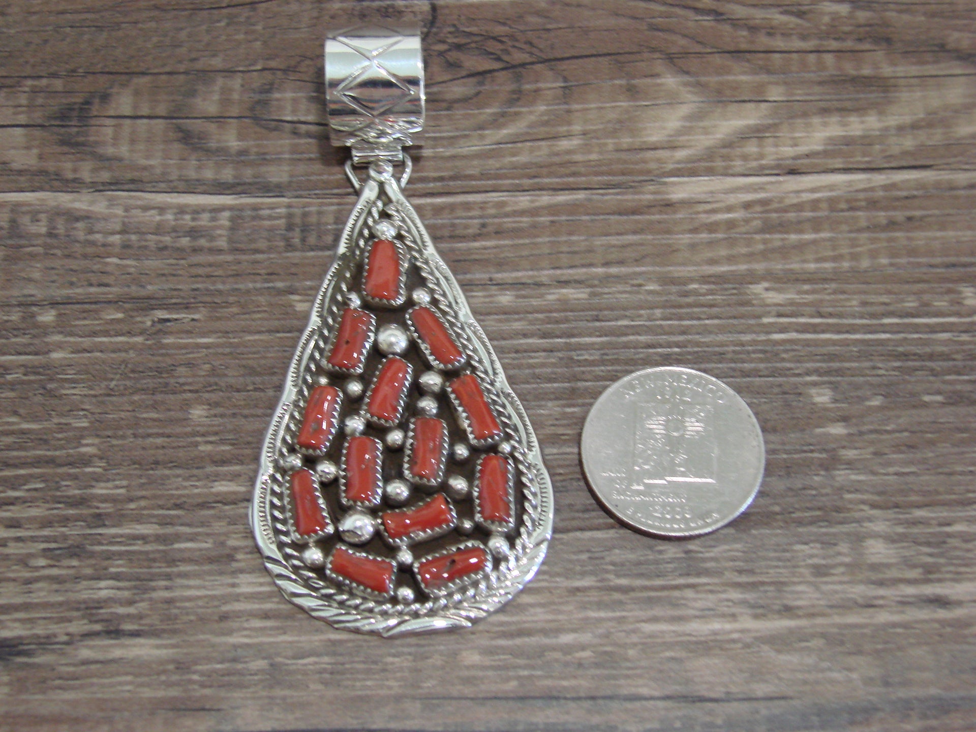 Native American Sterling Silver & Coral Cluster Pendant Signed Begay