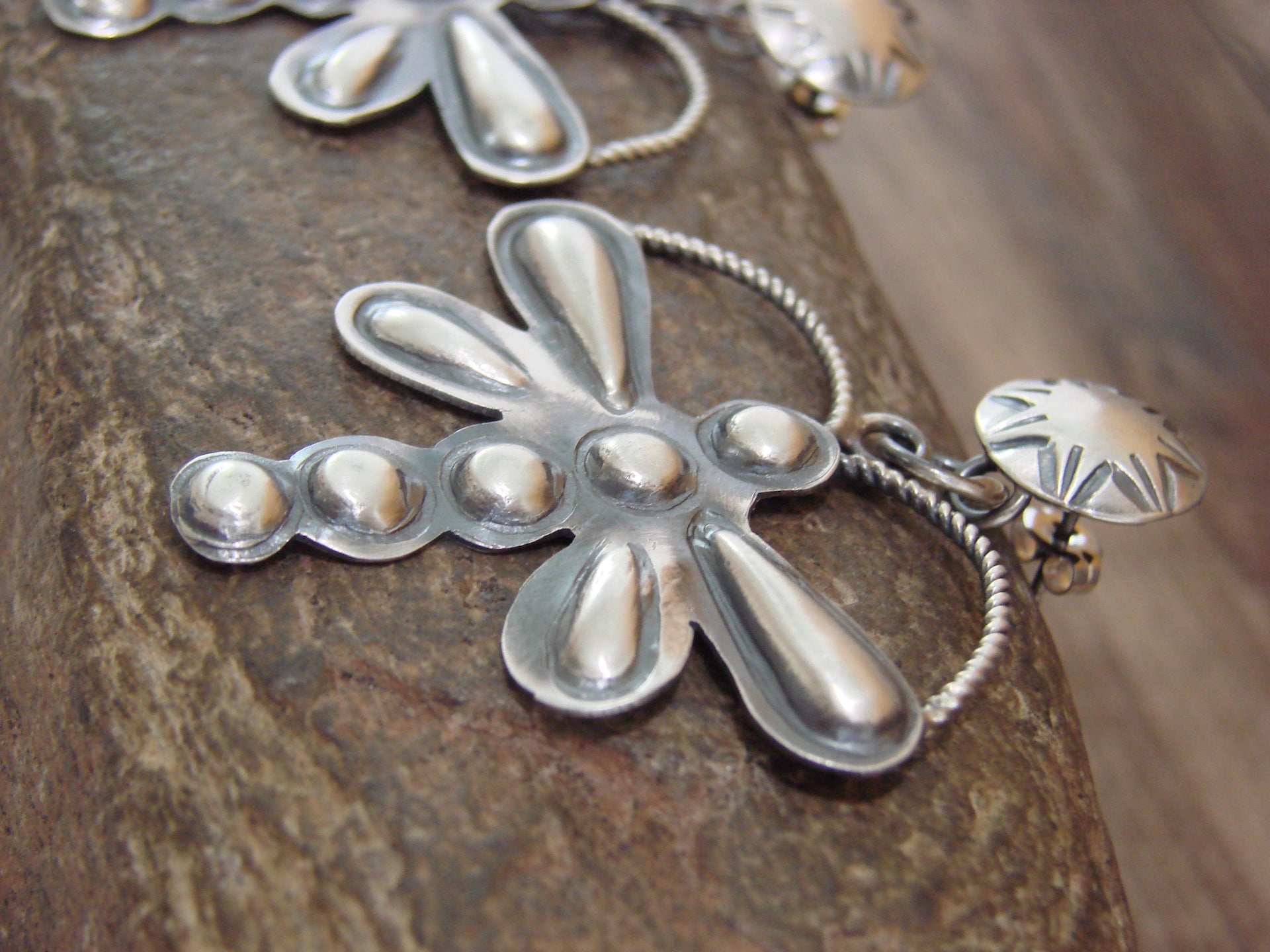 Native American  Sterling Silver Dragonfly Post Dangle Earrings by Yazzie