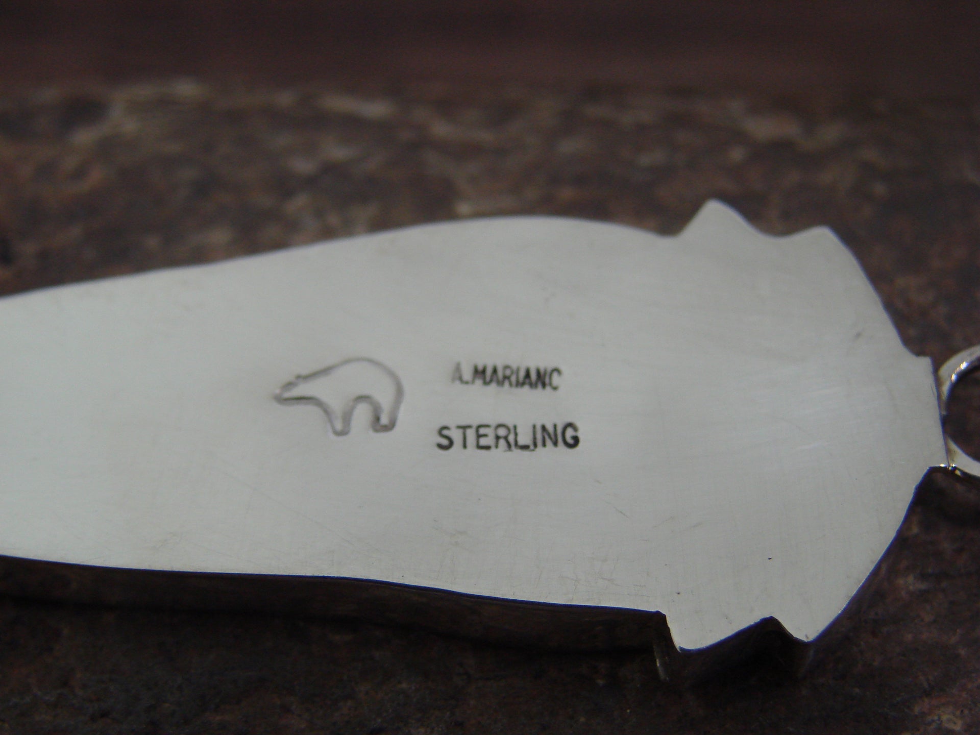Native American Sterling Silver Feather & Bear Pendant Mariano
