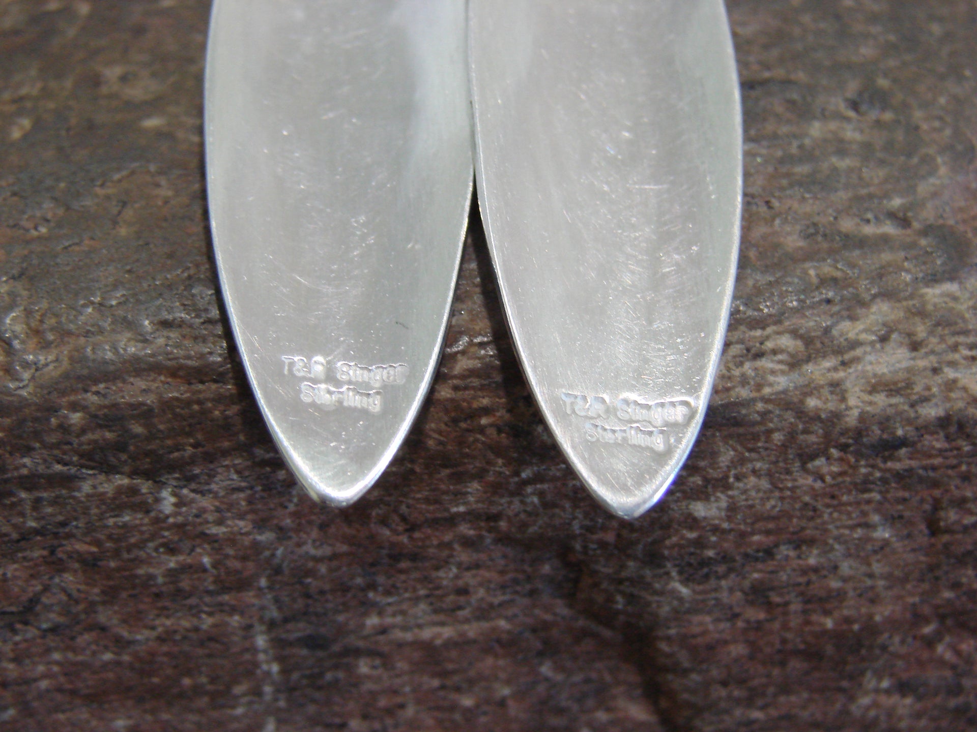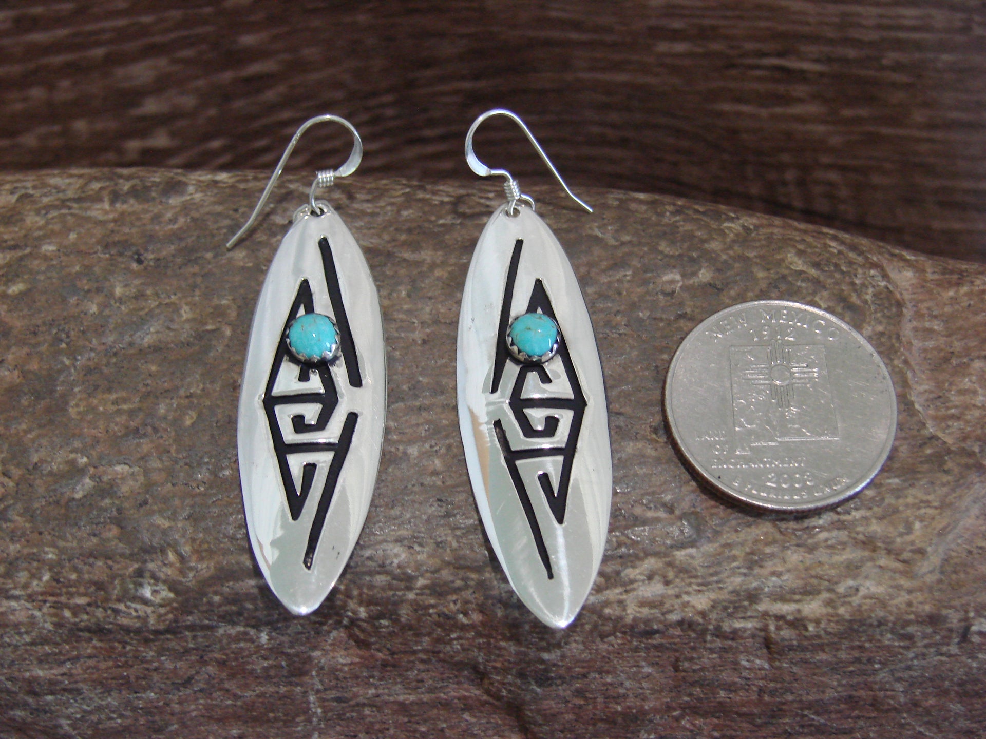 Native American Sterling Silver Feather & Turquoise Petroglyph Dangle Earrings - Singer
