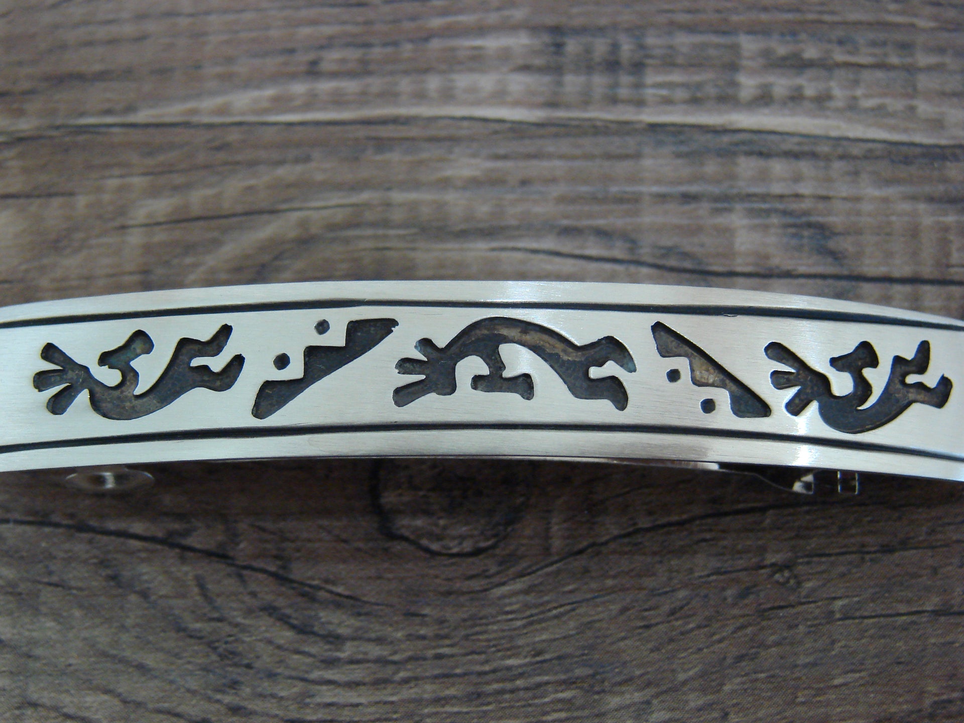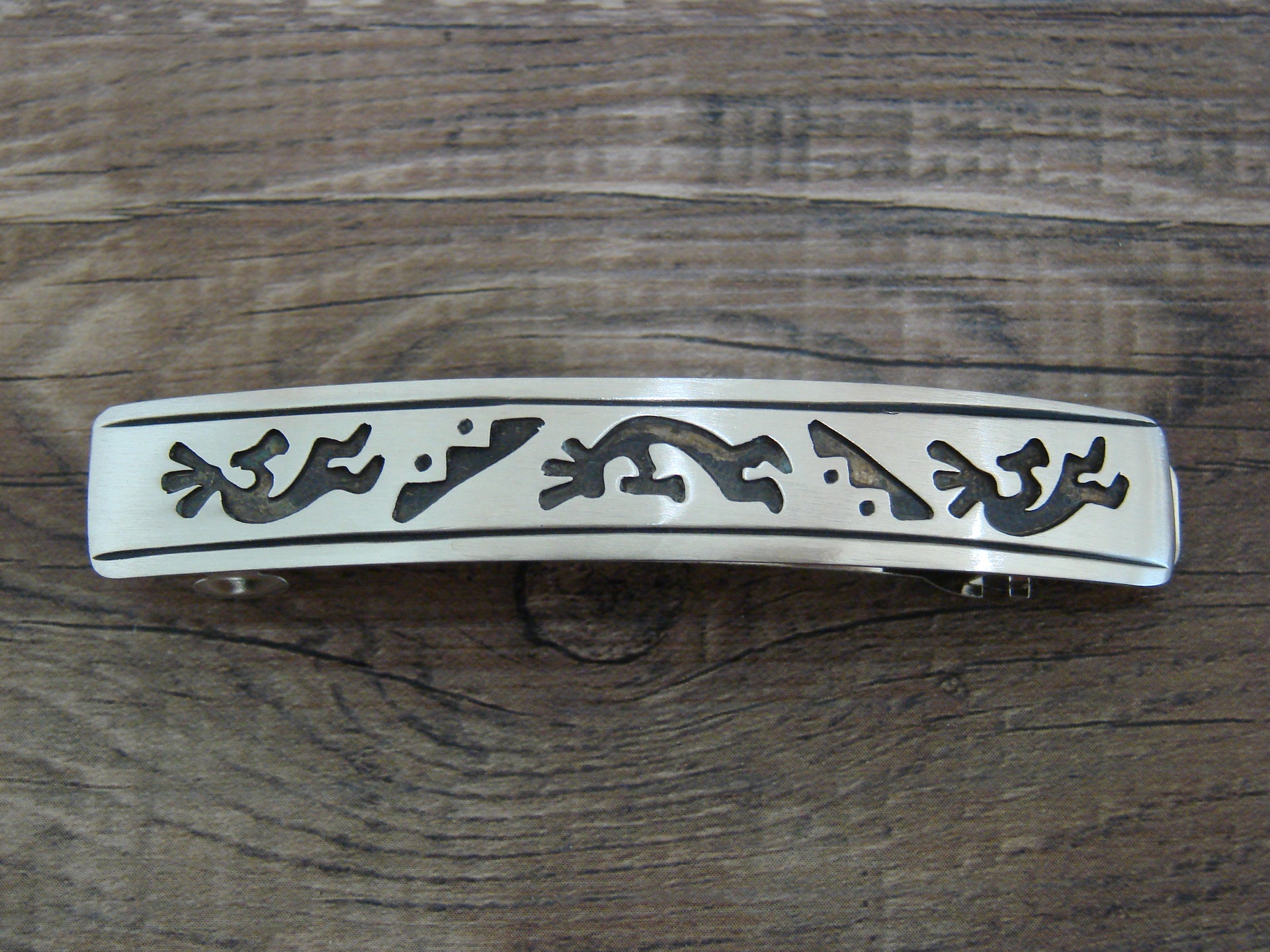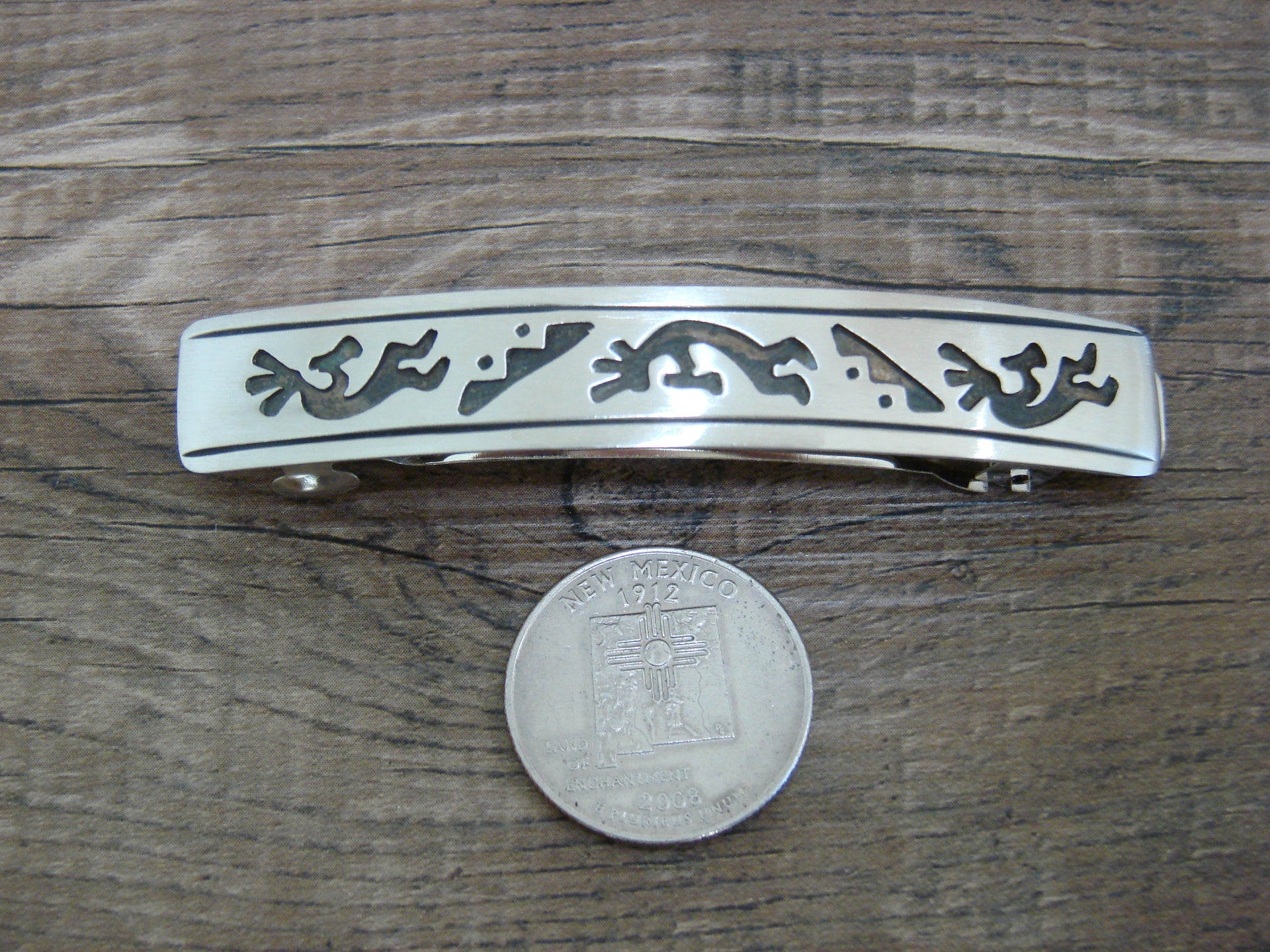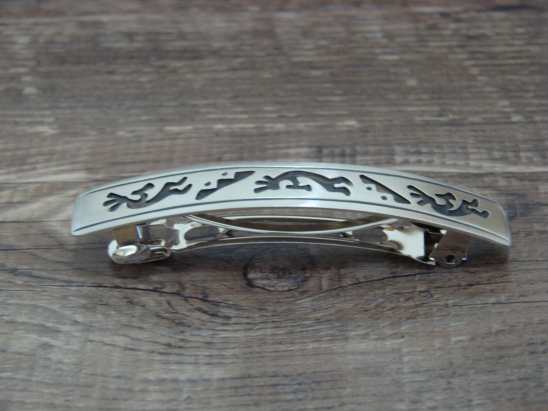 Native American Sterling Silver Hand Stamped Overlay Hair Barrette by Begay