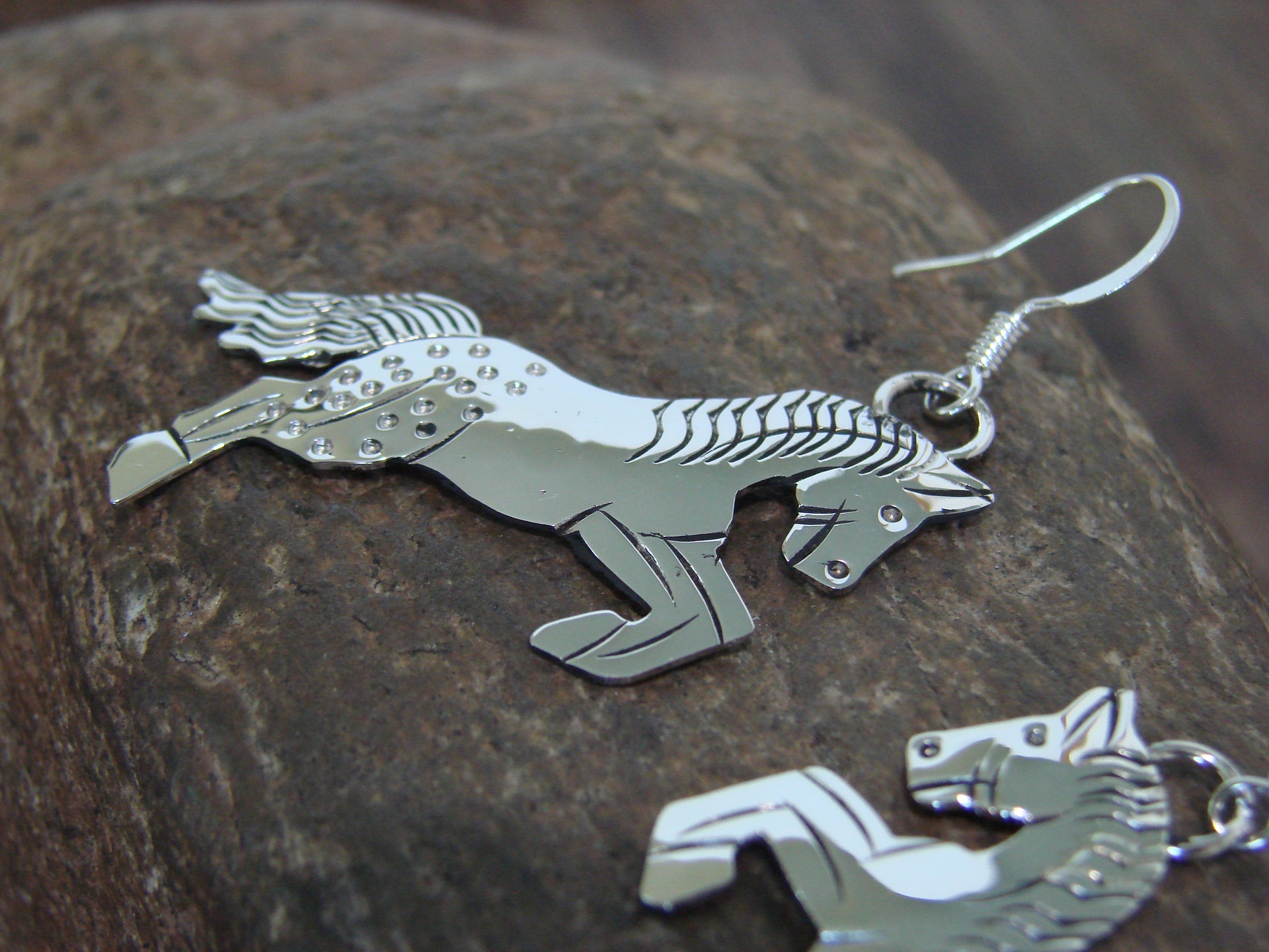Native American Sterling Silver Horse Dangle Earrings - Yazzie