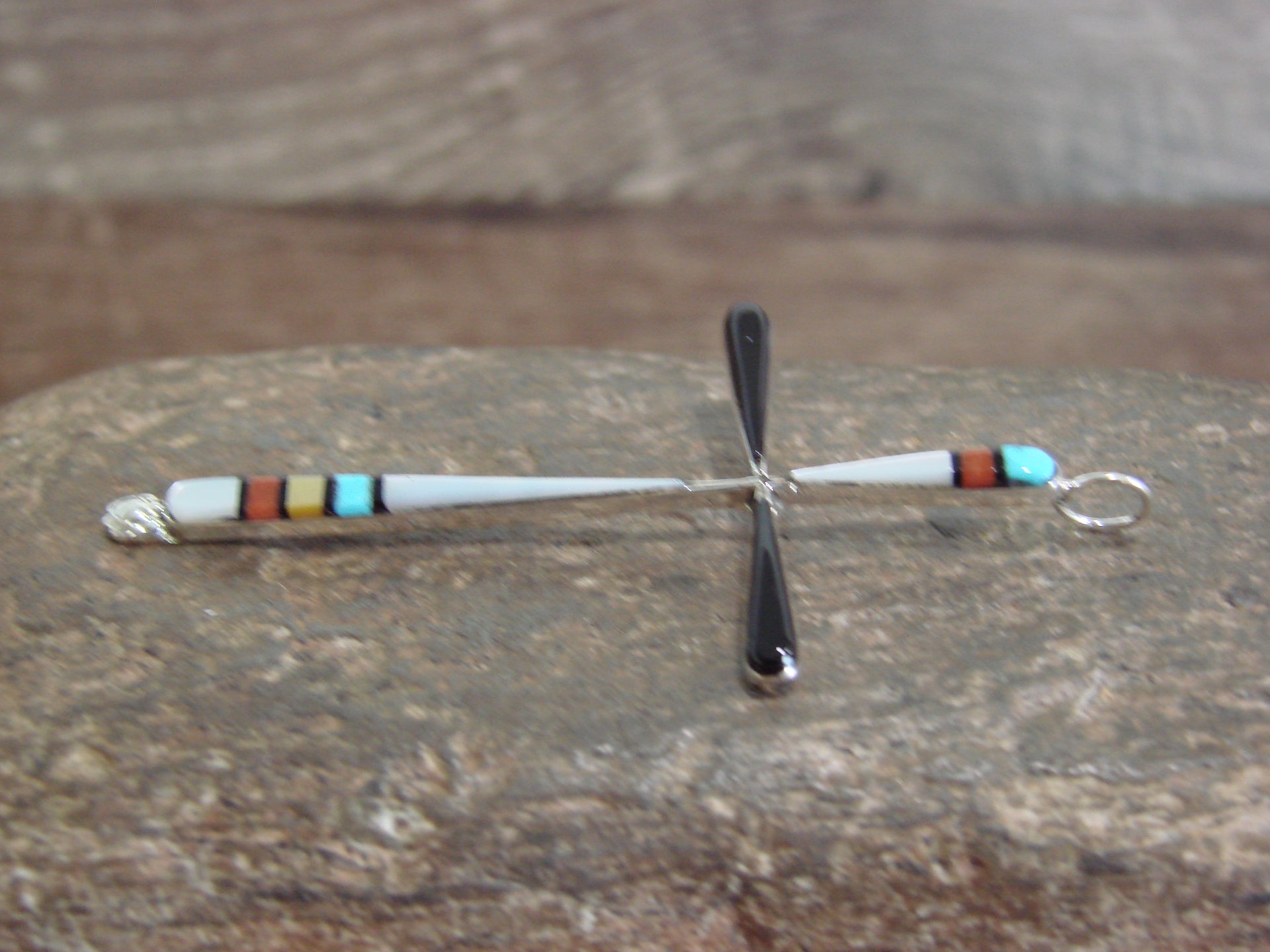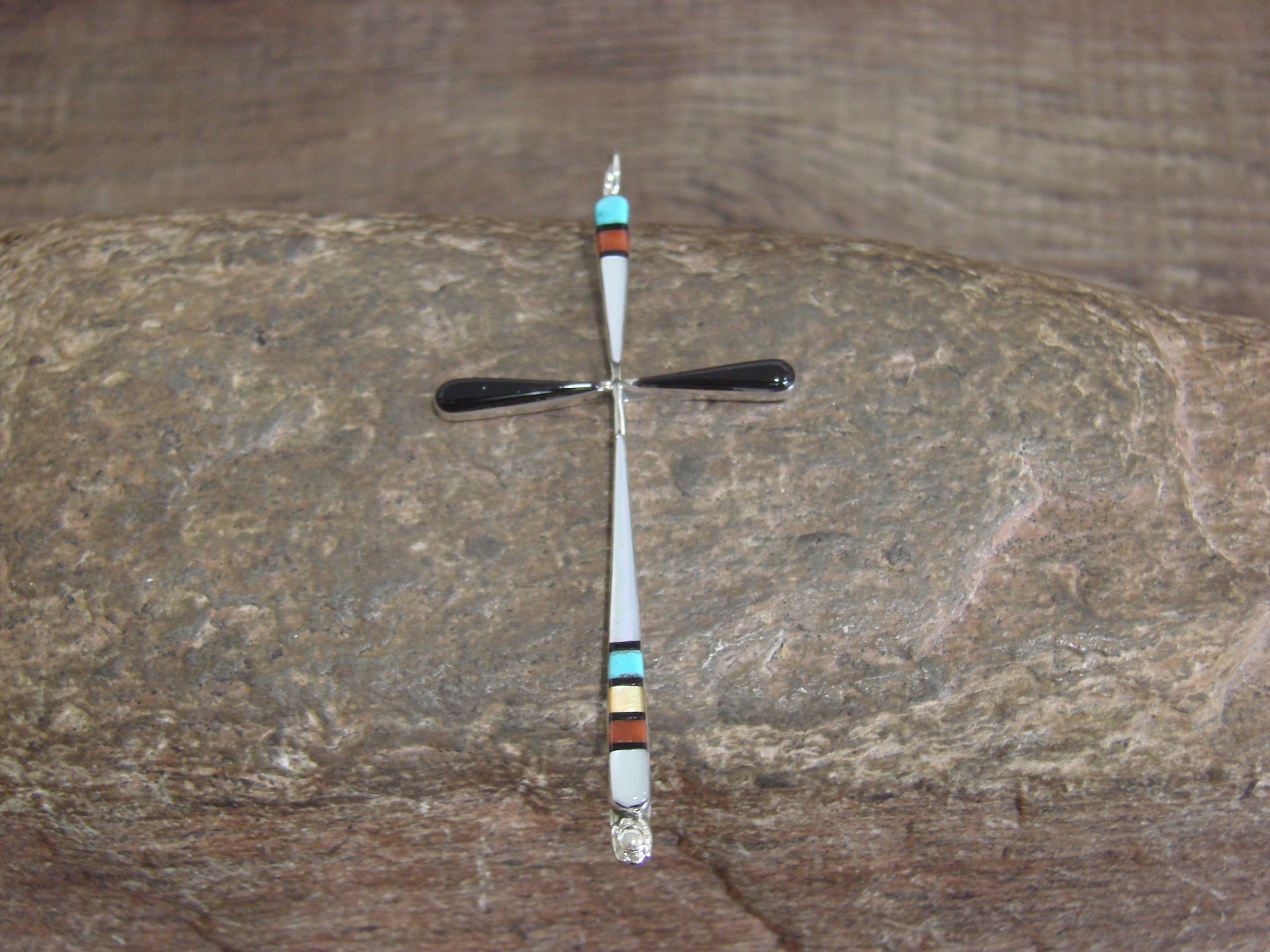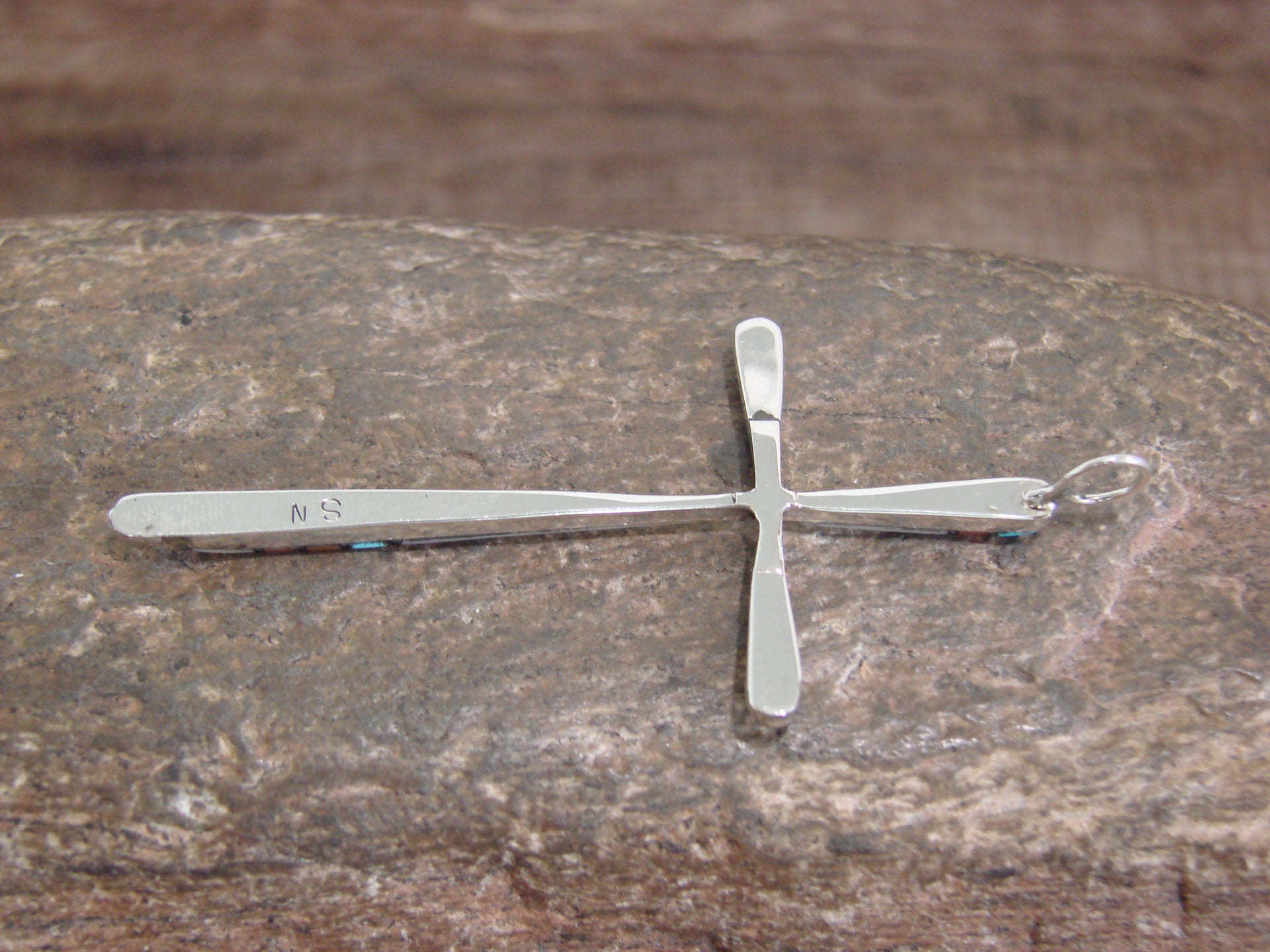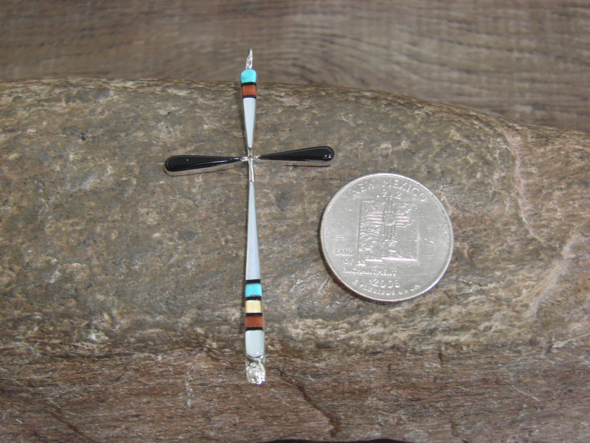 Native American Sterling Silver Multi Stone Inlay Cross Pendant by Noche
