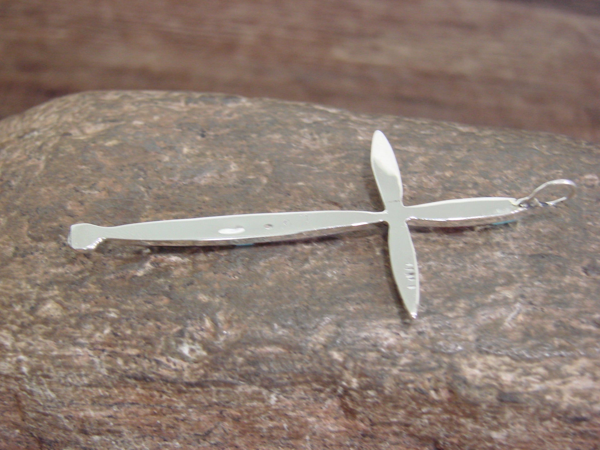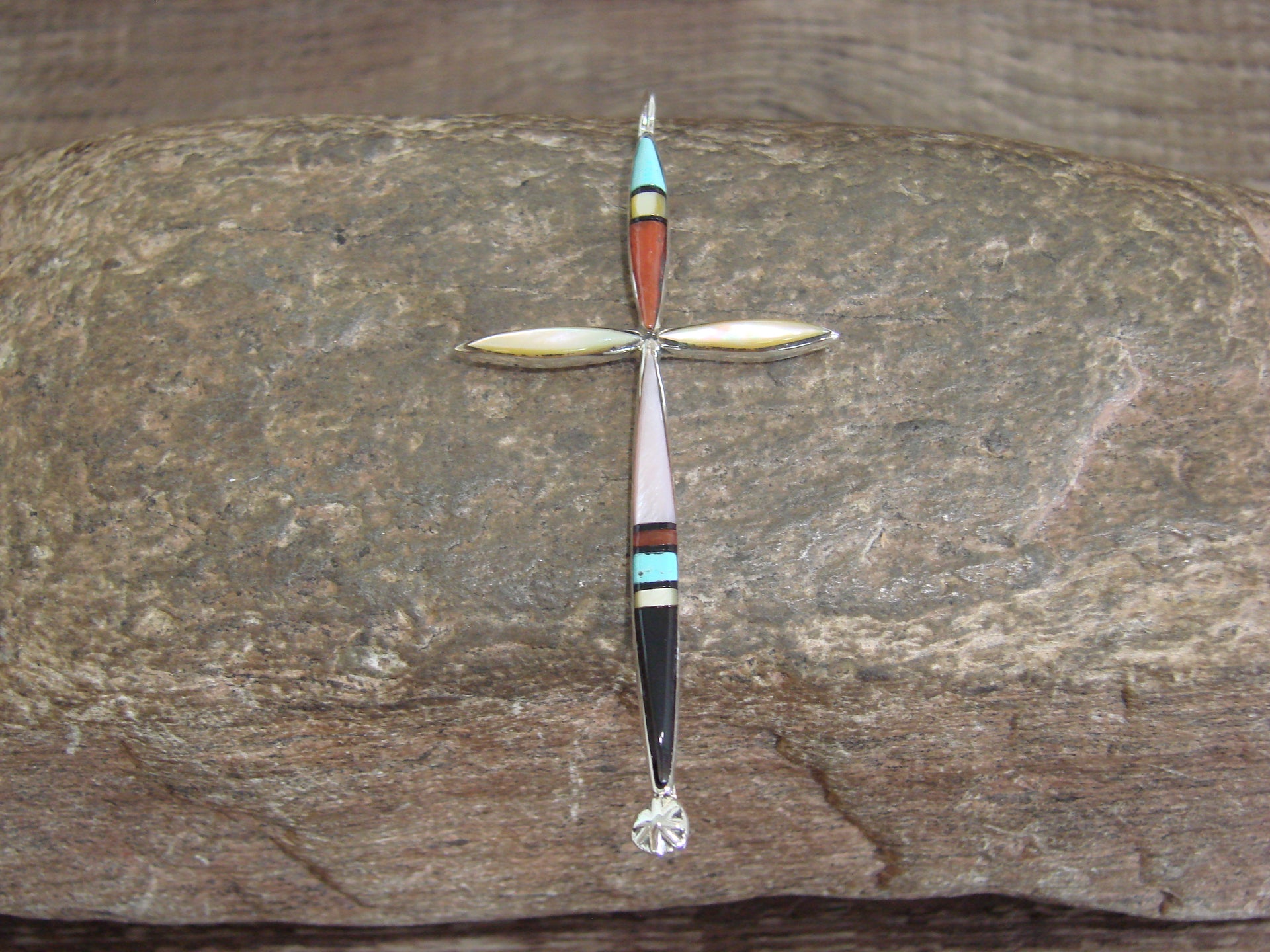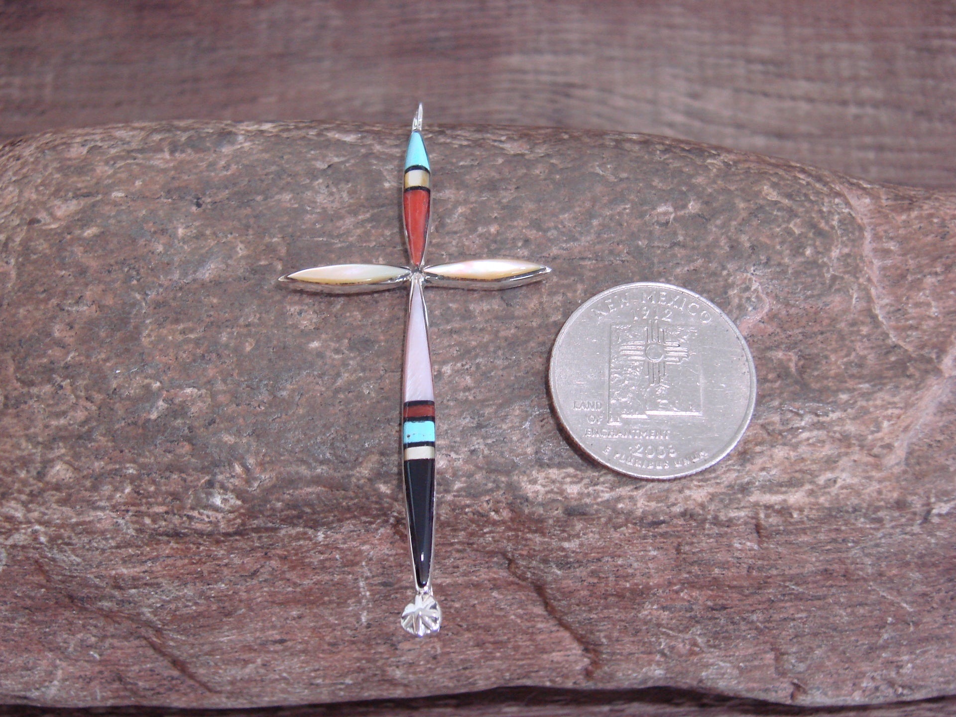Native American Sterling Silver Multi Stone Inlay Cross Pendant by Noche
