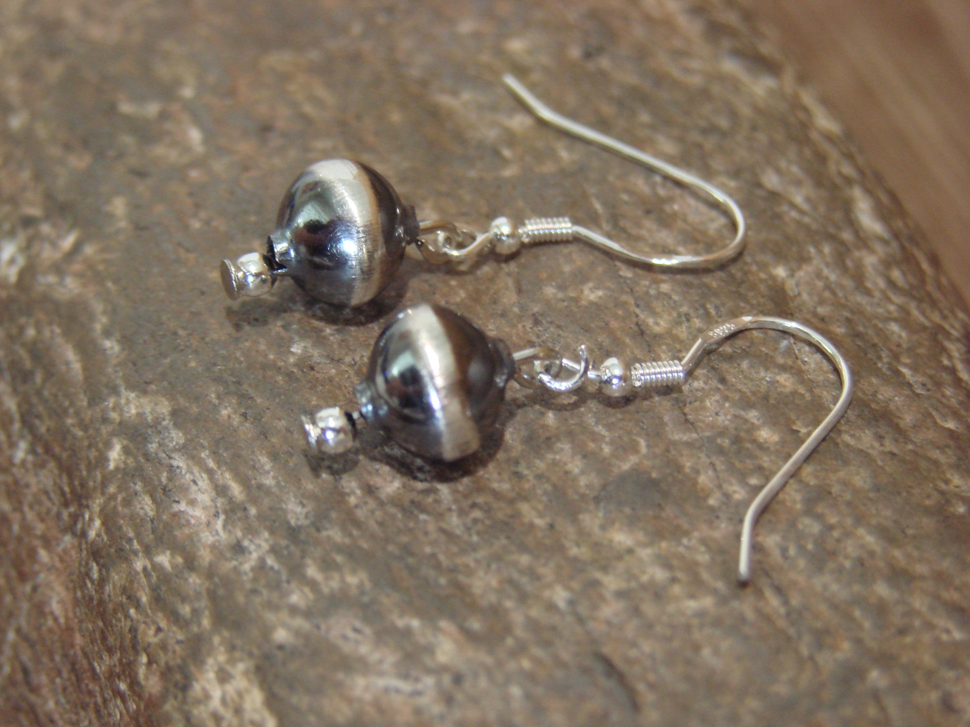 Genuine Native American Navajo Indian Sterling Silver Navajo Pearl Dangle Earrings from Western New Mexico. These earrings feature beautiful, Genuine 8mm Round Sterling Silver Navajo Pearls. Hand strung by Navajo Indian Silversmith Jan Mariano. These earrings are Stunning! Unsigned. Free Shipping with gift box included!