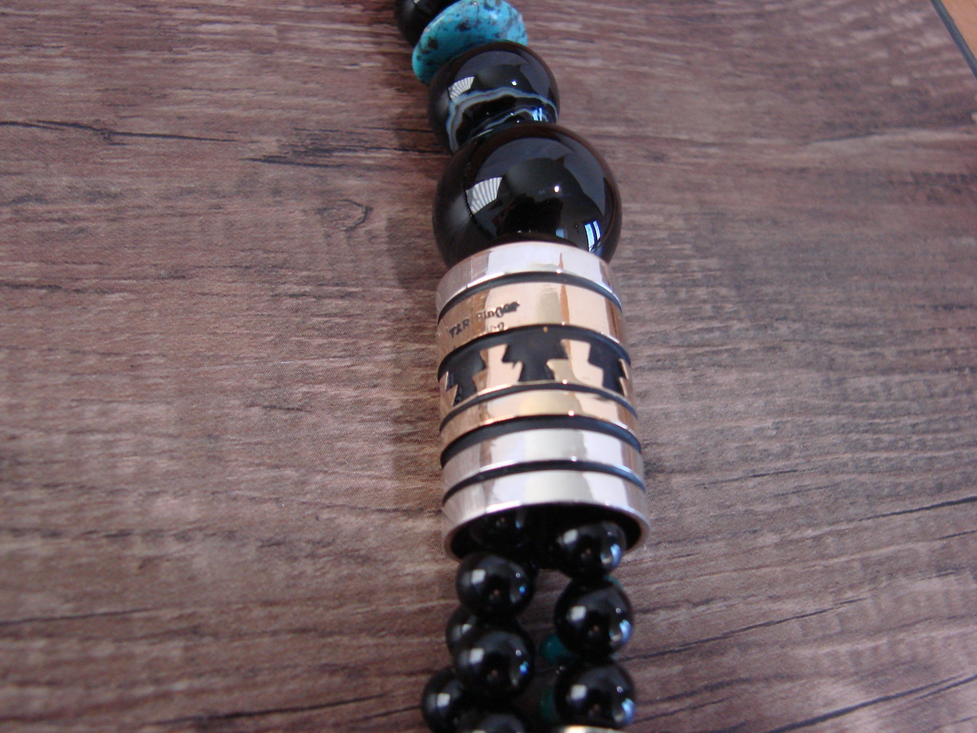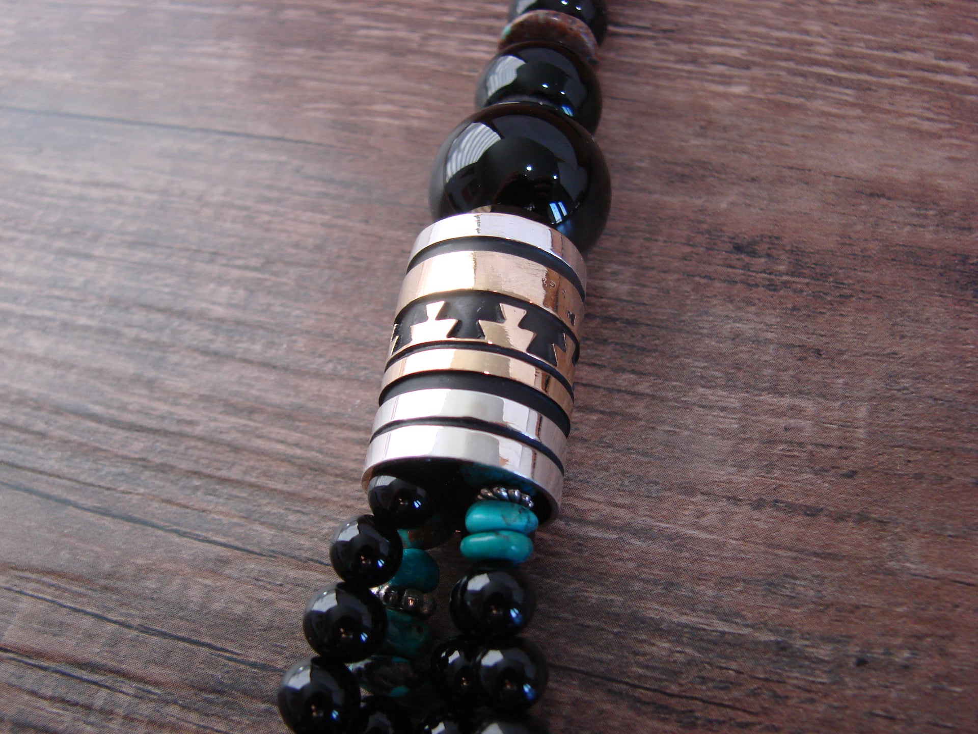 Genuine Native American Navajo Indian Onyx Gemstone Beaded Necklace from Western New Mexico. This Stunning necklace features Beautiful Onyx Stones accented with sterling silver and Multiple Gemstones. Finished with a sterling silver hook and eye closure this is a great necklace. These are high quality stones. This gorgeous piece is a handmade masterpiece! Hand strung by Rosita Singer, wife of the late Tommy Singer. This necklace is signed "T&R Singer Sterling". Free shipping in a gift box included!