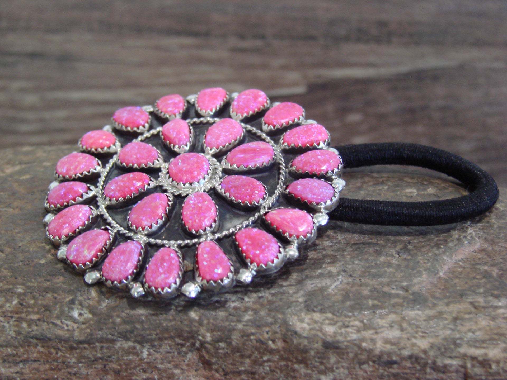 Native American Sterling Silver & Pink Opal Cluster Hair Tie Signed DLW
