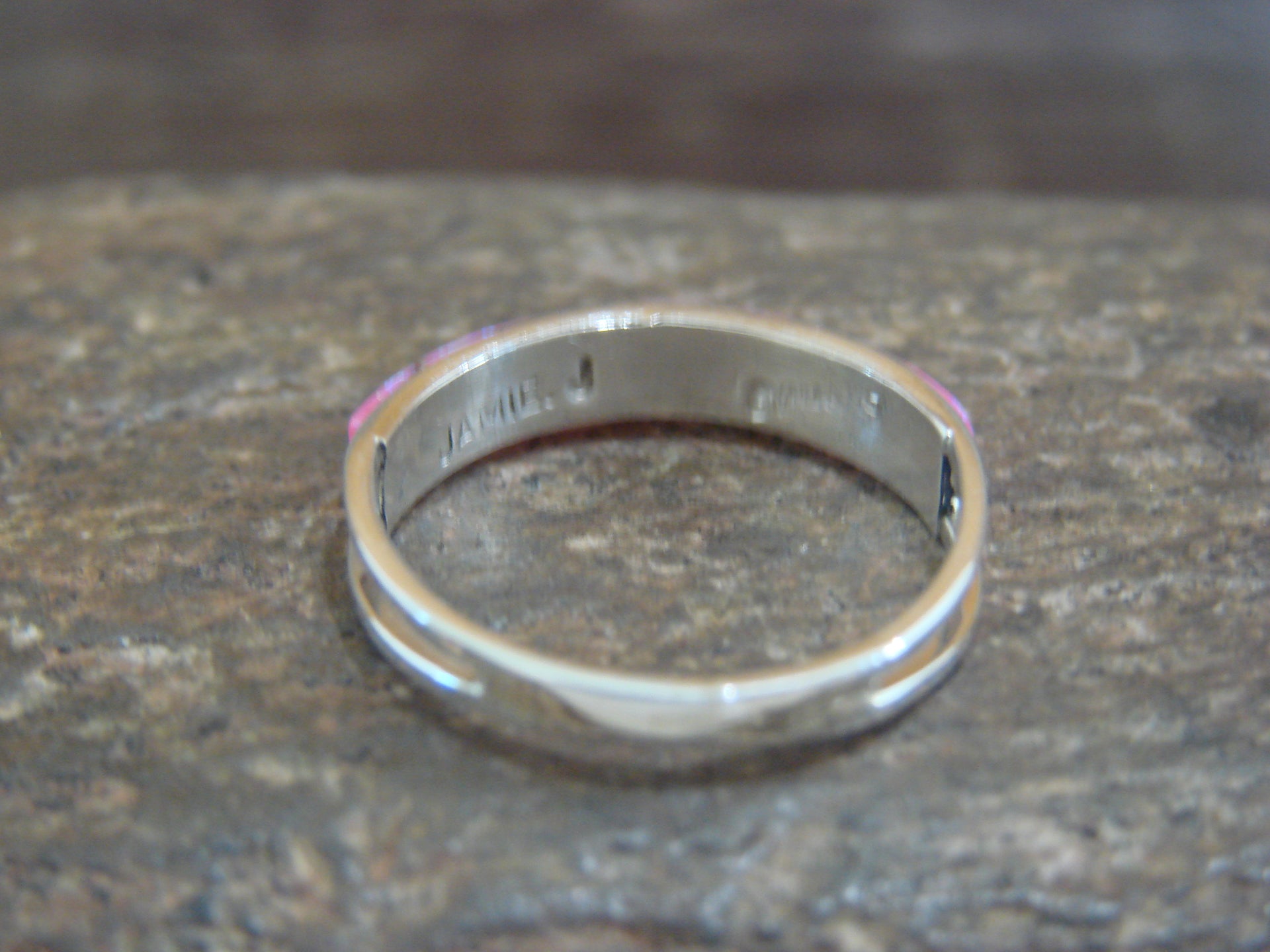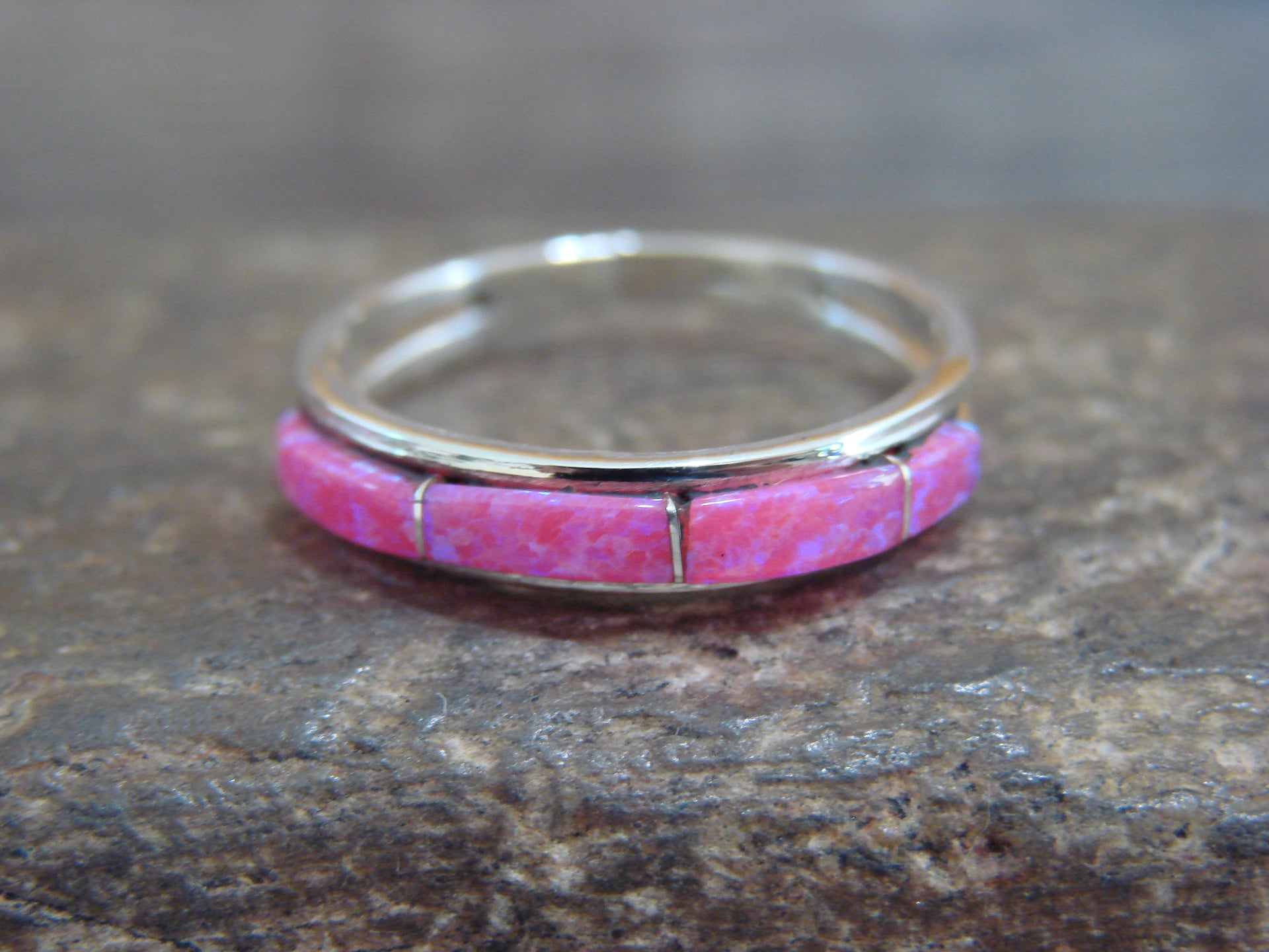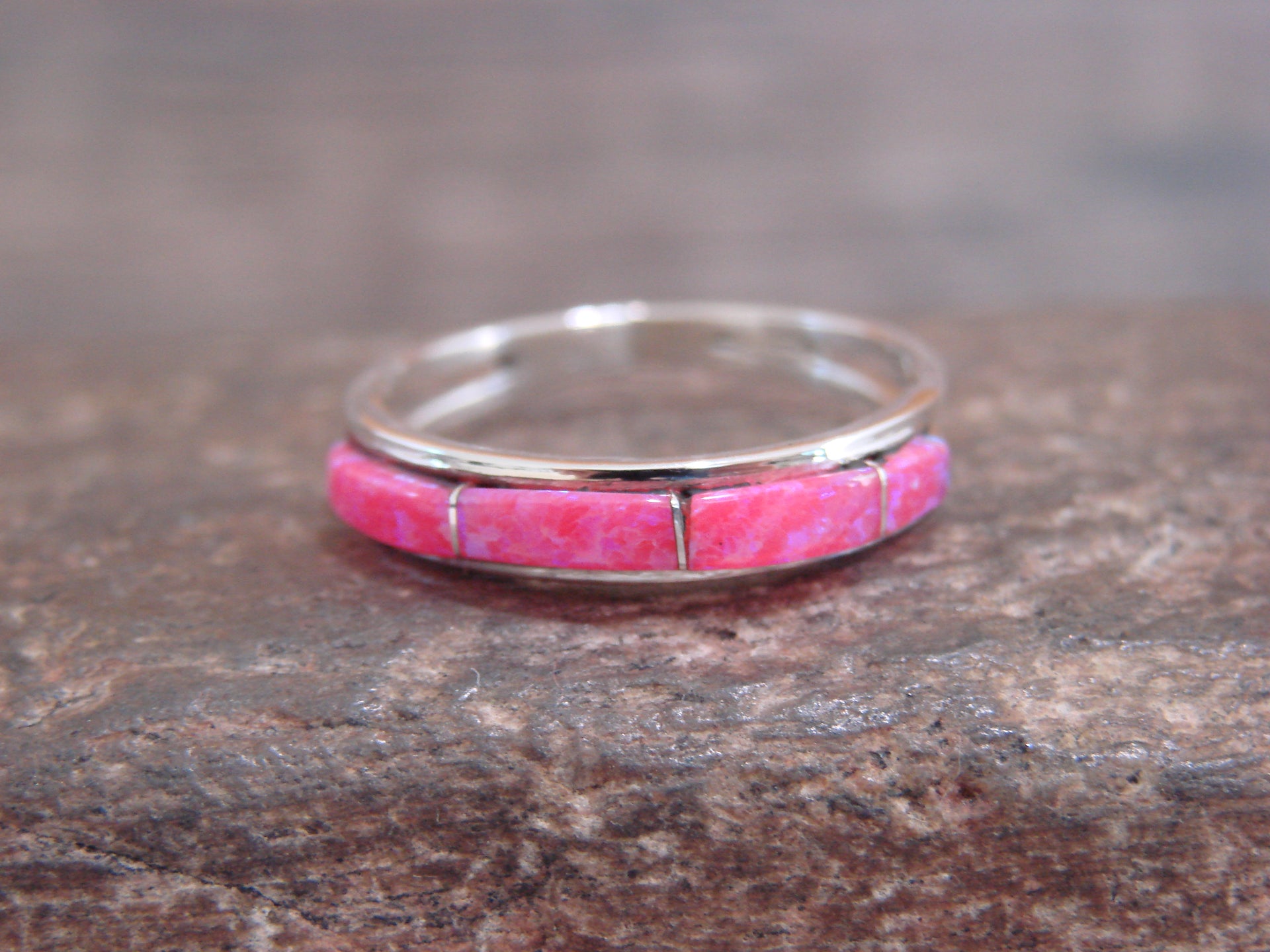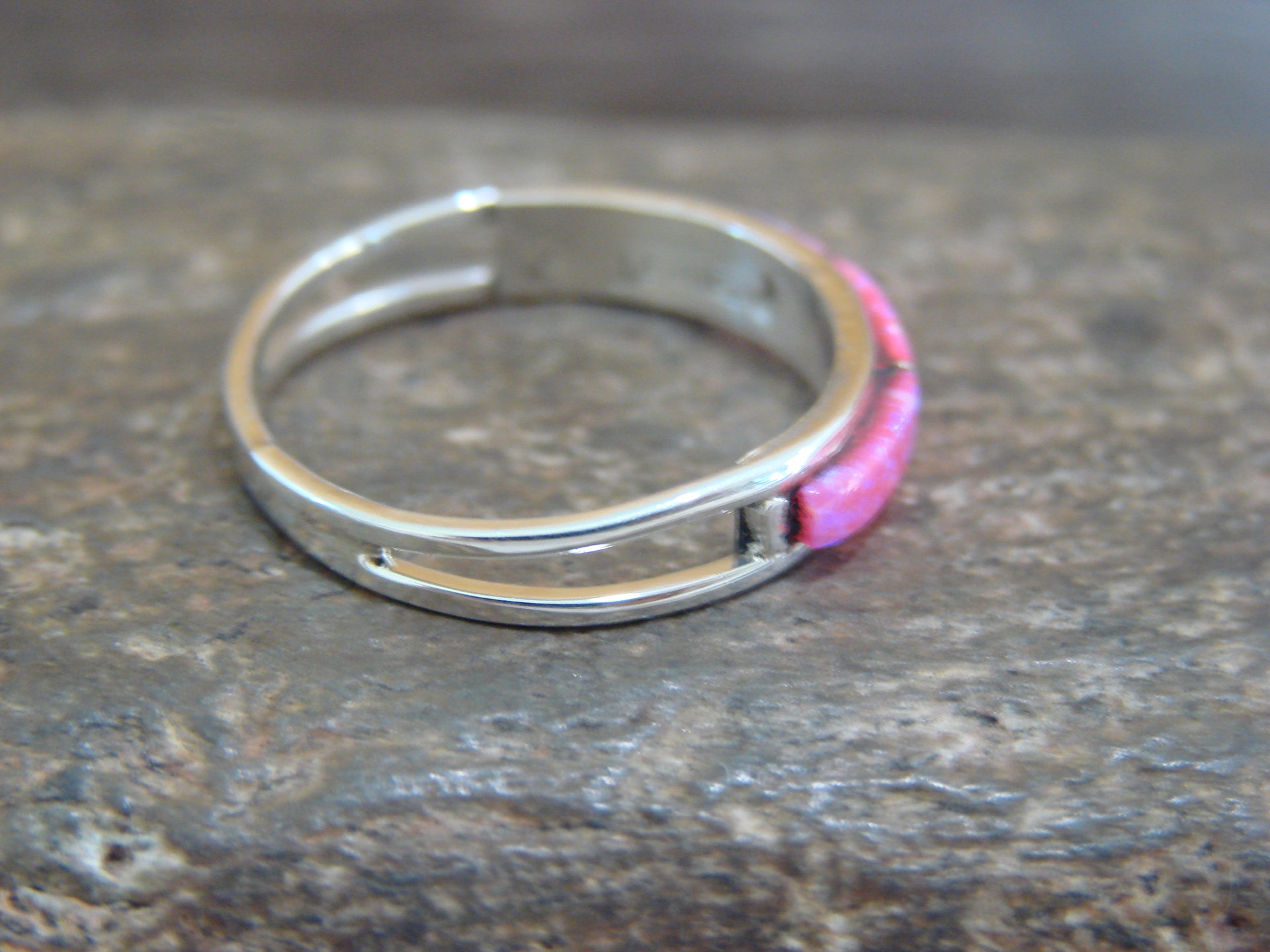 Native American Sterling Silver Pink Opal Inlay Ring by Johnson - Size 9.5