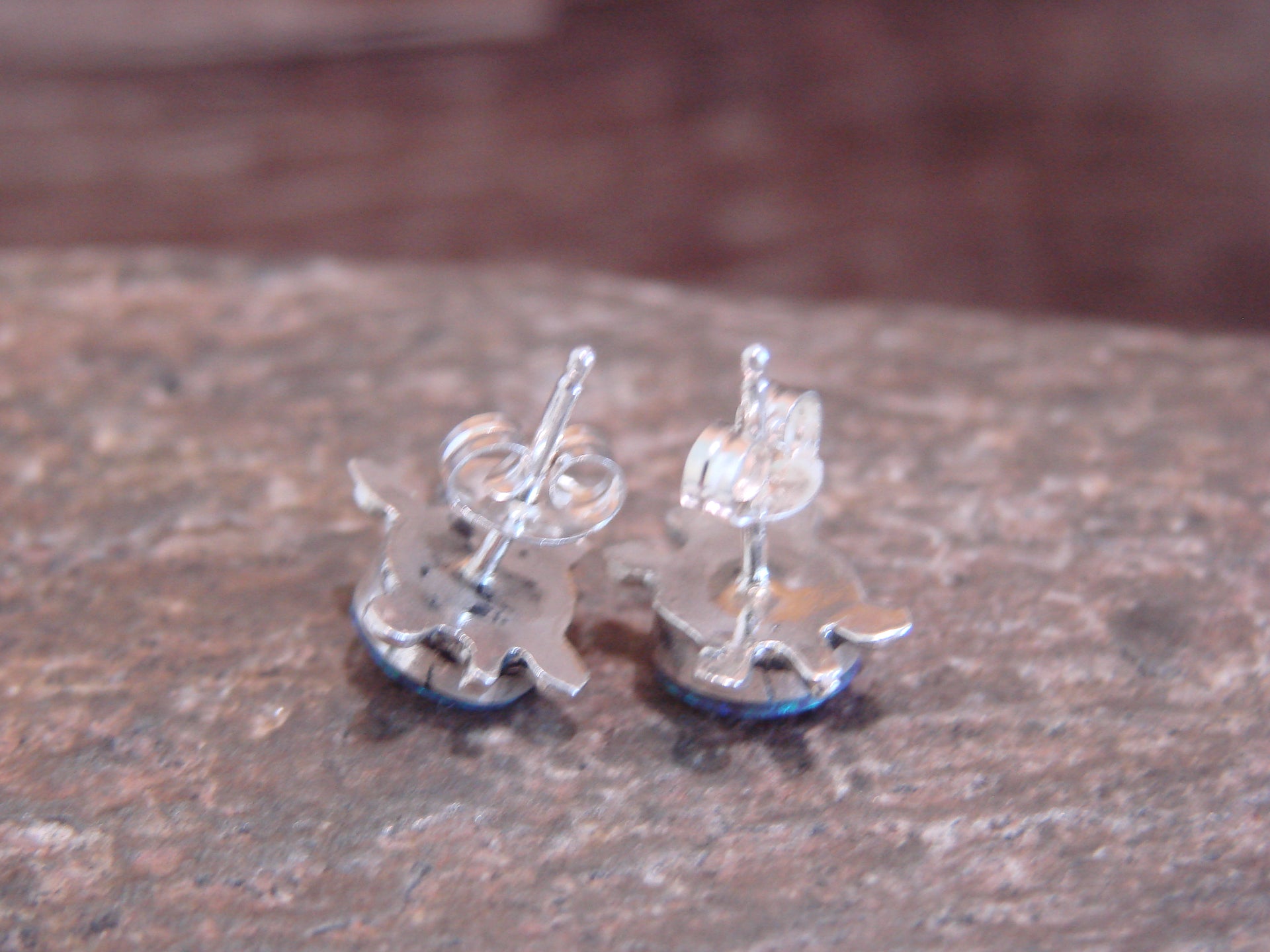 Native American Zuni Indian Sterling Silver & Opal Turtle Post Earrings from Western New Mexico. These Stunning earrings feature Lab Opal stones beautifully set into a sterling silver turtle setting. The sterling silver work surrounding the earrings is very nicely detailed and polished to a bright finish! Zuni Indian Handmade by Richard & Trista Siow. Unsigned. Free Shipping and Gift Box included!