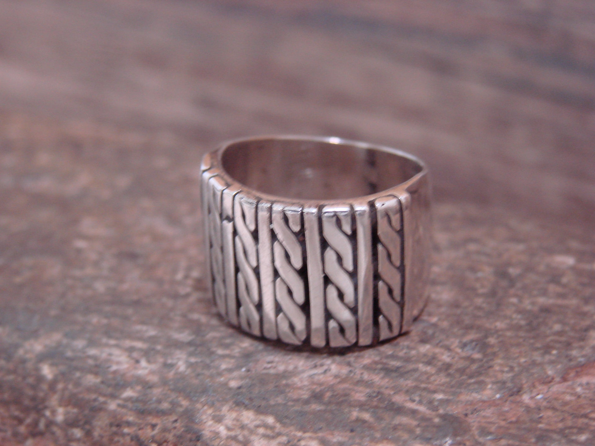 Genuine Native American Navajo Indian Sterling Silver Ring from Western New Mexico. This stunning ring features beautiful details in Smooth Sterling Silver. This ring is very detailed and very well made! Handmade by well known Navajo silversmith Genevieve Burnside. Hallmarked on the inner band. Free shipping and gift box included!