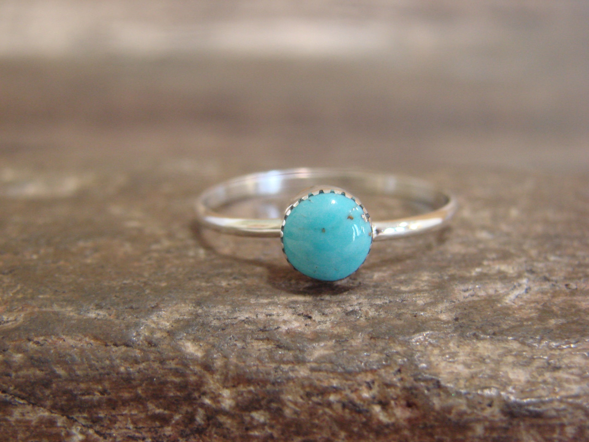 Native American Zuni Indian Sterling Silver Round Turquoise Ring from Western New Mexico. This ring features a beautiful Turquoise stone set into a crown sterling silver bezel setting. This ring is Dainty and Gorgeous and the perfect touch of Turquoise! Handmade by Zuni Silversmith Ashley Laate. Unsigned. Free Gift box and Shipping included!