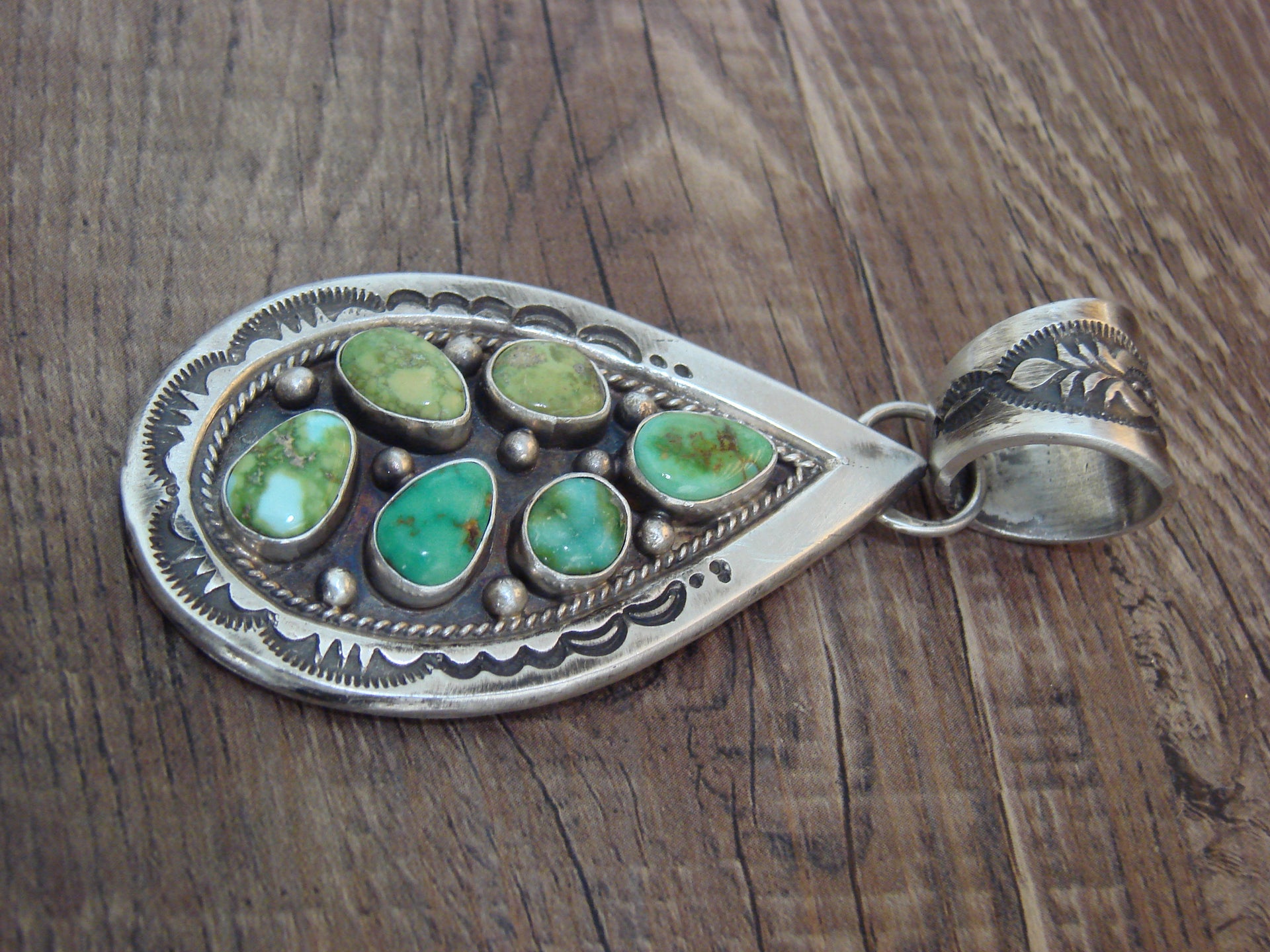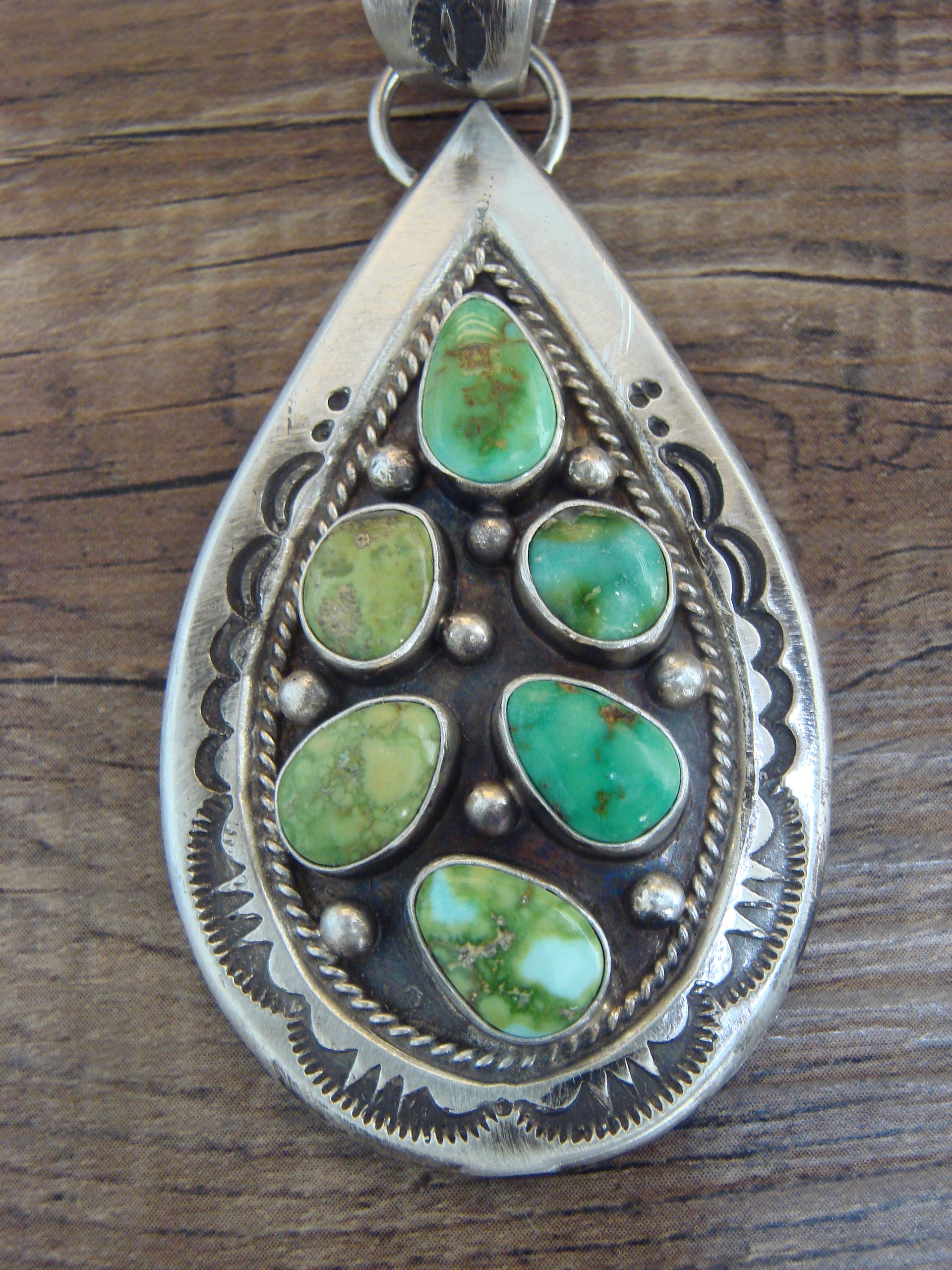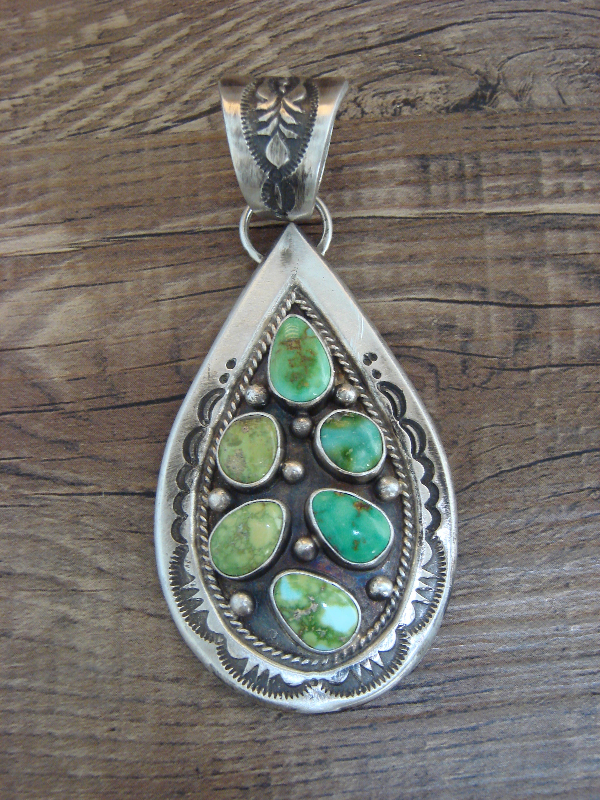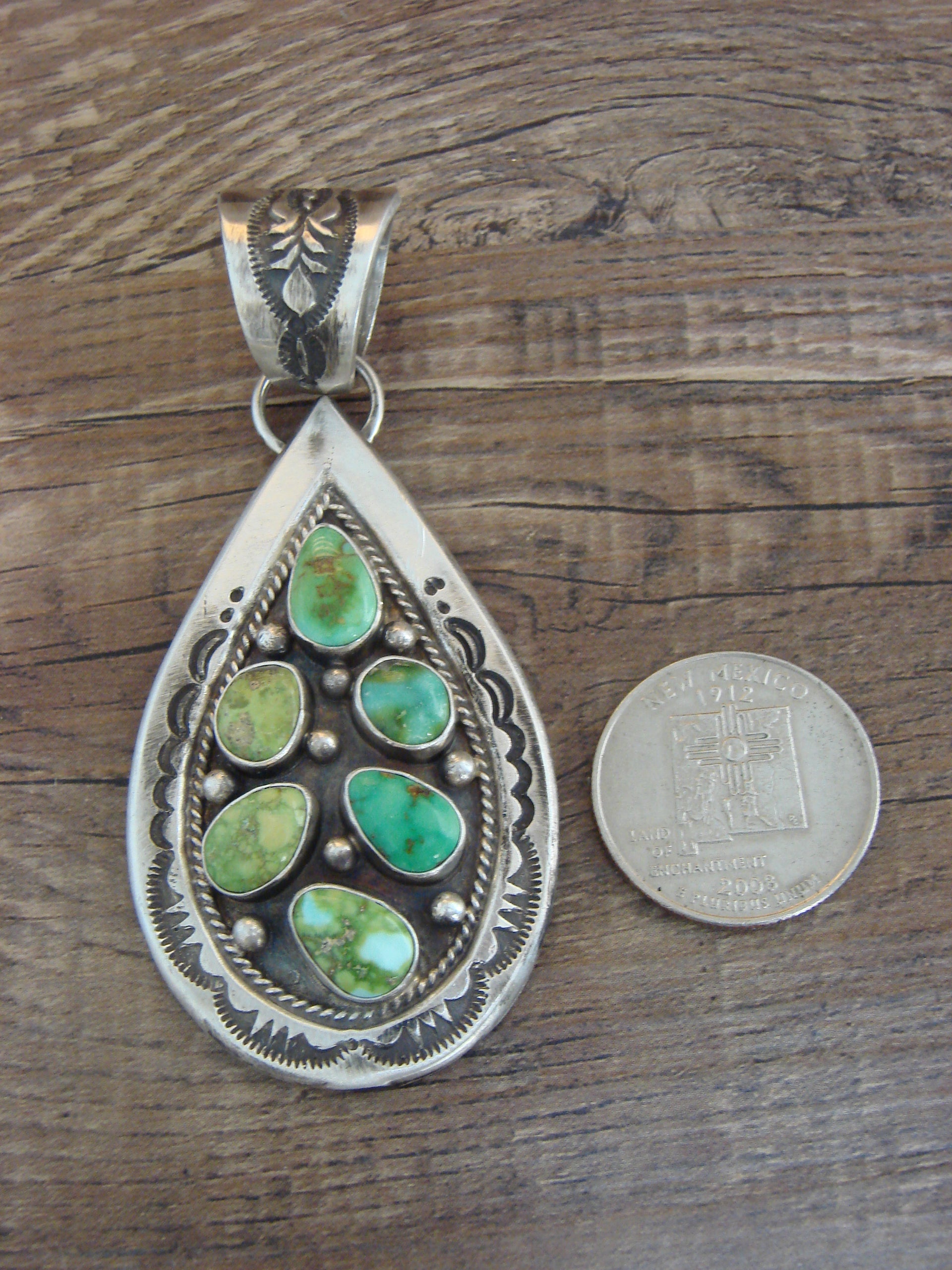Native American Sterling Silver & Sonoran Turquoise Cluster Pendant by Lewis