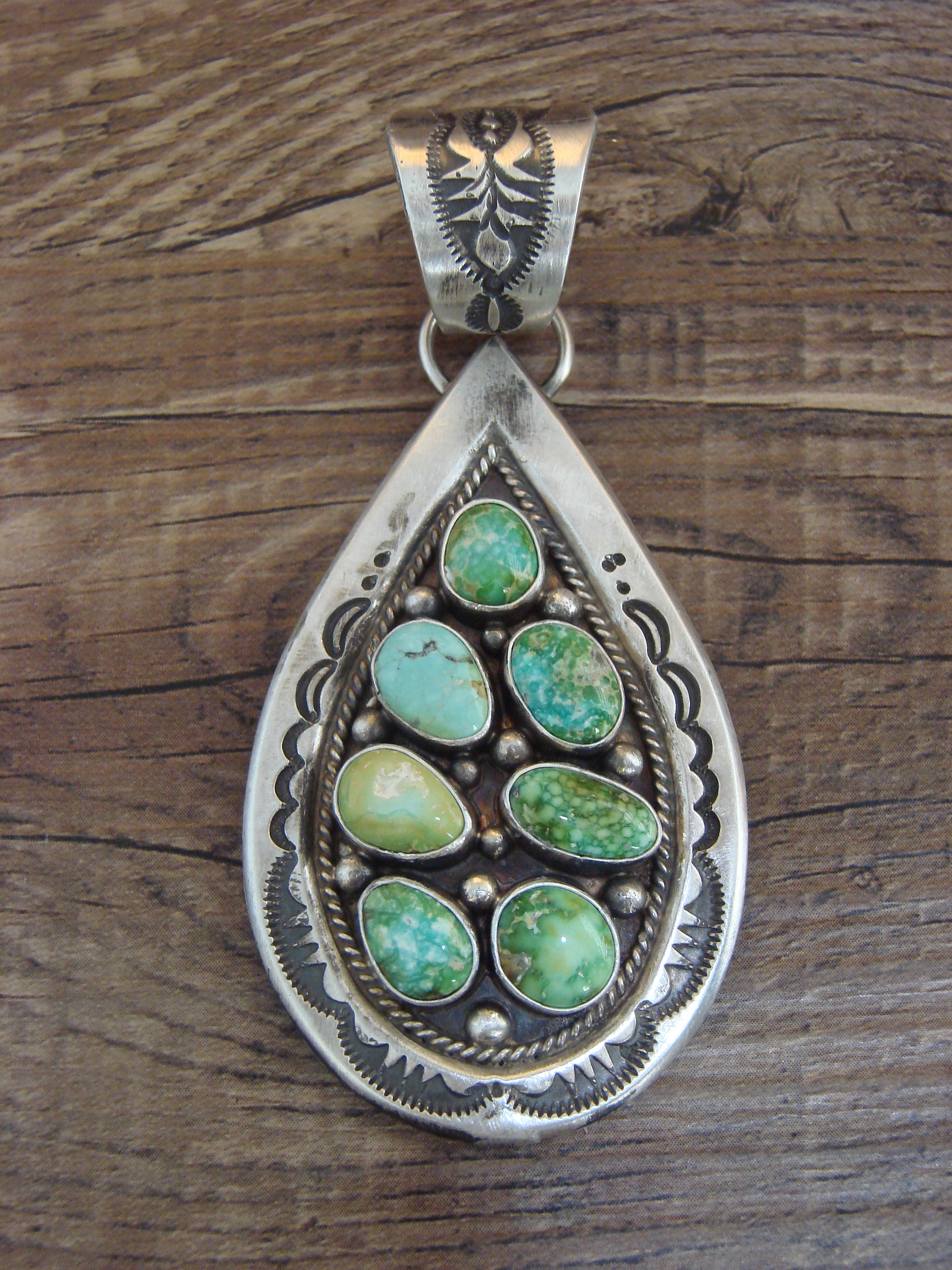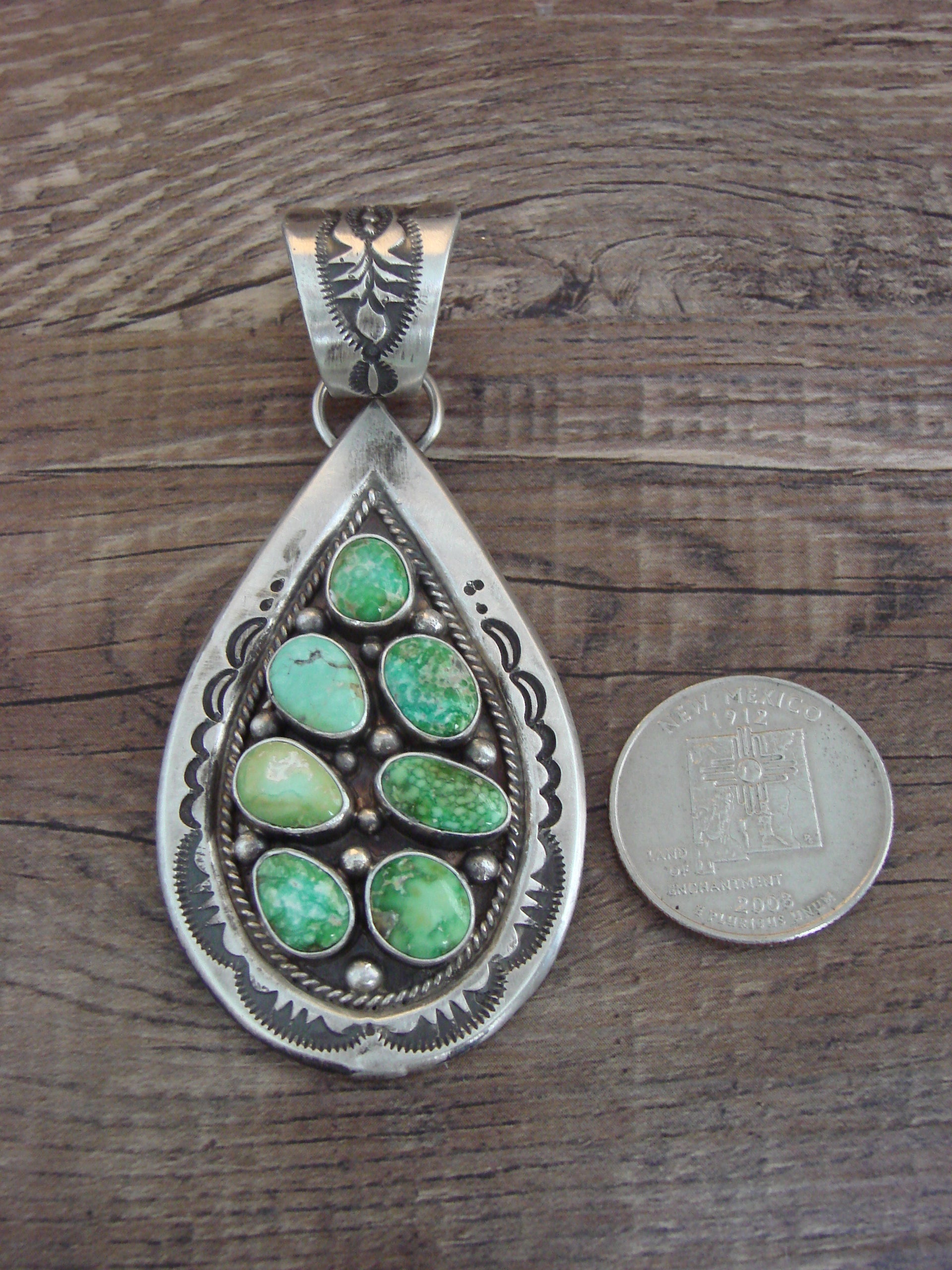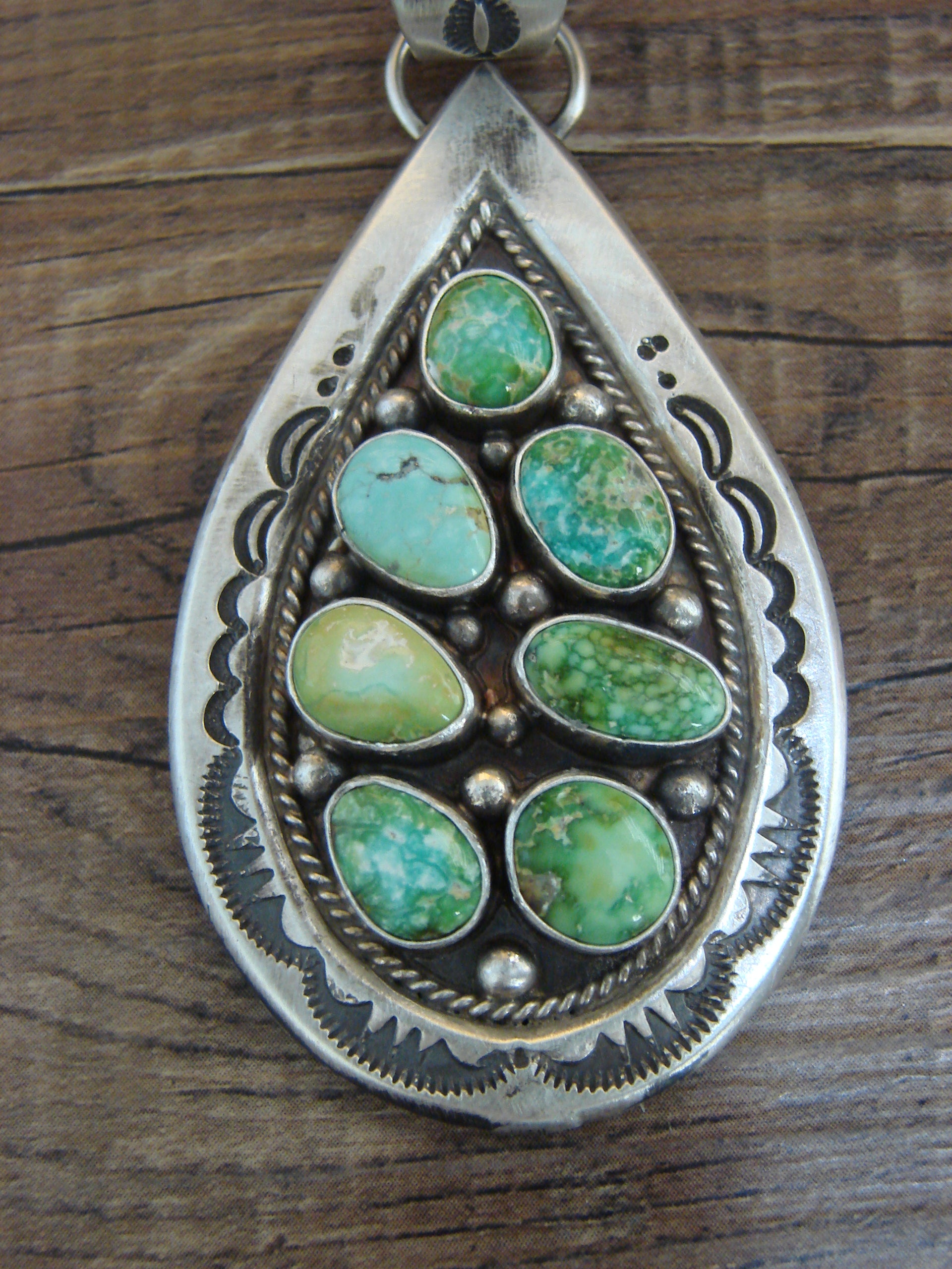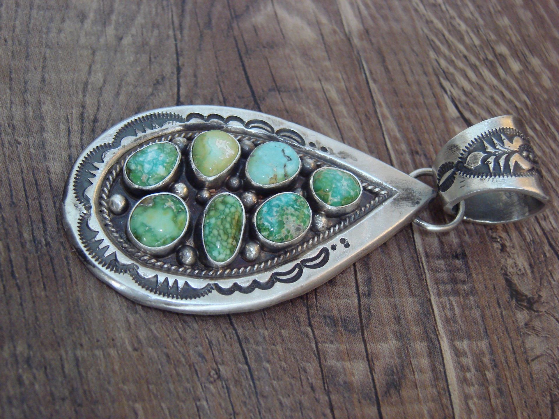 Native American Sterling Silver & Sonoran Turquoise Cluster Pendant by Lewis