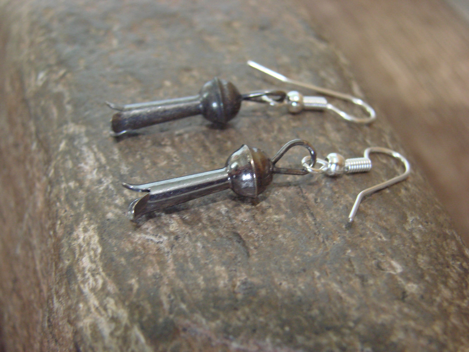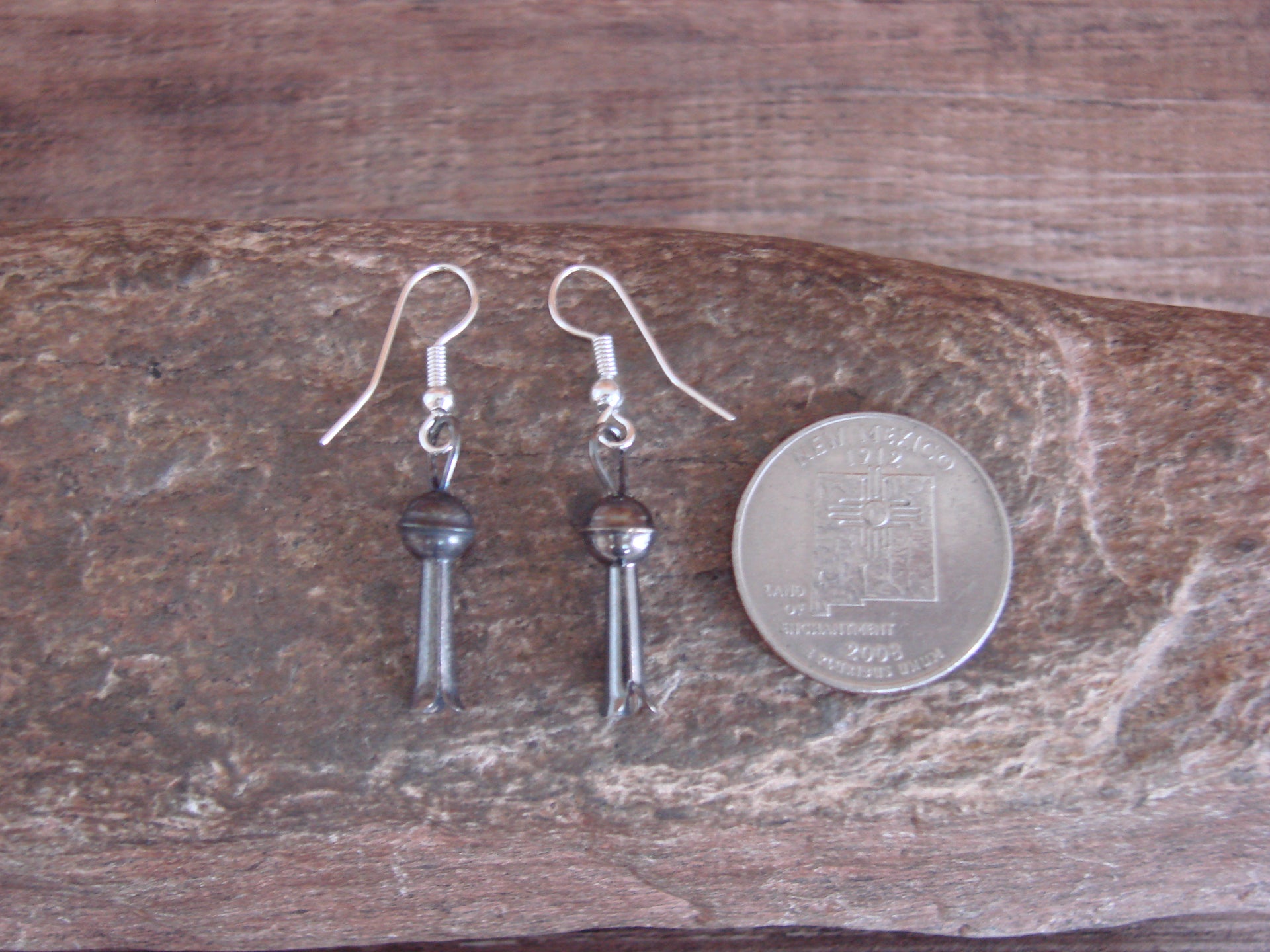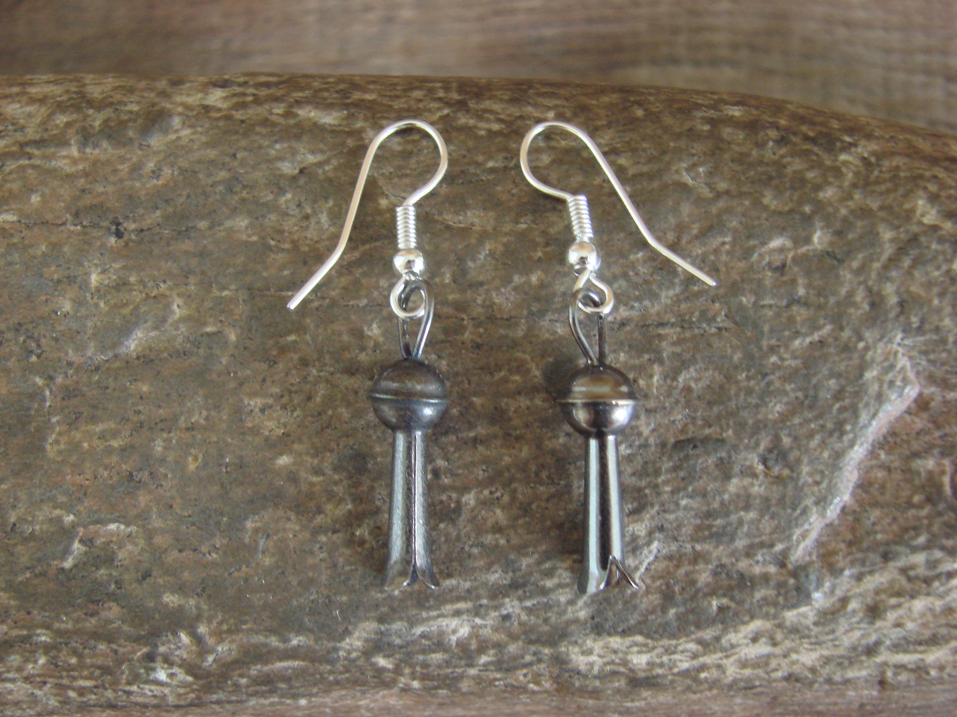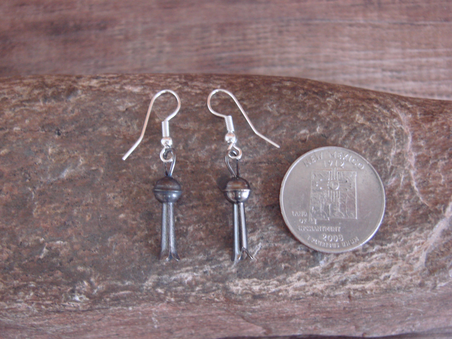 Genuine Native American Navajo Indian Sterling Silver Squash Blossom Dangle Earrings from Western New Mexico. These Stunning earrings feature Smooth Sterling Silver details throughout a Stunning Squash Blossom. This is a beautiful pair of earrings with a Patina Finish! Navajo Indian hand made by J. Mariano. Unsigned. Free gift box and shipping included!