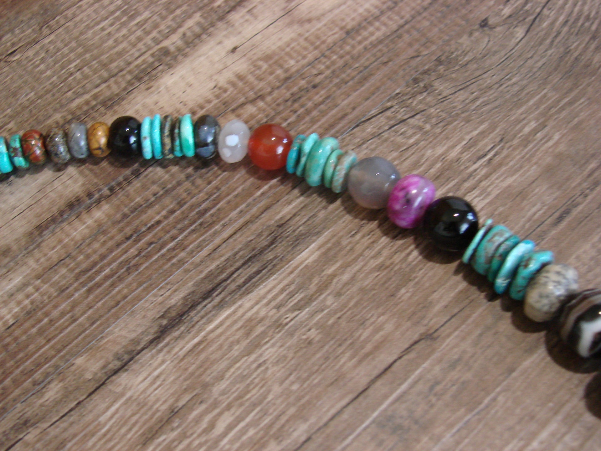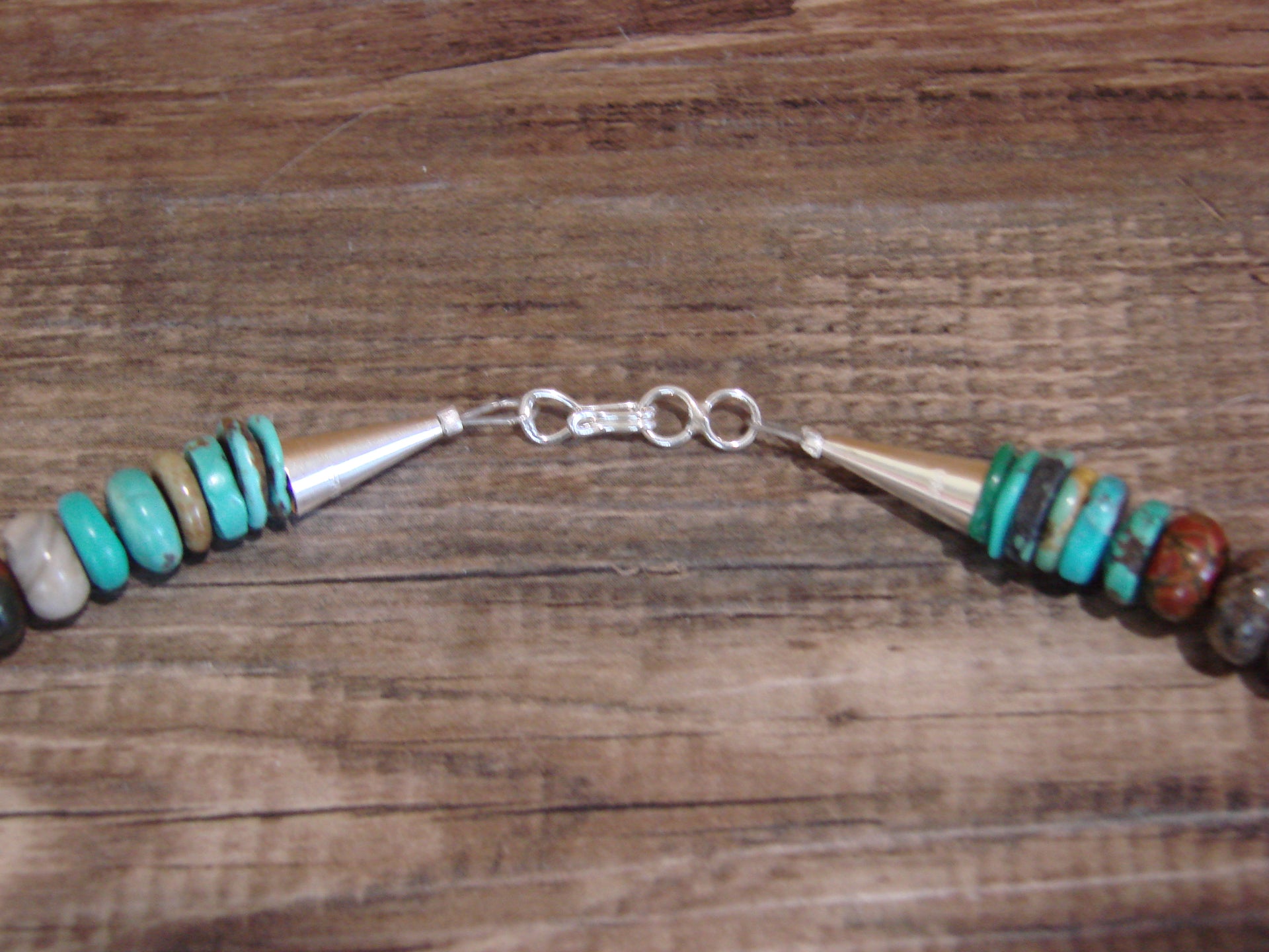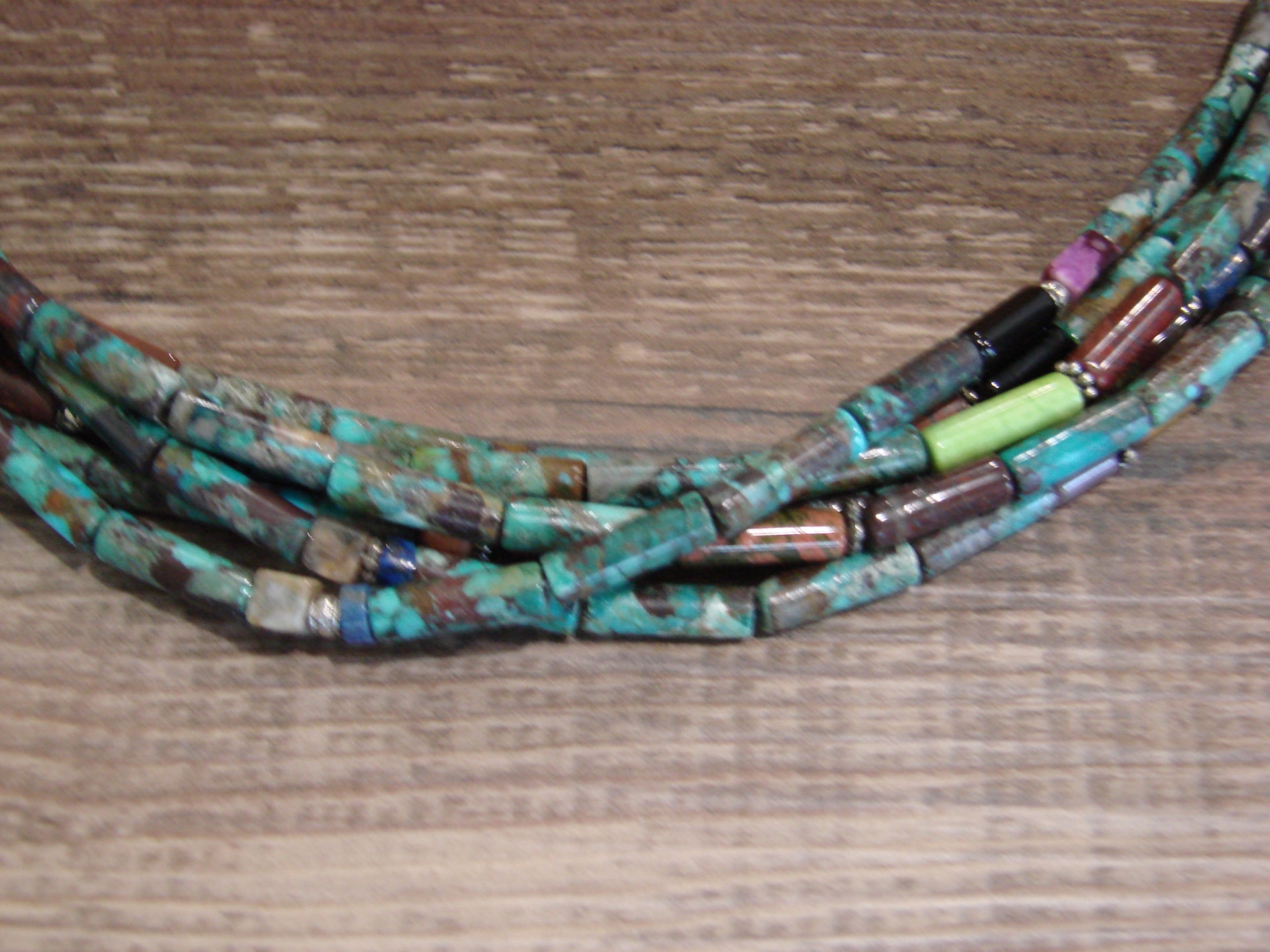 Genuine Native American Navajo Indian Turquoise Gemstone Beaded Necklace from Western New Mexico. This Stunning necklace features Beautiful Turquoise Stones accented with sterling silver and Multiple Gemstones. Finished with a sterling silver hook and eye closure this is a great necklace. These are high quality stones. This gorgeous piece is a handmade masterpiece! Hand strung by Rosita Singer, wife of the late Tommy Singer. This necklace is signed "T&R Singer Sterling". Free shipping in a gift box included!