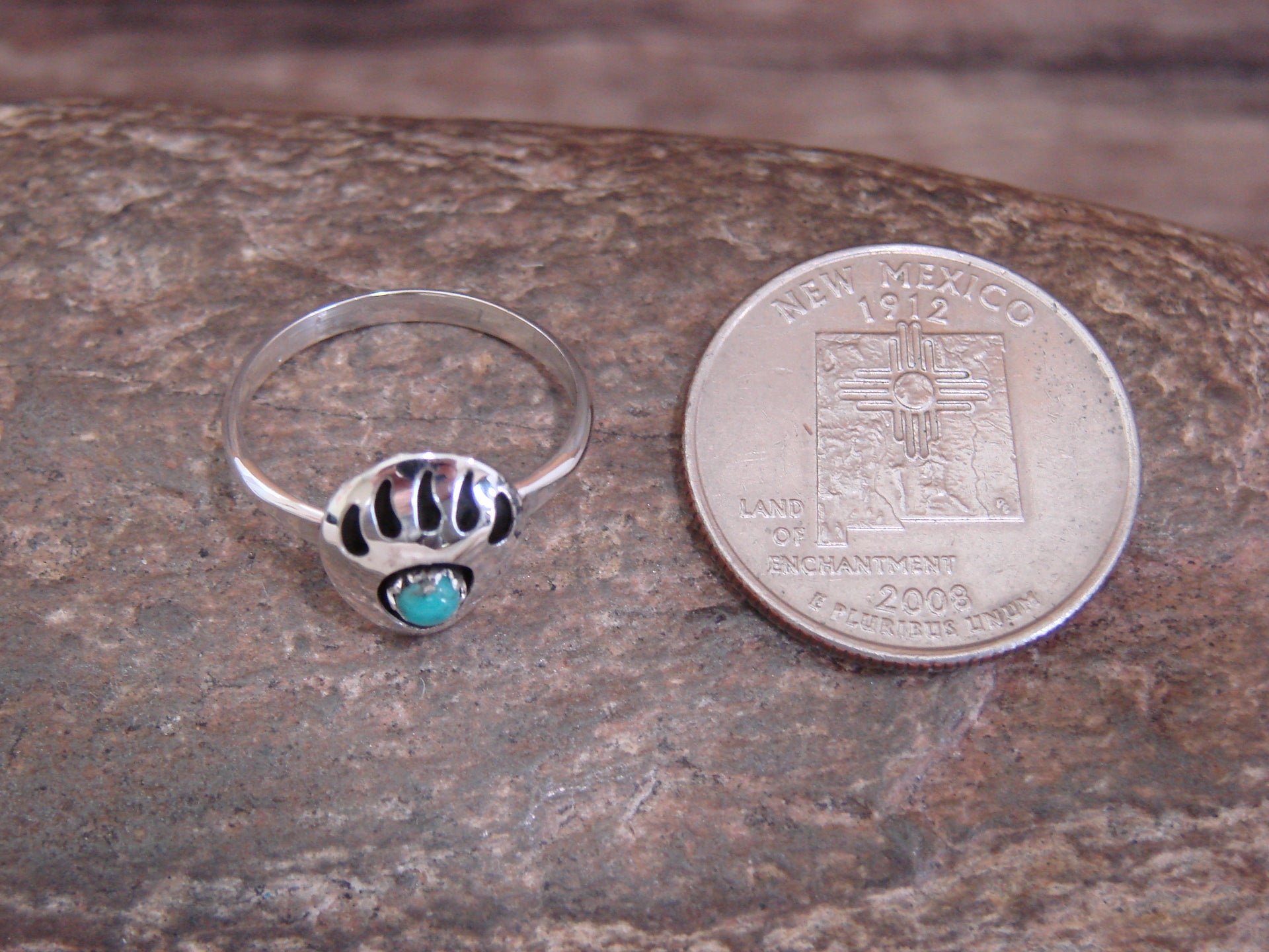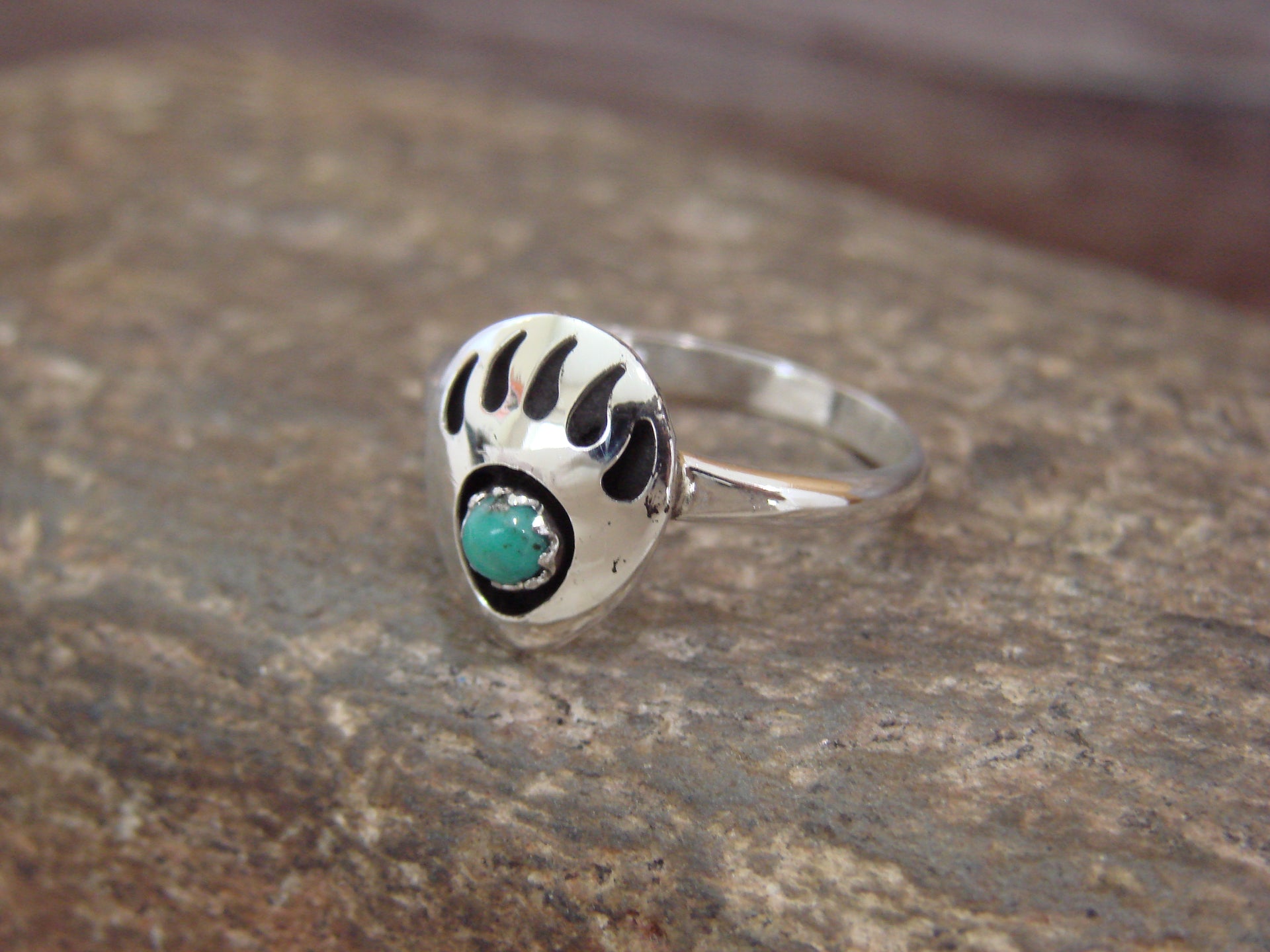 Native American Navajo Indian Turquoise Bear Paw Ring from Western New Mexico. This ring features a Turquoise stone set into a beautiful shadow box sterling silver bear paw setting. This is a beautiful ring! Navajo Indian hand made by Navajo Silversmith Leta Parker. Stamped Sterling on the back. Free gift box and shipping included!