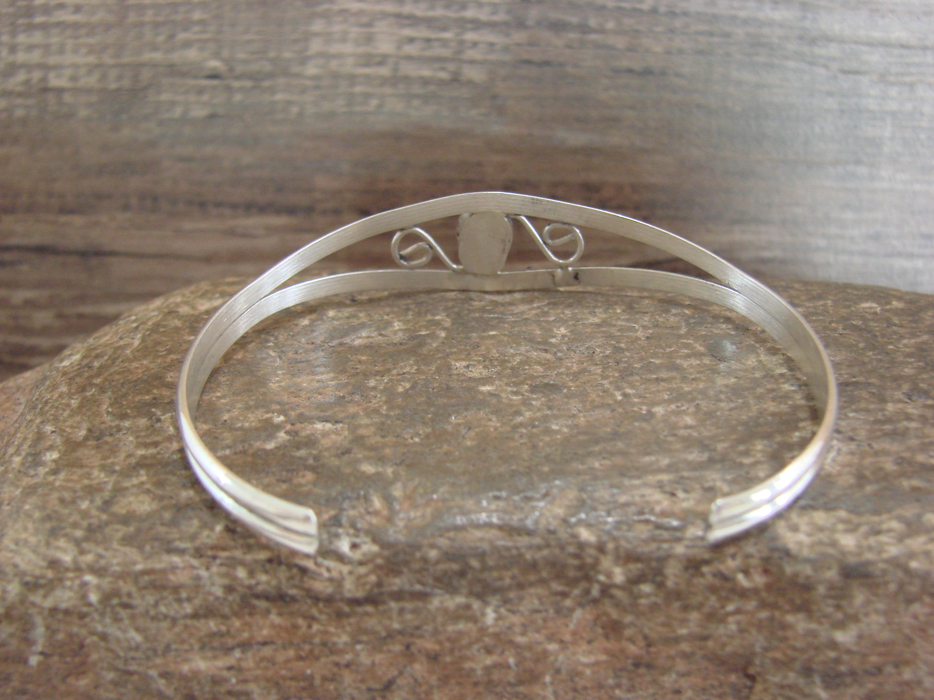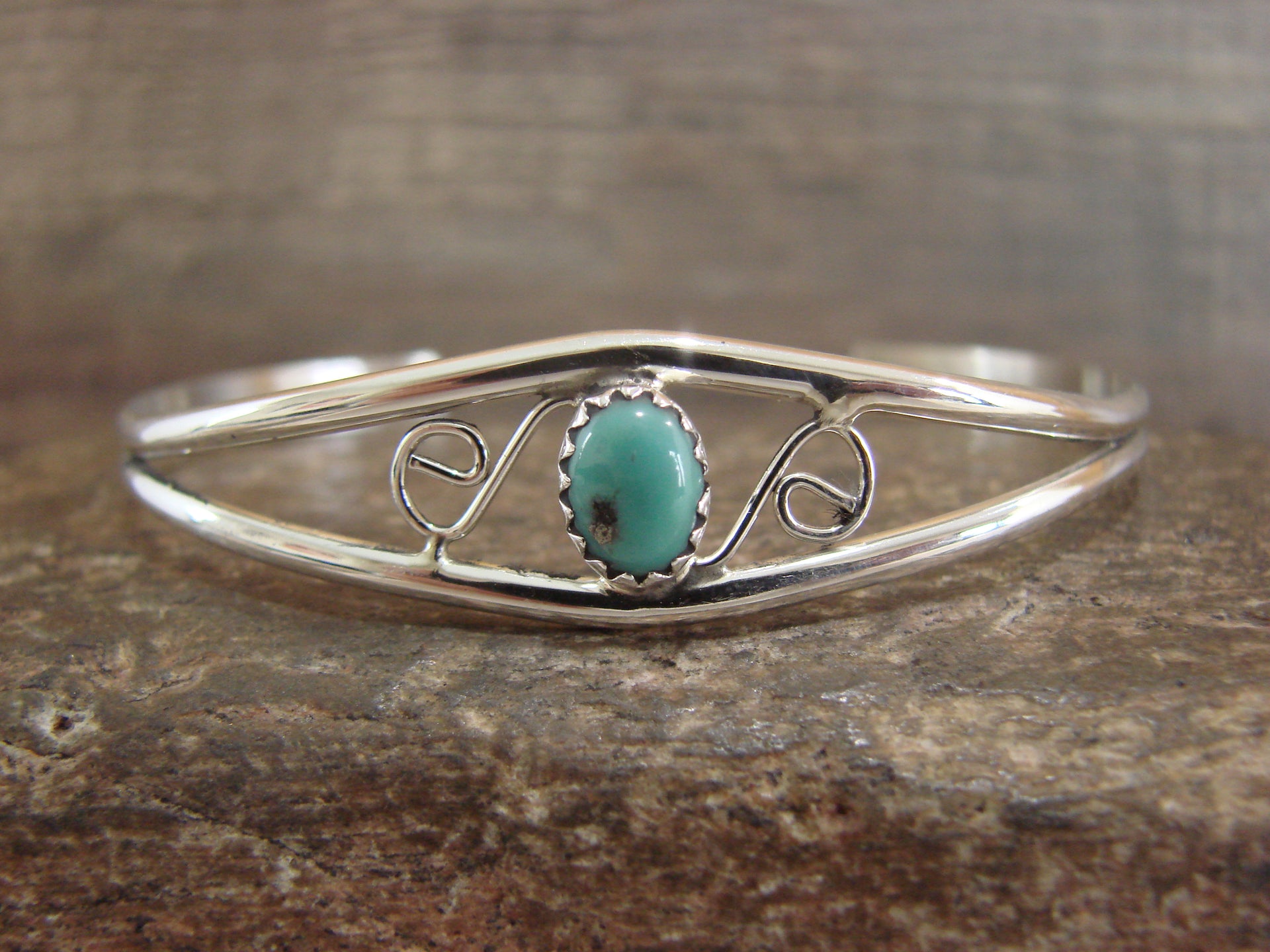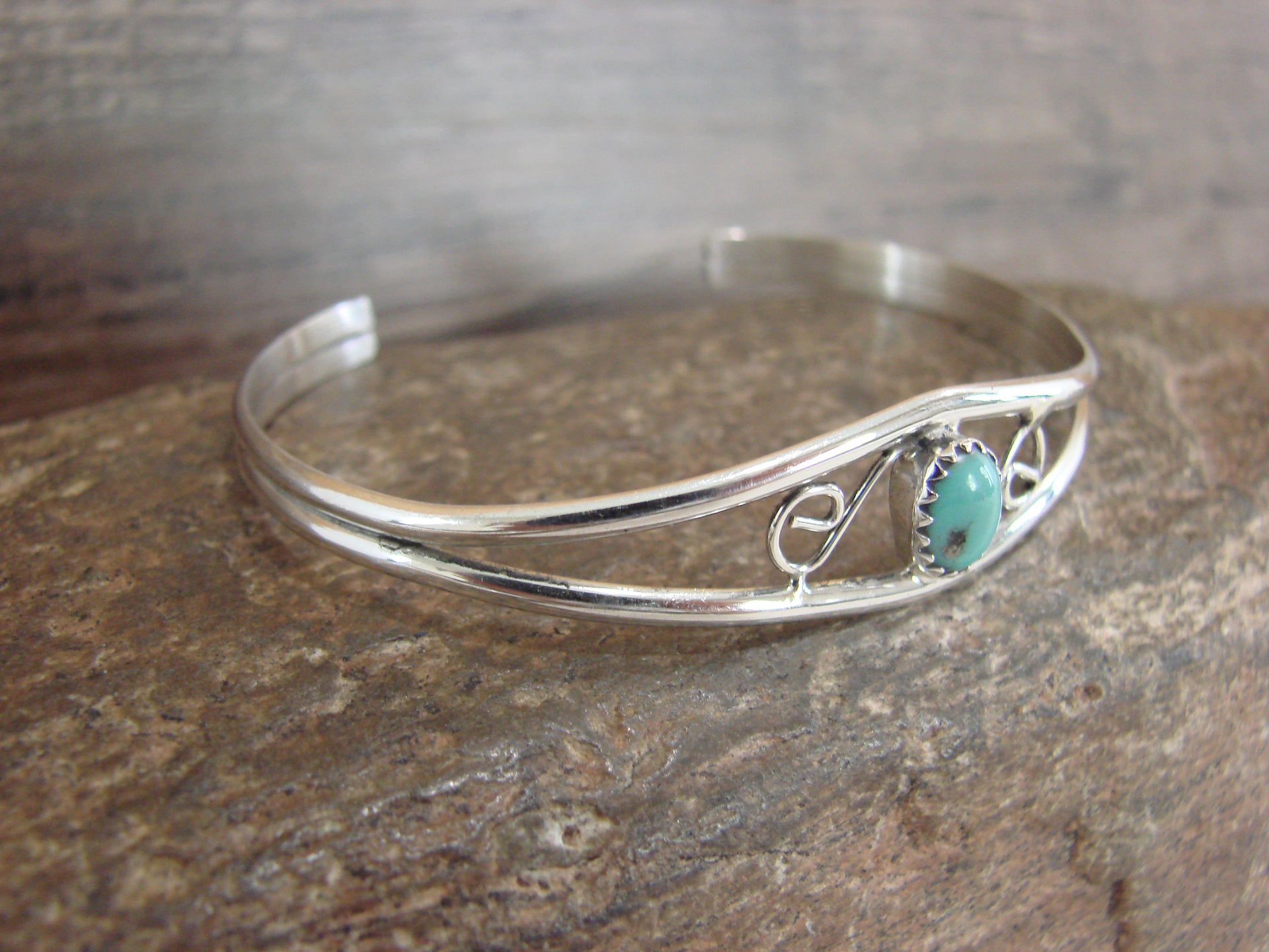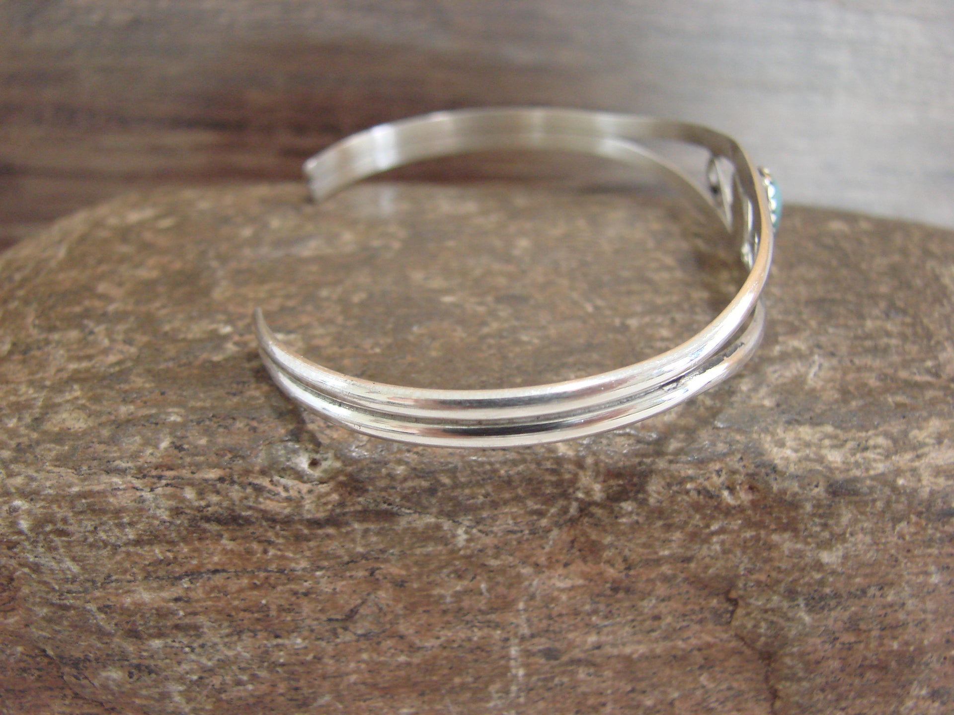Genuine Native American Navajo Indian Sterling Silver & Turquoise Bracelet from Western New Mexico. This dainty bracelet features a Turquoise stone polished and surrounded by beautiful sterling silver work. This bracelet is Gorgeous! Made by Navajo Silversmith Judy Lincoln. Unsigned. Free shipping and gift box included!