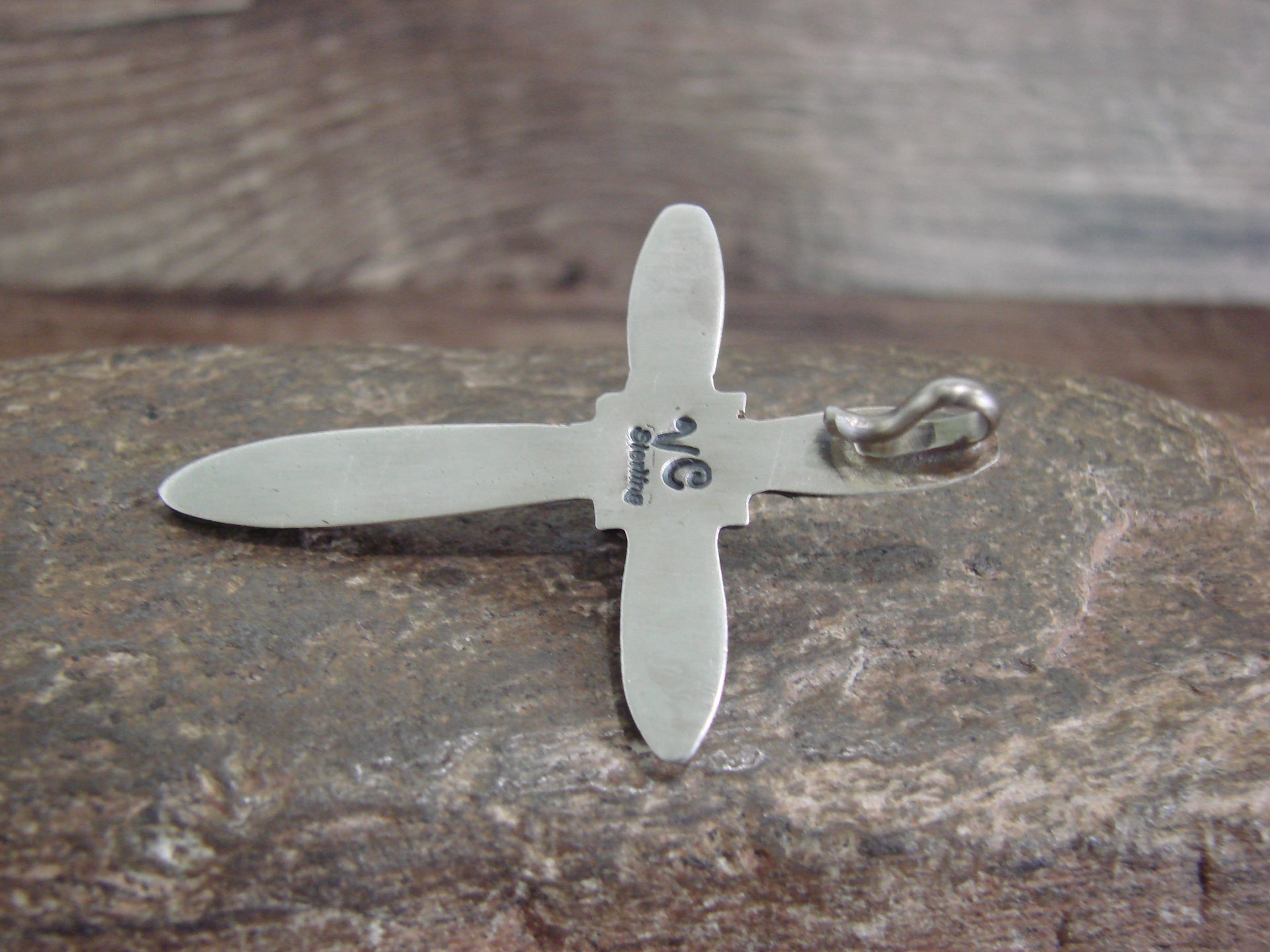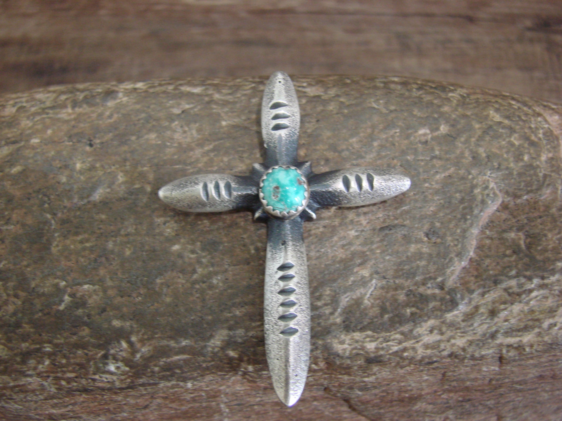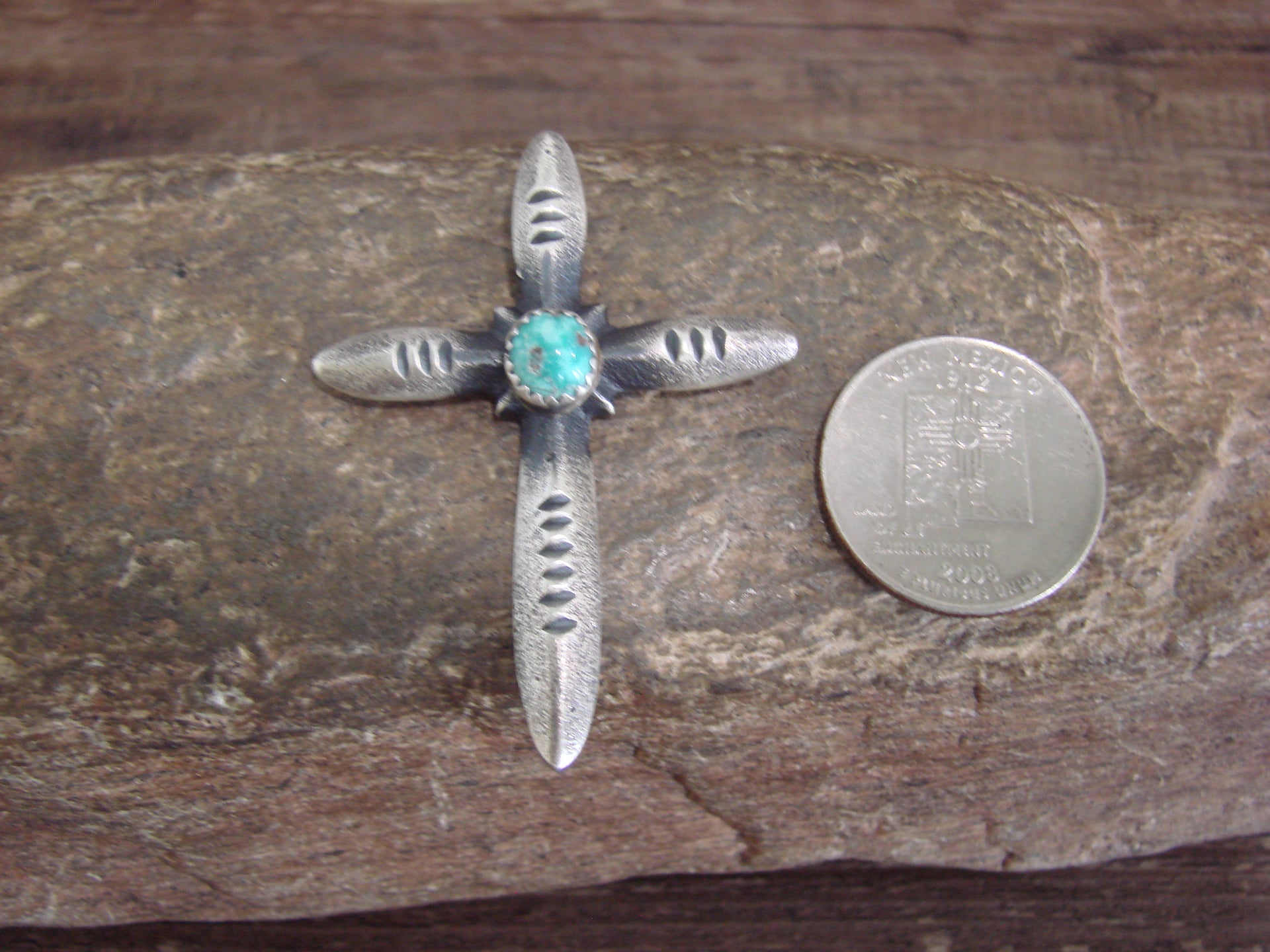 Native American Sterling Silver & Turquoise Cross Pendant Signed Cayatineto
