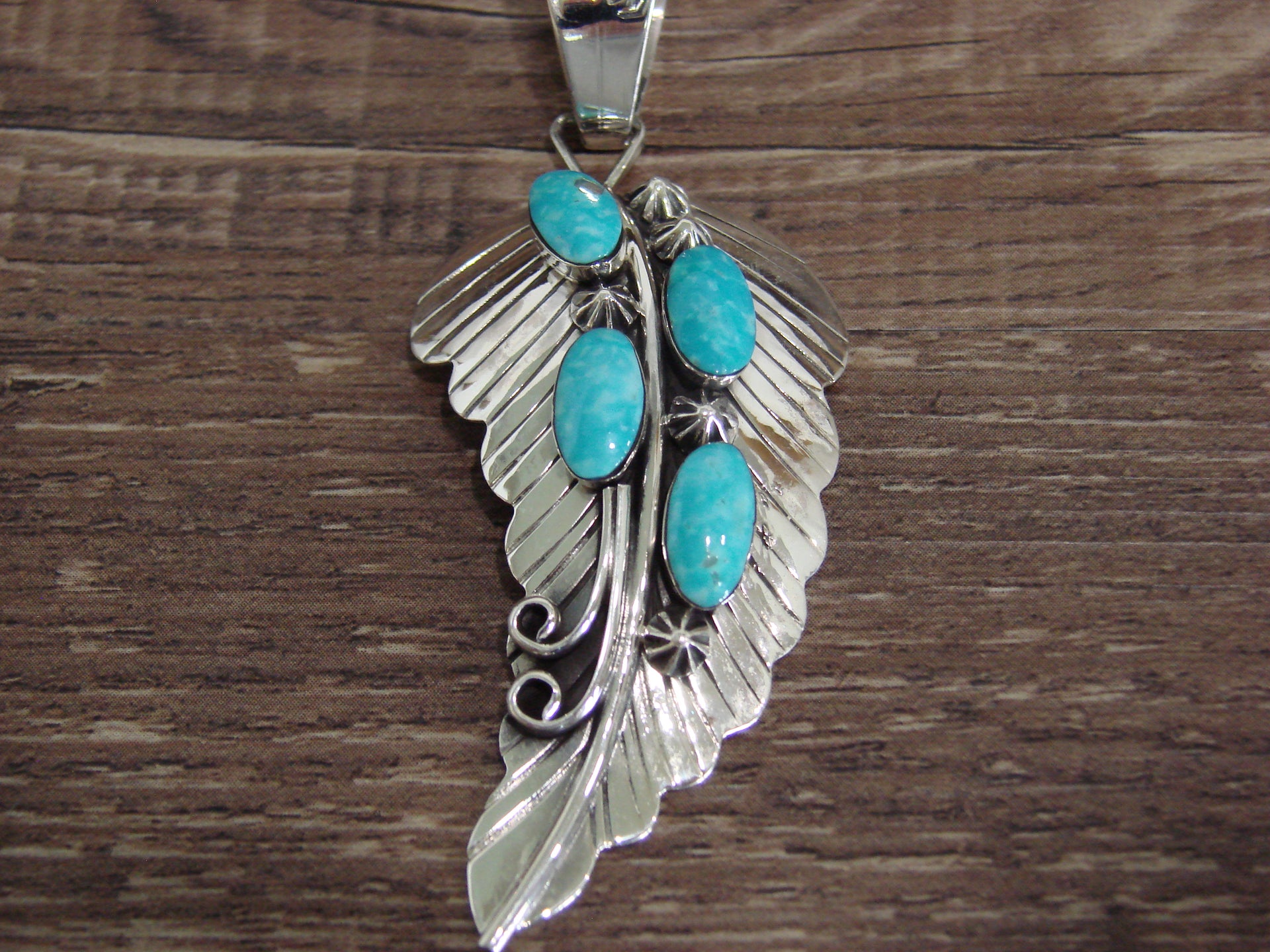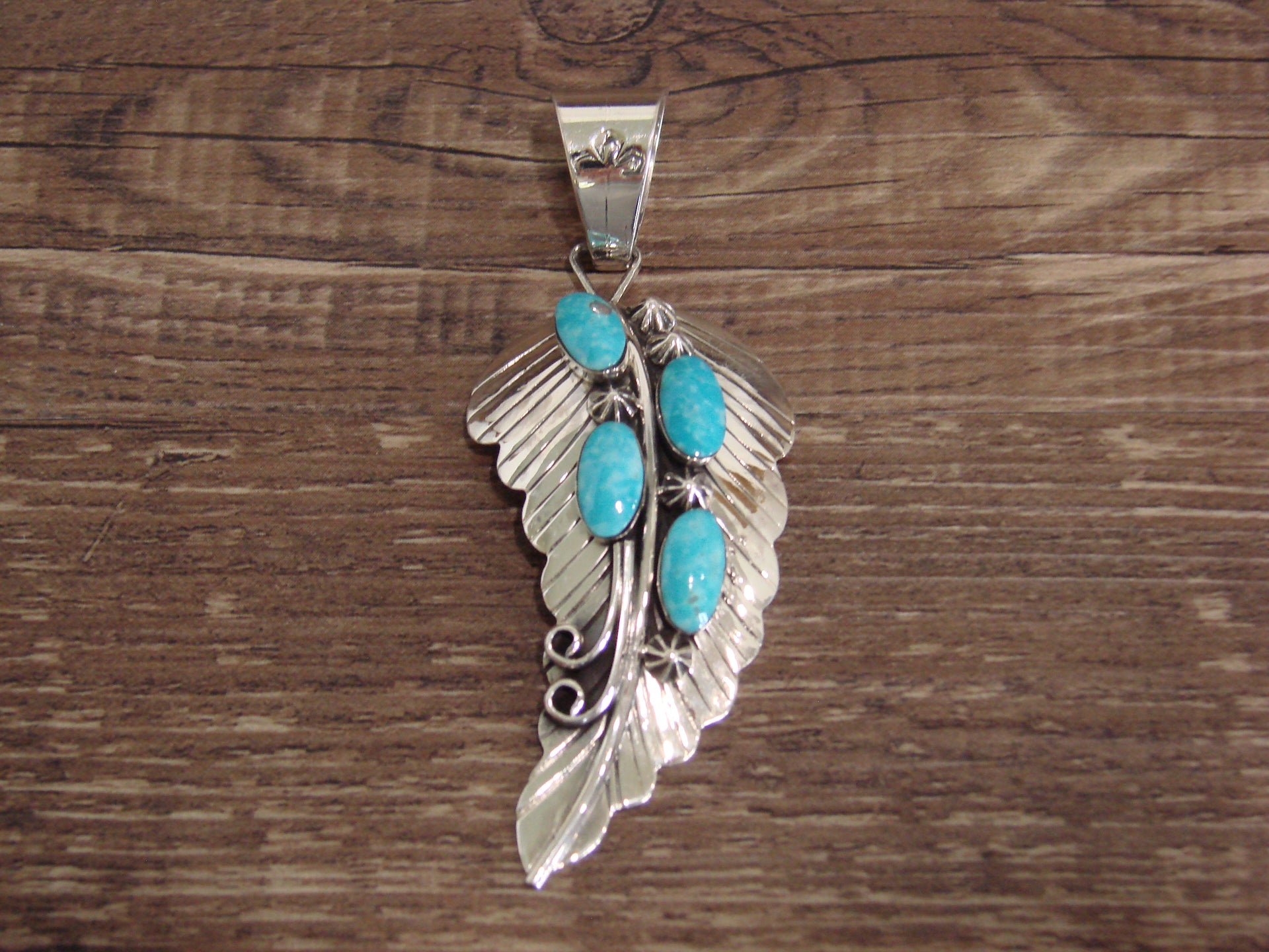 Native American Sterling Silver & Turquoise Feather Pendant by Yazzie