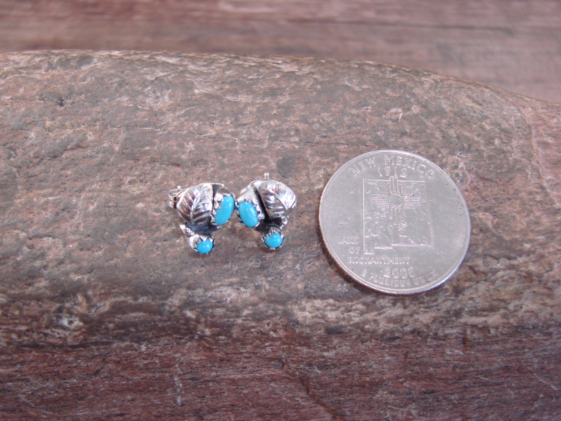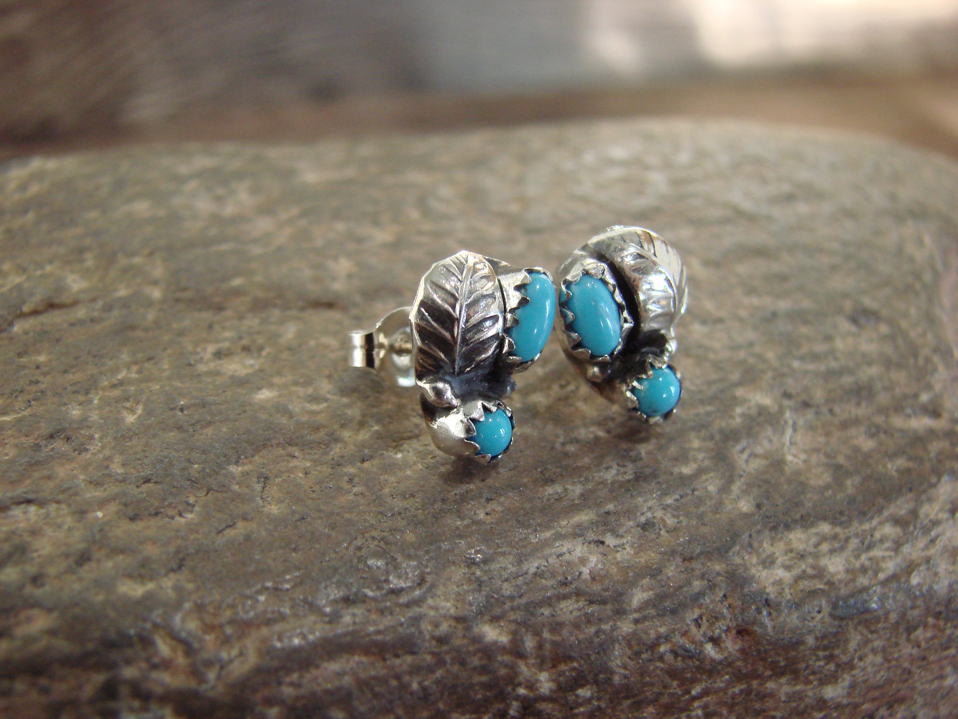 Native American Sterling Silver & Turquoise Feather Post Earrings by Joe