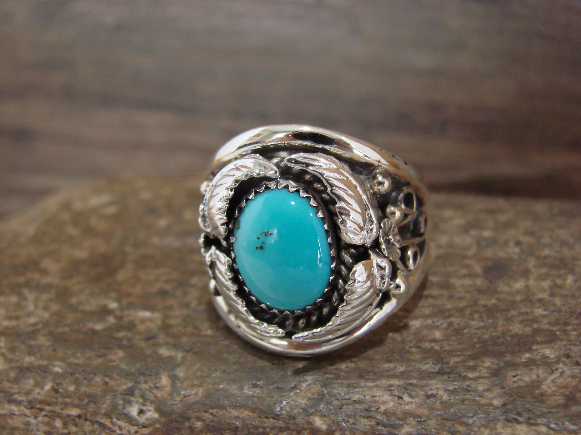 Native American Sterling Silver & Turquoise Feather Ring by Cayaditto- Size 11.5