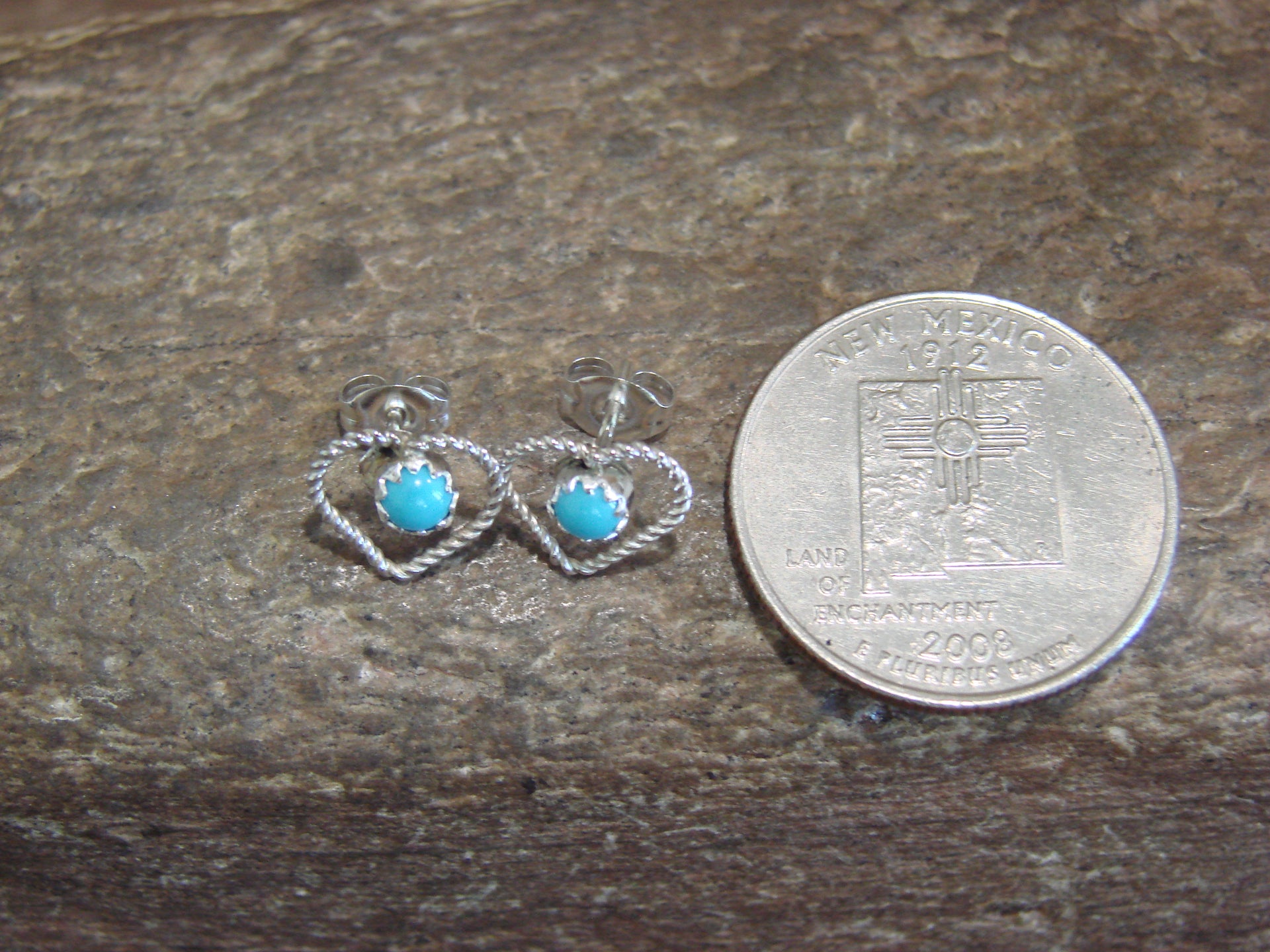 Native American Zuni Indian Sterling Silver & Turquoise Heart Earrings from Western New Mexico. These earrings feature a beautiful Turquoise stone. The stone is polished and set into a crown sterling silver bezel. This is a smaller pair of earrings, please double check the size before purchasing. Zuni Indian Handmade by Hazel Pablito. Unsigned. Free gift box included!