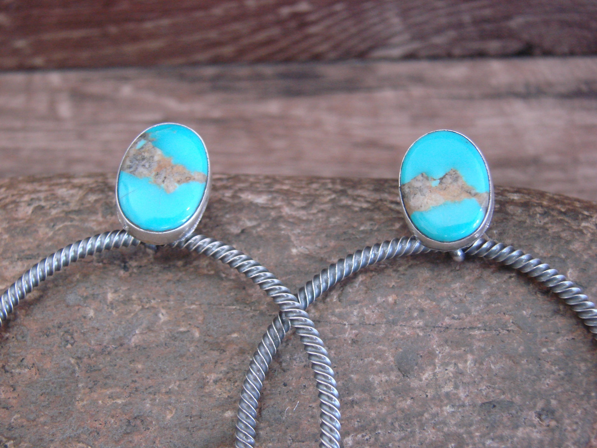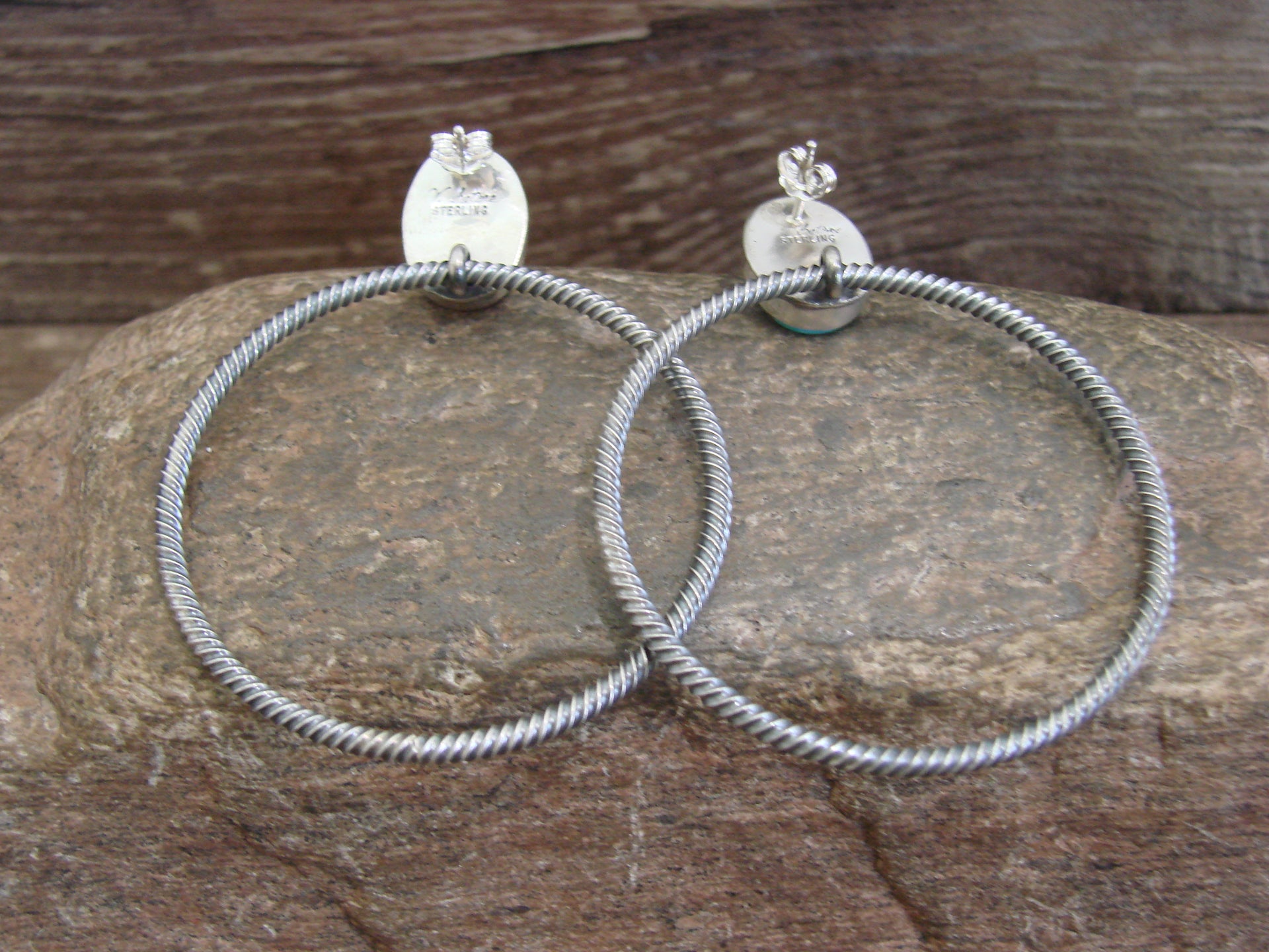 Native American Sterling Silver & Turquoise Hoop Post Earrings - Betone