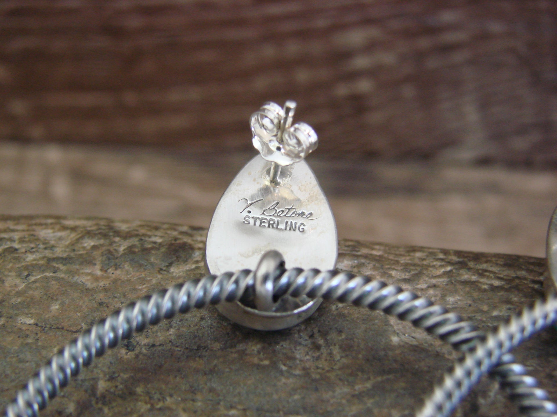 Genuine Native American Navajo Indian Sterling Silver & Turquoise Hoop Post Earrings from Western New Mexico. These are absolutely gorgeous earrings featuring Genuine Turquoise Stones set into smooth sterling silver bezel setting posts. Dangling below are beautiful twisted hoops in sterling silver. Navajo Indian handmade by Verley Betone. Signed "V. Betone" and stamped "Sterling" on the back. Free shipping and gift box included!