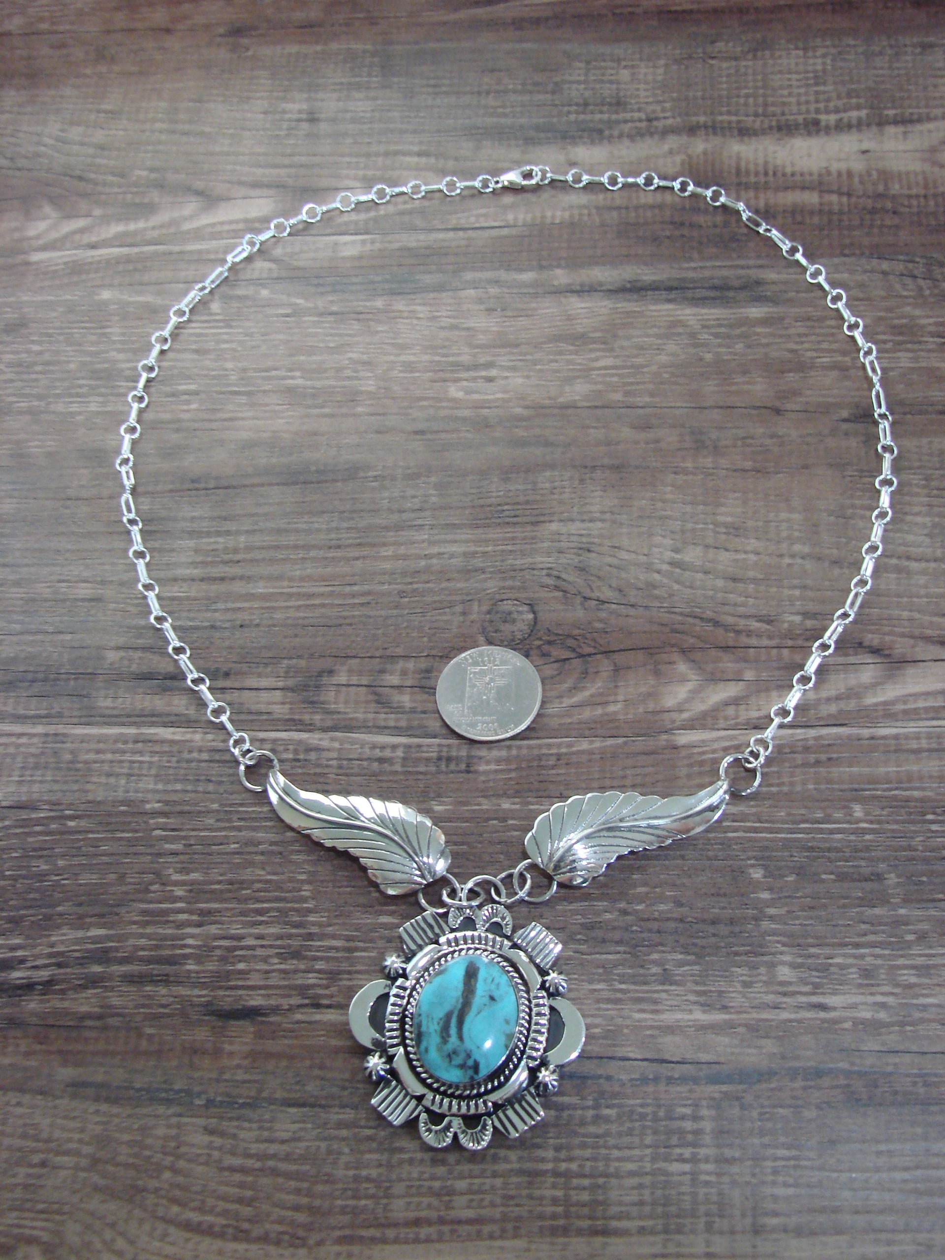 Native American 25" Sterling Silver & Turquoise Link Necklace by Belin