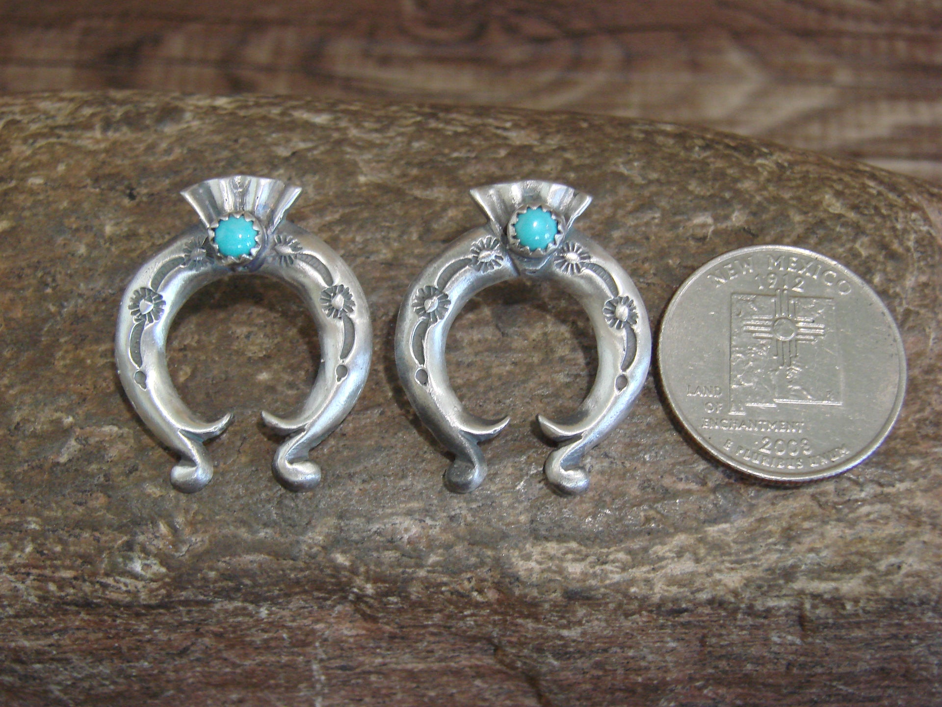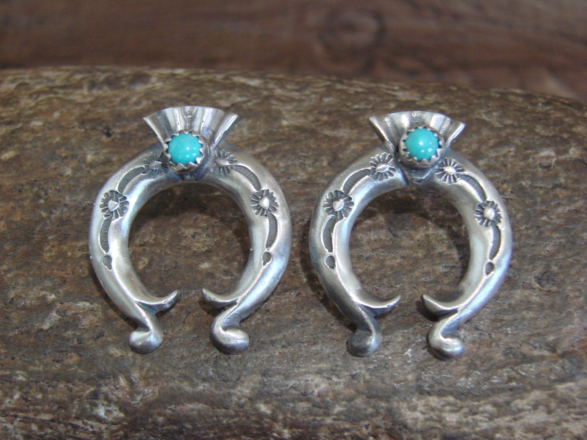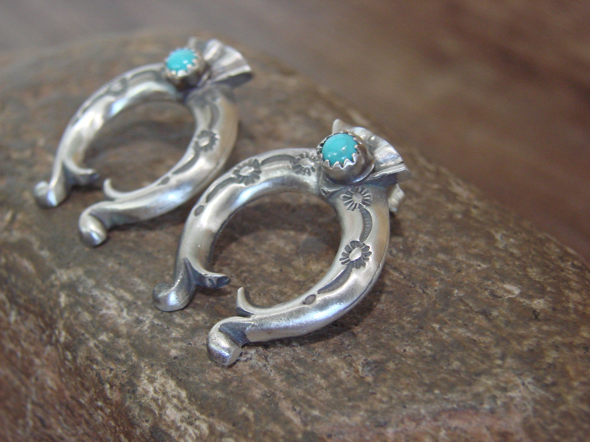 Native American Sterling Silver Turquoise Naja Post Earrings by Gordon
