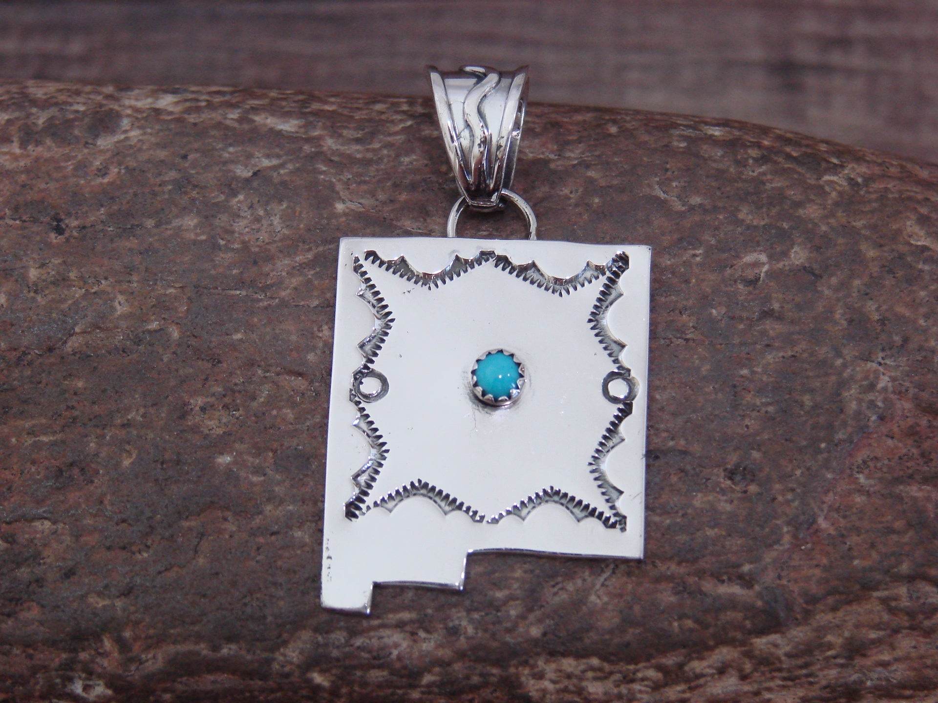 Native American Sterling Silver & Turquoise New Mexico Pendant by Belin