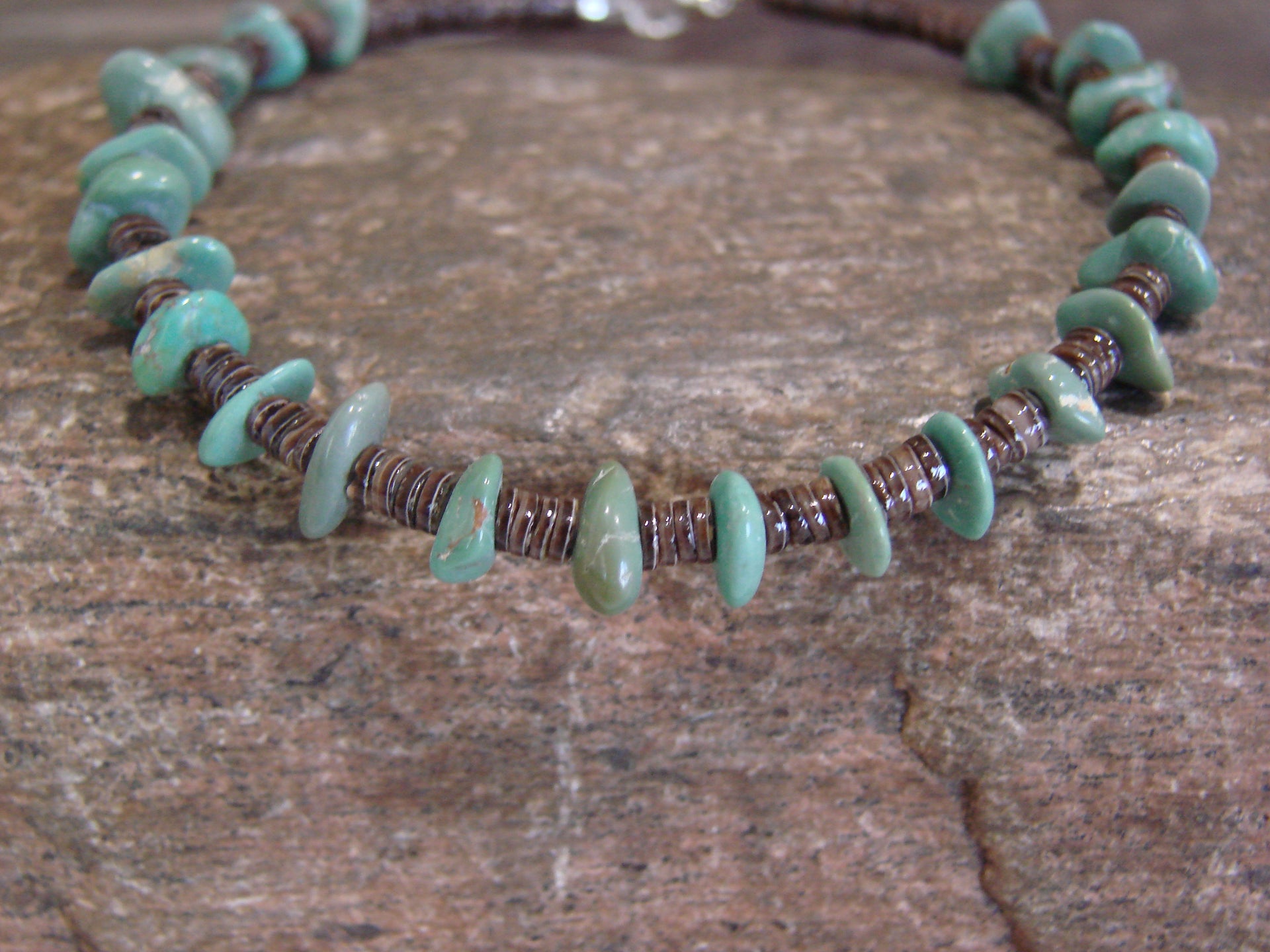 Genuine Native American Santo Domingo Indian Sterling Silver Turquoise Bracelet from Western New Mexico. This necklace features Stunning, Genuine Turquoise Nugget Stones. Fine Navajo Silversmith workmanship quality makes this Bracelet a beautiful hand made masterpiece! fits wrist 6" - 7". Handmade by Santo Domingo Silversmith Coreta Coriz. Unsigned. Free gift box and shipping included!