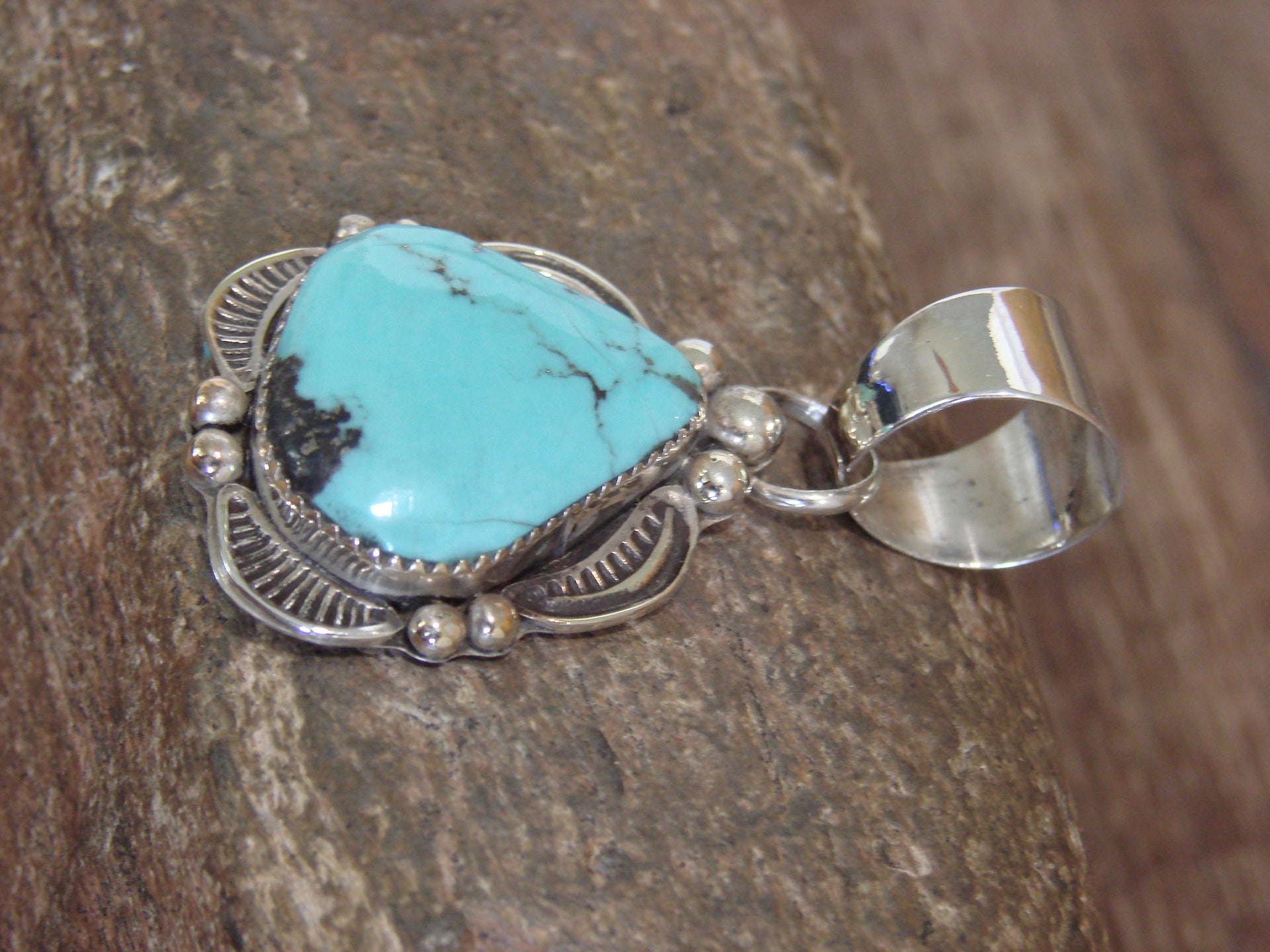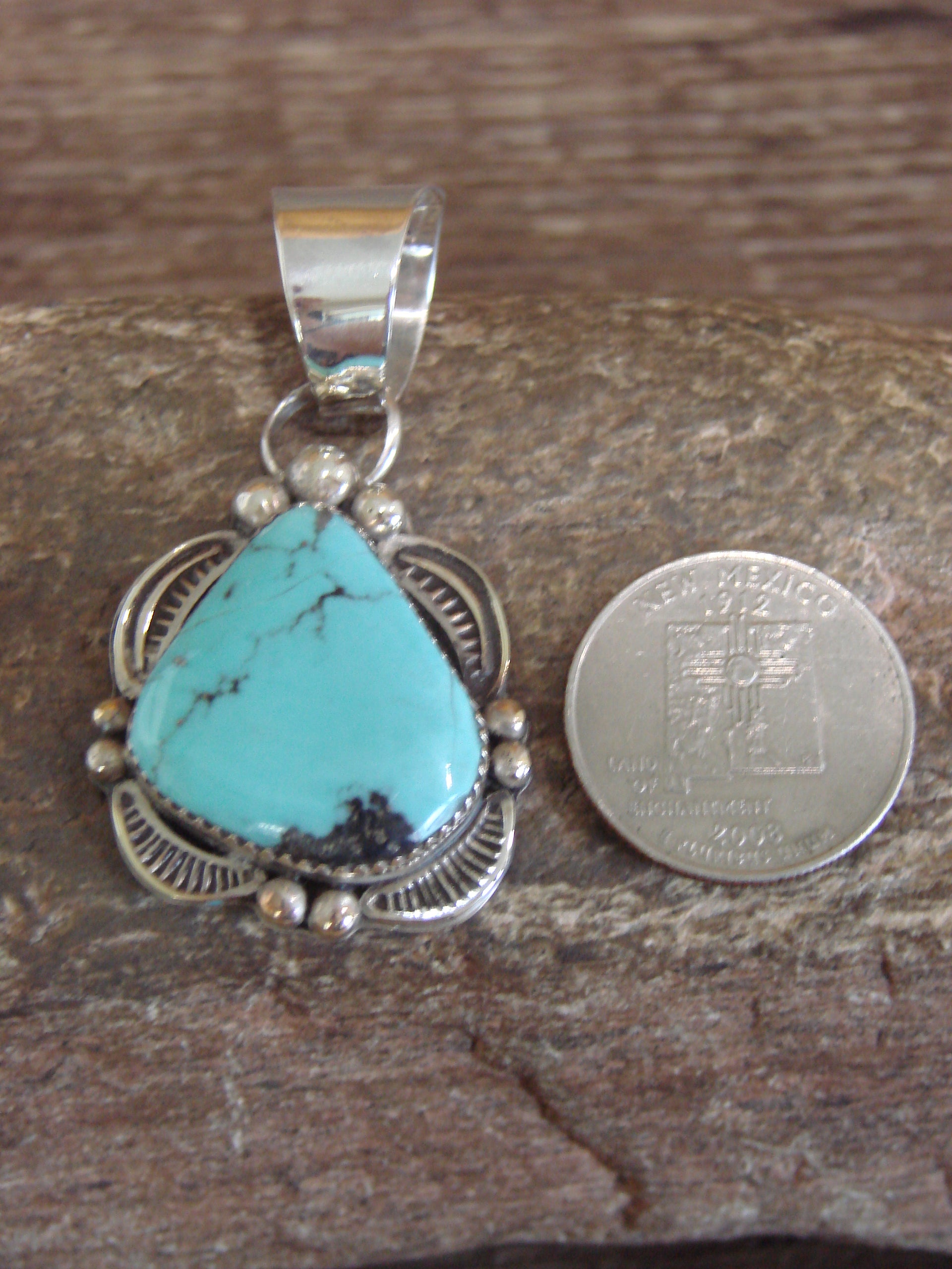 Native American Sterling Silver & Turquoise Pendant - Cleveland